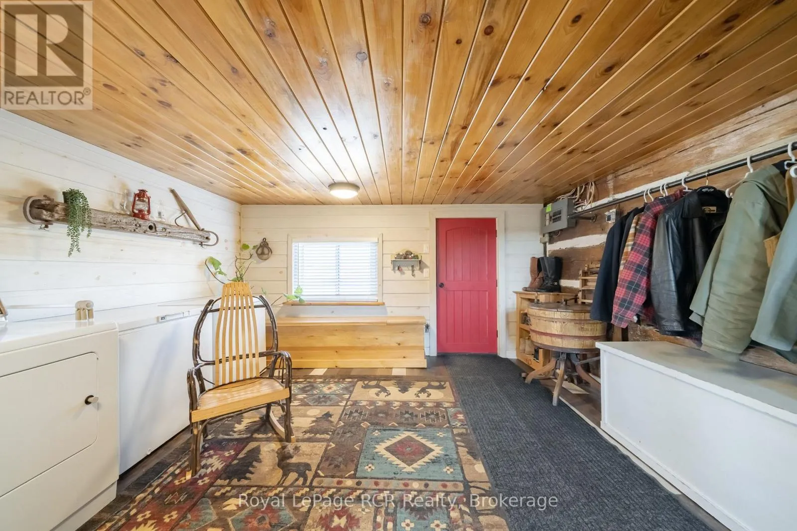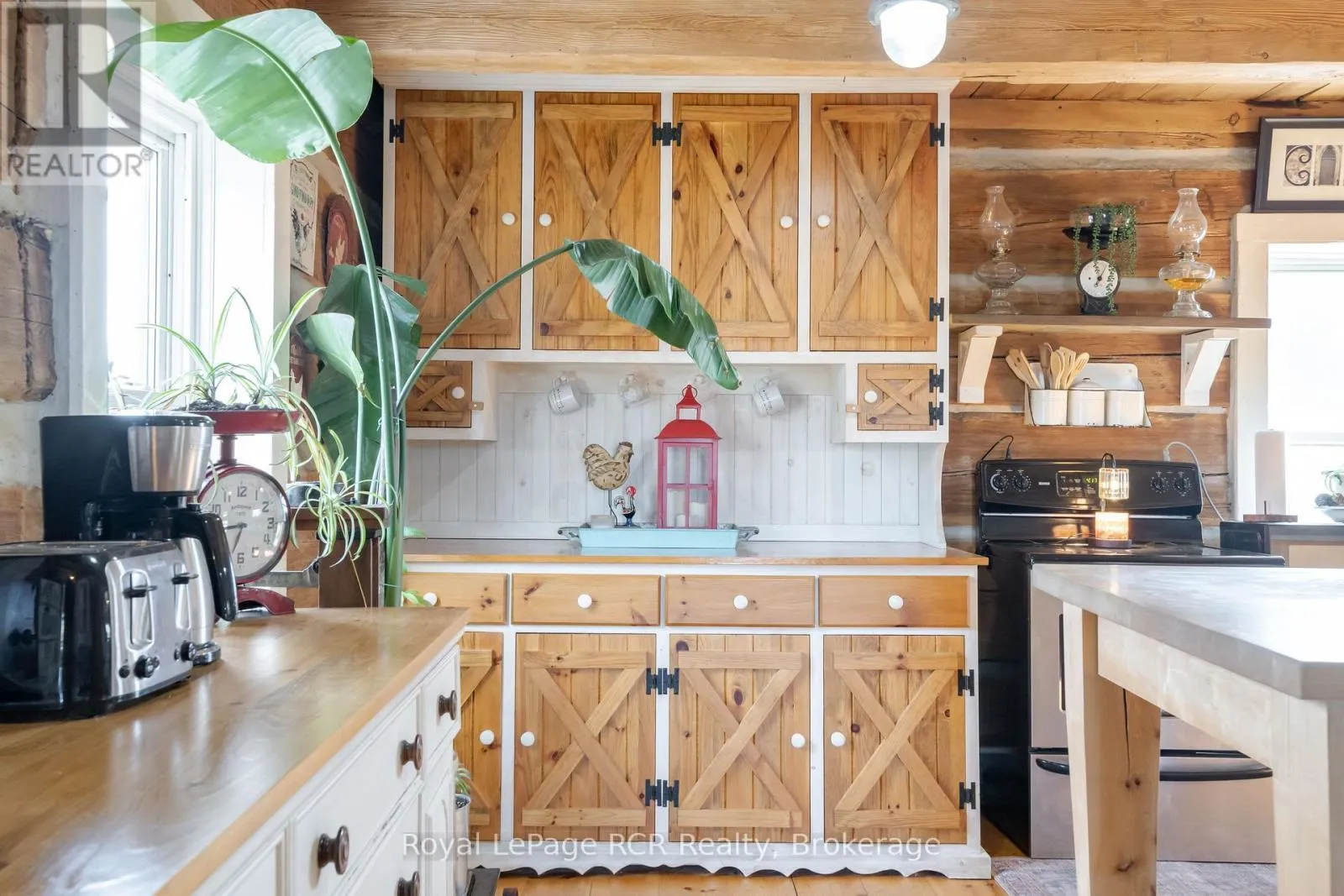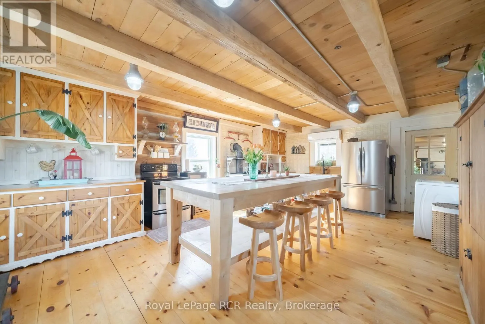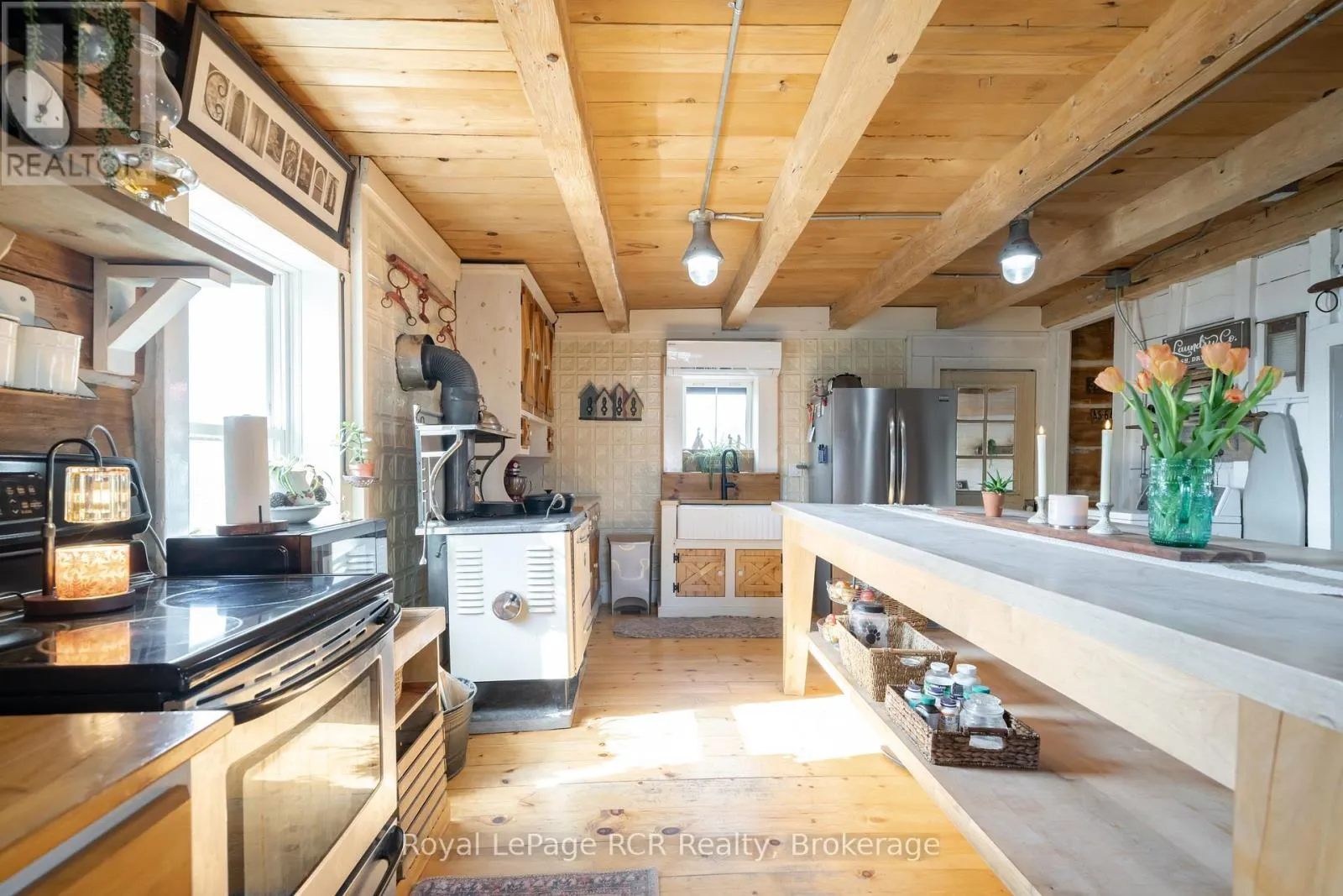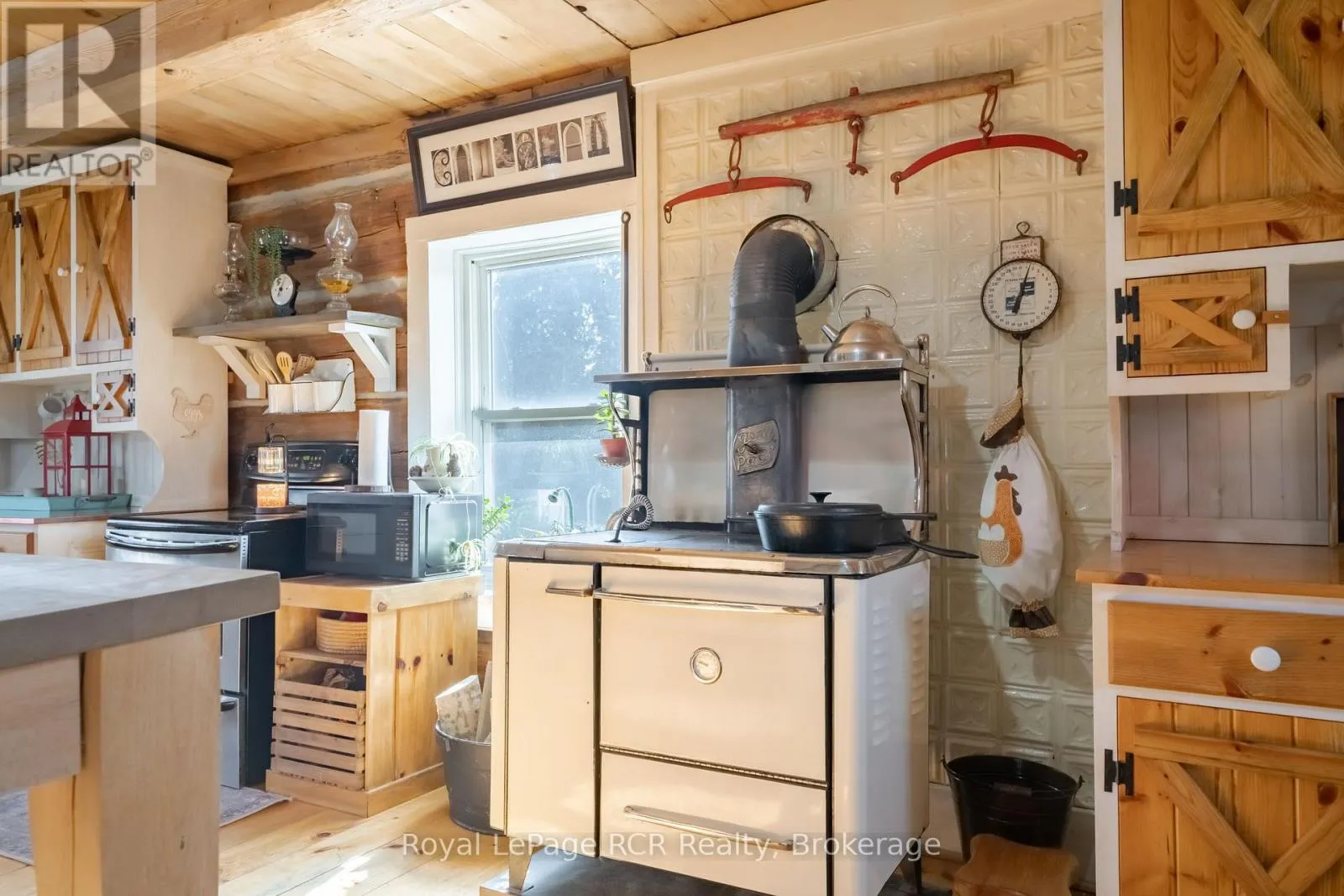 Cross Streets: Concession Rd 8 & Side Rd 8. ** Directions: North of Mooresburg on Concession 8, property on left/west side of road. Nestled in a valley, overlooking nearly 3 acres of serene rolling hills, sits a centrepiece of Canadian history with a beautifully preserved 1880 settlement log home. Embrace a meaningful lifestyle on this peaceful and picturesque homestead-farm retreat which has been thoughtfully designed and transformed to include two fenced paddocks - each with run-in horse shelter, chicken coops, sheds, insulated & heated workshop + barn - both include power, outhouse and plenty of space to add your perfect garden & orchard! The land is laced with various apple trees, rhubarb, raspberry & grape vines! Inside, timeless period charm reflects throughout with exposed hand-hewn hemlock coupled with extensive upgrades. Recent improvements include custom Mennonite kitchen cabinetry, wood-stove with stone hearth/surround, bathroom vanity and a fully renovated cozy entrance room with steel roof. The sun-filled kitchen is the heart of the home, featuring a large custom-made island, antique pantry-style wood-burning oven/stove with tin backsplash and a coffee buffet conveniently stationed to easily step outside onto a south-facing patio overlooking the tranquil countryside. Main floor features an inviting entrance room, spacious kitchen, family room and bedroom which could easily convert to a main-floor laundry/bathroom combination as shower and plumbing are currently present. Upstairs features a charming 3-piece bath - including Victorian tub, two bedrooms and a reading room with potential for a 3rd second floor bedroom. Asking price includes a generous list of all appliances, nearly all antiques + furniture shown, Massey-Ferguson tractor-M65, electric fencing systems, bale feeders, troughs and remaining slab firewood. 2015 Kubota + 4x attachments negotiable. Log Home recently re-daubed + stone chimney. Located on a paved road north of Mooresburg + Saugeen River access for canoeing, swimming, tubing and more! Central between Hanover and Owen Sound. Please enquire for photos of inclusions. (id:27476)