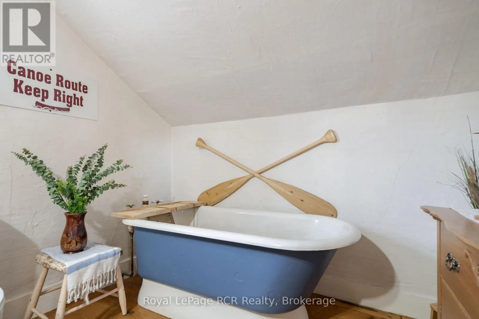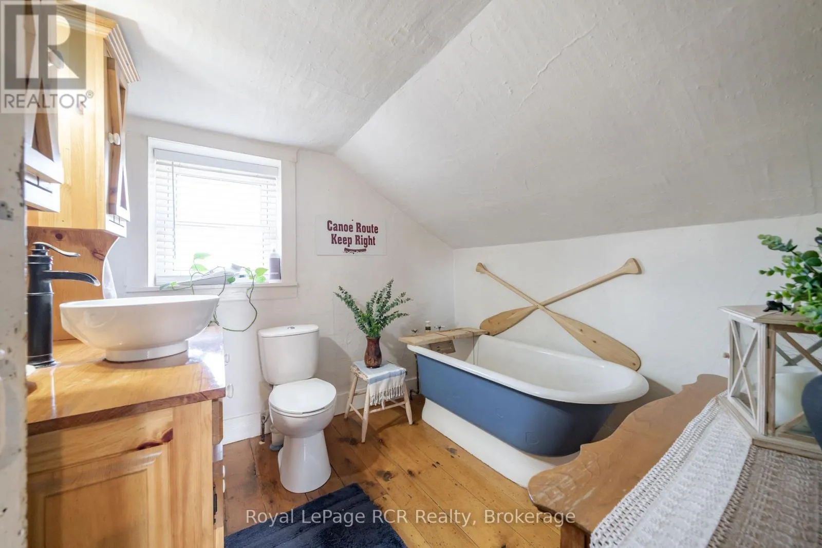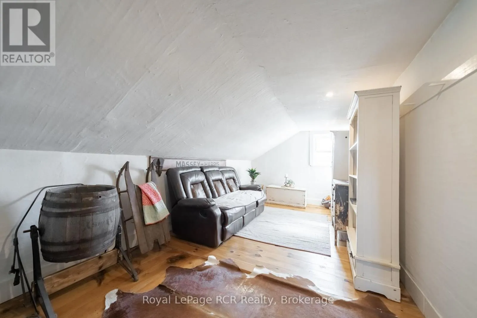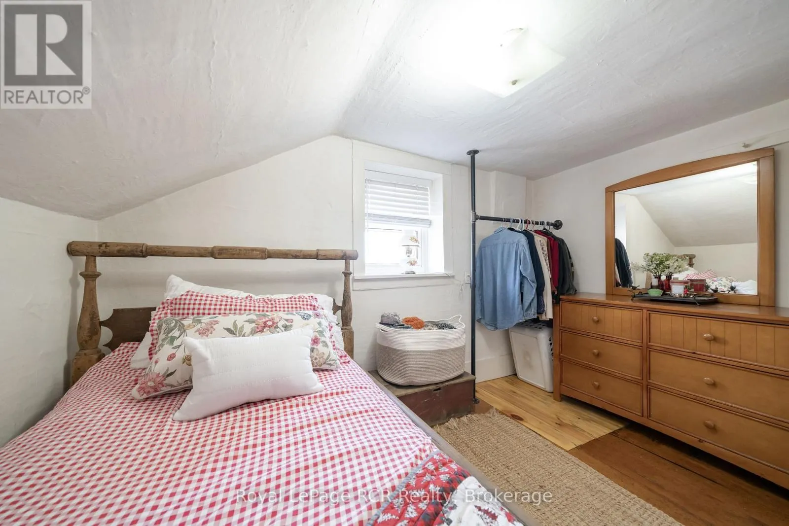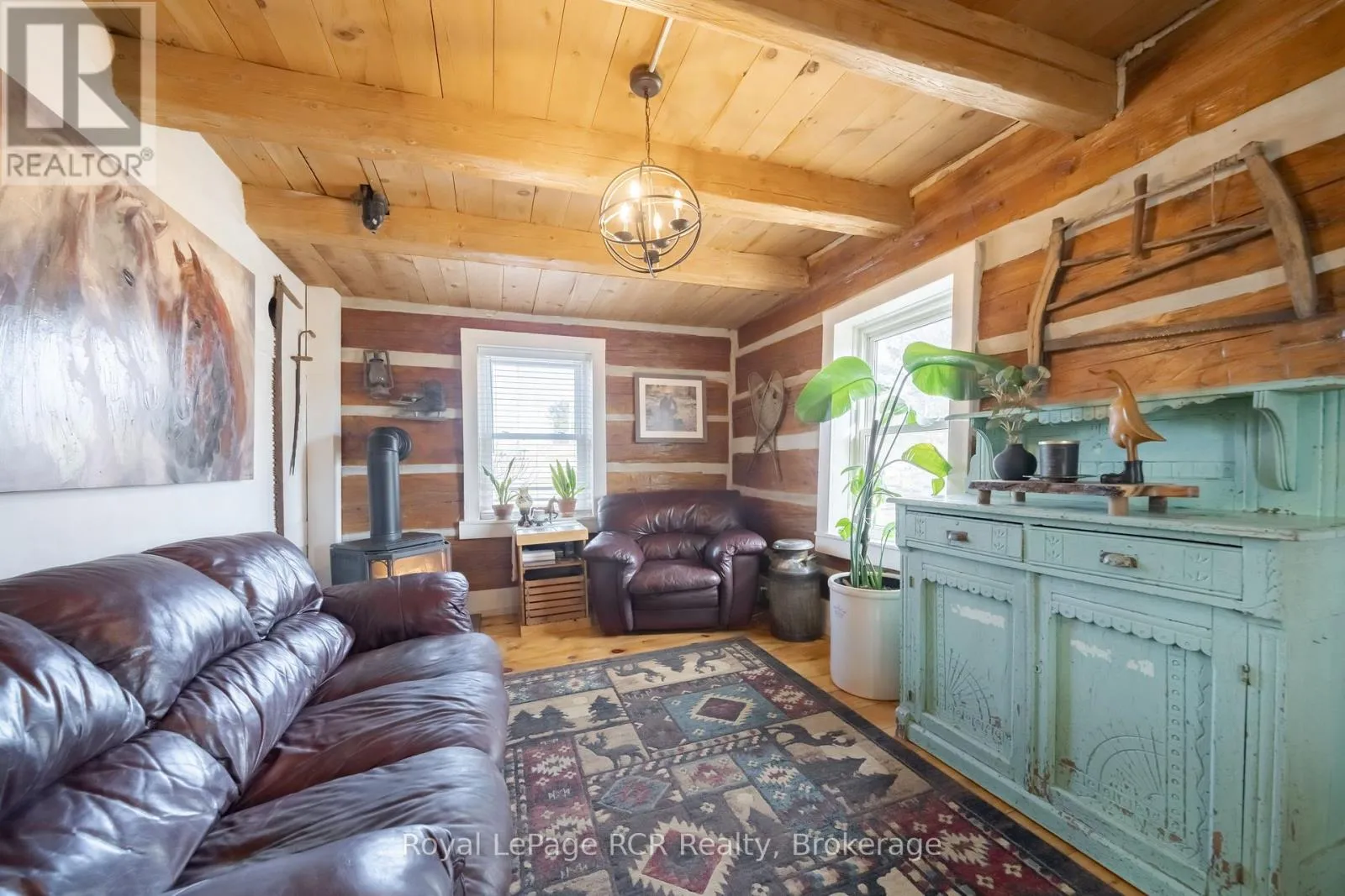 Cross Streets: Concession Rd 8 & Side Rd 8. ** Directions: North of Mooresburg on Concession 8, property on left/west side of road. Nestled in a valley, overlooking nearly 3 acres of serene rolling hills, sits a centrepiece of Canadian history with a beautifully preserved 1880 settlement log home. Embrace a meaningful lifestyle on this peaceful and picturesque homestead-farm retreat which has been thoughtfully designed and transformed to include two fenced paddocks - each with run-in horse shelter, chicken coops, sheds, insulated & heated workshop + barn - both include power, outhouse and plenty of space to add your perfect garden & orchard! The land is laced with various apple trees, rhubarb, raspberry & grape vines! Inside, timeless period charm reflects throughout with exposed hand-hewn hemlock coupled with extensive upgrades. Recent improvements include custom Mennonite kitchen cabinetry, wood-stove with stone hearth/surround, bathroom vanity and a fully renovated cozy entrance room with steel roof. The sun-filled kitchen is the heart of the home, featuring a large custom-made island, antique pantry-style wood-burning oven/stove with tin backsplash and a coffee buffet conveniently stationed to easily step outside onto a south-facing patio overlooking the tranquil countryside. Main floor features an inviting entrance room, spacious kitchen, family room and bedroom which could easily convert to a main-floor laundry/bathroom combination as shower and plumbing are currently present. Upstairs features a charming 3-piece bath - including Victorian tub, two bedrooms and a reading room with potential for a 3rd second floor bedroom. Asking price includes a generous list of all appliances, nearly all antiques + furniture shown, Massey-Ferguson tractor-M65, electric fencing systems, bale feeders, troughs and remaining slab firewood. 2015 Kubota + 4x attachments negotiable. Log Home recently re-daubed + stone chimney. Located on a paved road north of Mooresburg + Saugeen River access for canoeing, swimming, tubing and more! Central between Hanover and Owen Sound. Please enquire for photos of inclusions. (id:27476)
