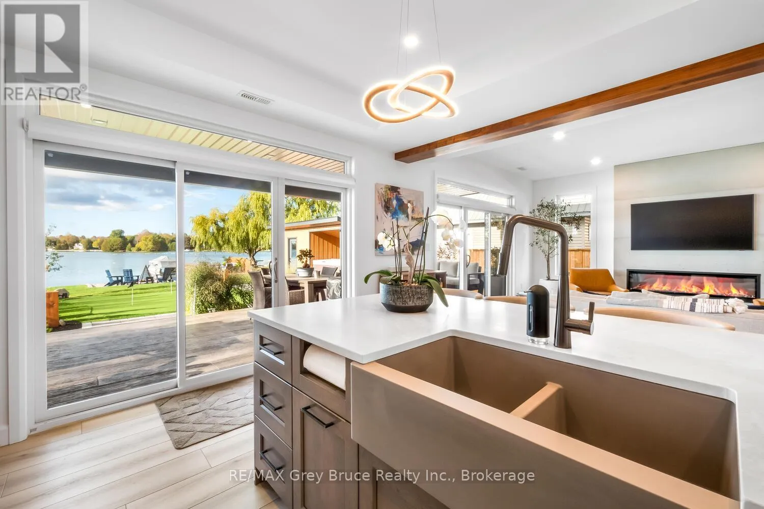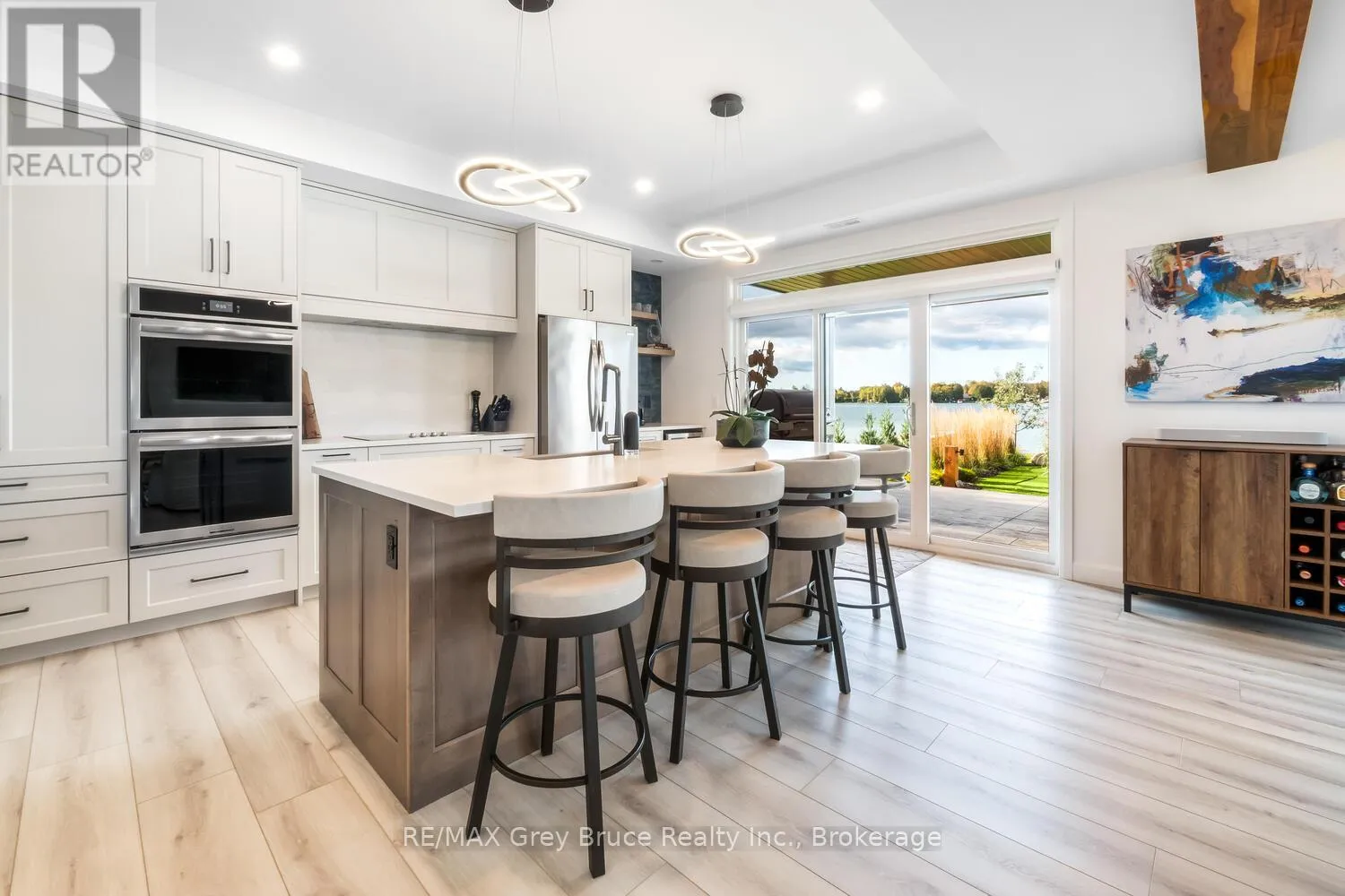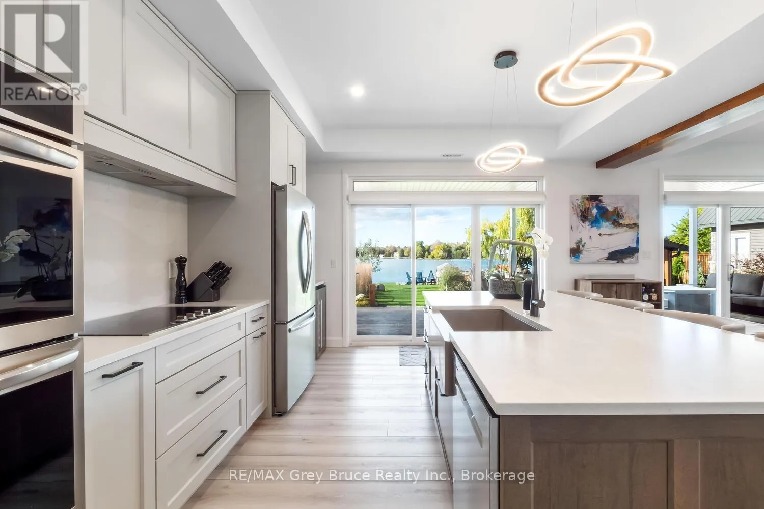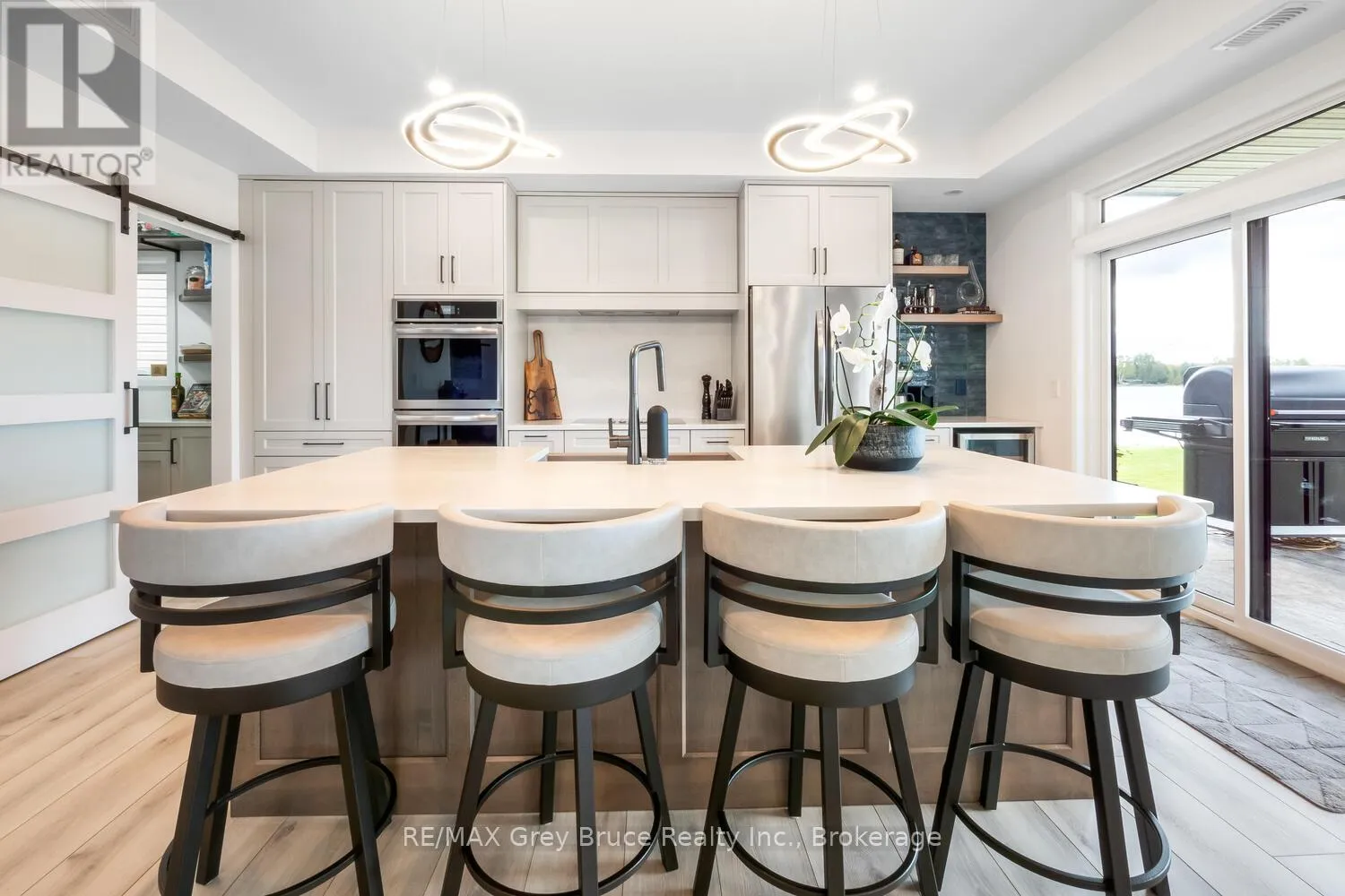Cross Streets: concession 2 chatsworth. ** Directions: highway 10 heading north take con 2 south, turn on country lane drive on the left. Lakefront home on Williams Lake. This custom Built Dream Home By John Clarke, combines luxury, functionality and stunning design. The property spans 50 feet of shore line and 228 (irregular)depth, providing ample outdoor space that seamlessly integrates with the beautiful lakeside environment. South facing patios (30 X12) enhance the homes natural light and offer breathtaking views of the lake, making it an ideal retreat for relaxation and entertaining.The Exterior of the home is crafted with LUX steel siding, that is not only aesthetically pleasing but also maintenance free, ensuring long lasting durability. One of the standout features of the home is its energy efficiency. Equipped with Strasburger windows, a state of the Art Septic system, drilled well with Submersible pumps providing 10 gallons a minute. The home is designed for modern living with an Energy efficient heat pump, Central A/C system, LED lighting, a 200 amp electrical service. The outdoor living area has an impressive ,stamped concrete patios, front and lakeside, upper deck is covered with Aluminum decking, professionally landscaped yard, thats not just beautiful, it offers a 3 hole putting green, fire-pit, paving stones, programmable lighting, lakeside sitting area and dock. The home is built with every element of luxury, the Chef's kitchen is a true highlight, featuring top of the line Frigidaire appliances, including Refrigerator, induction cooktop , double wall convection oven and dishwasher. Quartz counter tops throughout. Floating Vanities in all the bathrooms. The main level offers open concept living with Custom Built Kitchen, walk in Pantry, Luxury Vinyl Planking floor. The Upper level offers panoramic views from both the Living area, with its vaulted ceiling and Primary bedroom with 3 piece ensuite and W/I closet. 2 more bedrooms a 4 piece bath W/Laundry facilities. Large utility shed with covered space for Hot Tub-already wired to go. Electrical power at dock. No detail overlooked. (id:27476)