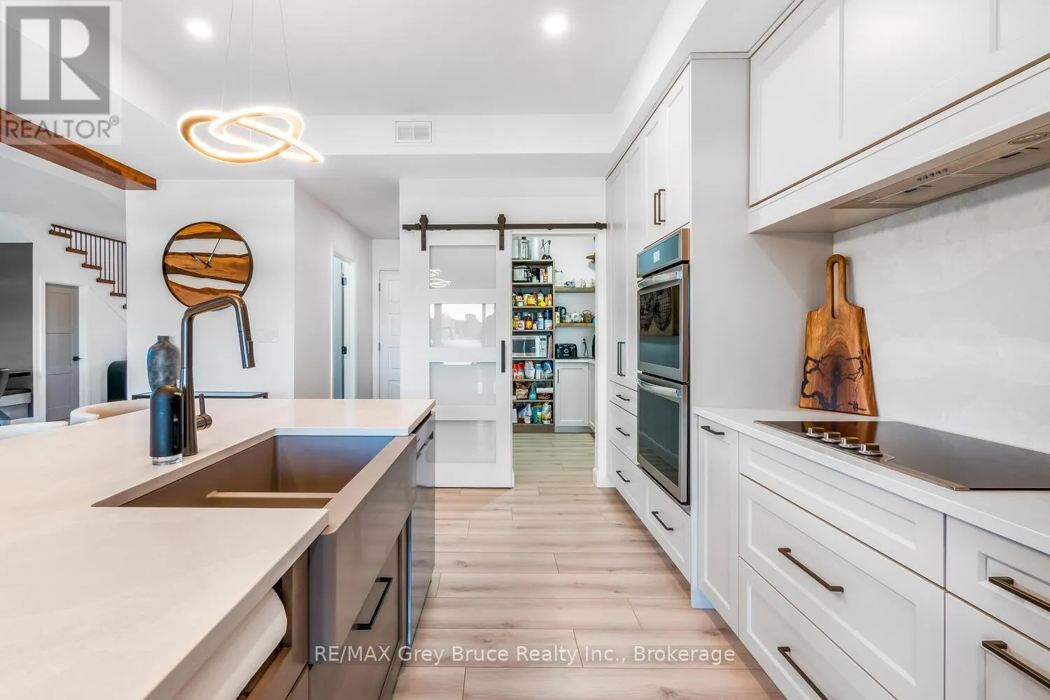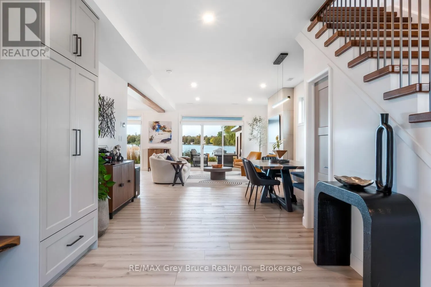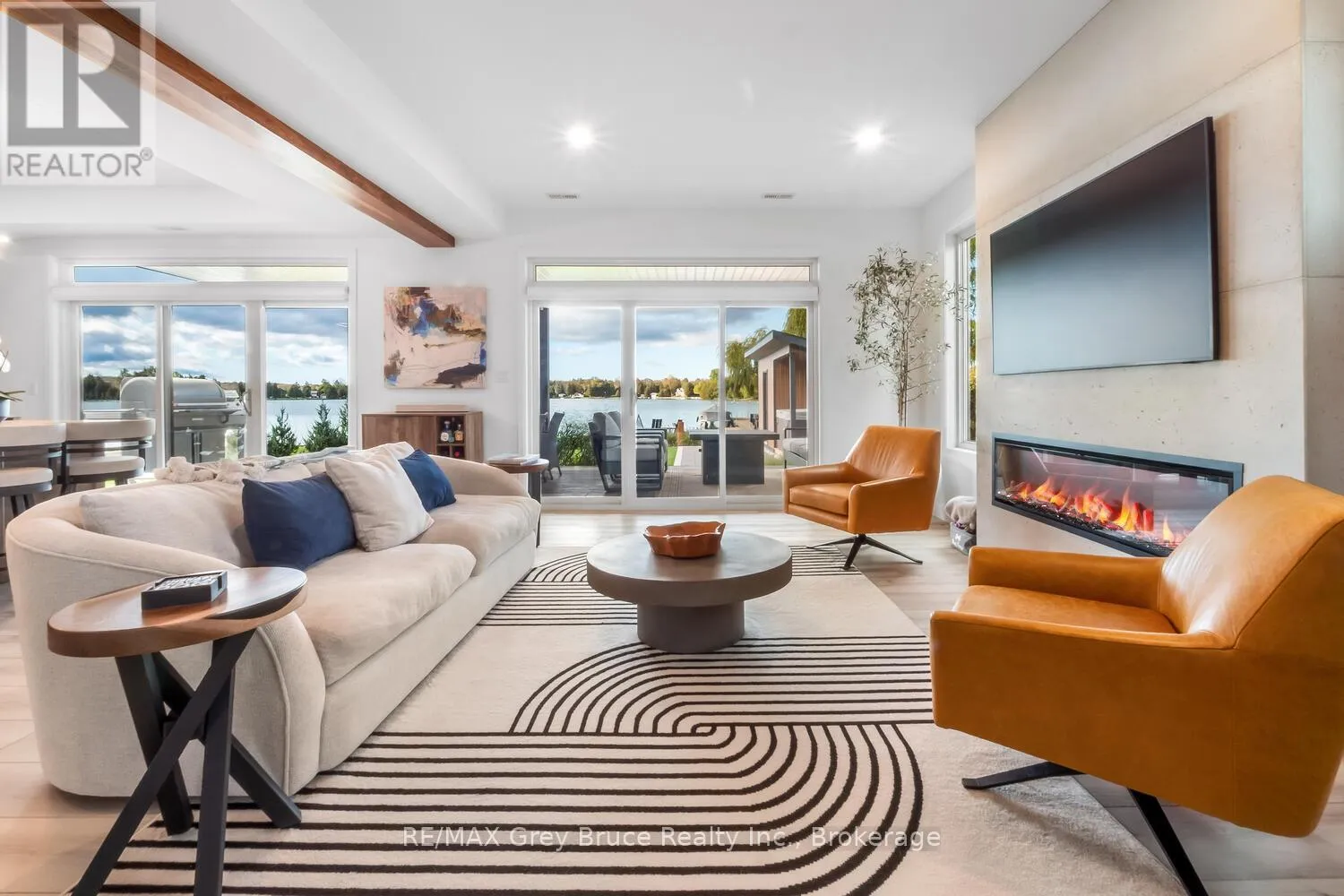 Cross Streets: concession 2 chatsworth. ** Directions: highway 10 heading north take con 2 south, turn on country lane drive on the left. Lakefront home on Williams Lake. This custom Built Dream Home By John Clarke, combines luxury, functionality and stunning design. The property spans 50 feet of shore line and 228 (irregular)depth, providing ample outdoor space that seamlessly integrates with the beautiful lakeside environment. South facing patios (30 X12) enhance the homes natural light and offer breathtaking views of the lake, making it an ideal retreat for relaxation and entertaining.The Exterior of the home is crafted with LUX steel siding, that is not only aesthetically pleasing but also maintenance free, ensuring long lasting durability. One of the standout features of the home is its energy efficiency. Equipped with Strasburger windows, a state of the Art Septic system, drilled well with Submersible pumps providing 10 gallons a minute. The home is designed for modern living with an Energy efficient heat pump, Central A/C system, LED lighting, a 200 amp electrical service. The outdoor living area has an impressive ,stamped concrete patios, front and lakeside, upper deck is covered with Aluminum decking, professionally landscaped yard, thats not just beautiful, it offers a 3 hole putting green, fire-pit, paving stones, programmable lighting, lakeside sitting area and dock. The home is built with every element of luxury, the Chef's kitchen is a true highlight, featuring top of the line Frigidaire appliances, including Refrigerator, induction cooktop , double wall convection oven and dishwasher. Quartz counter tops throughout. Floating Vanities in all the bathrooms. The main level offers open concept living with Custom Built Kitchen, walk in Pantry, Luxury Vinyl Planking floor. The Upper level offers panoramic views from both the Living area, with its vaulted ceiling and Primary bedroom with 3 piece ensuite and W/I closet. 2 more bedrooms a 4 piece bath W/Laundry facilities. Large utility shed with covered space for Hot Tub-already wired to go. Electrical power at dock. No detail overlooked. (id:27476)