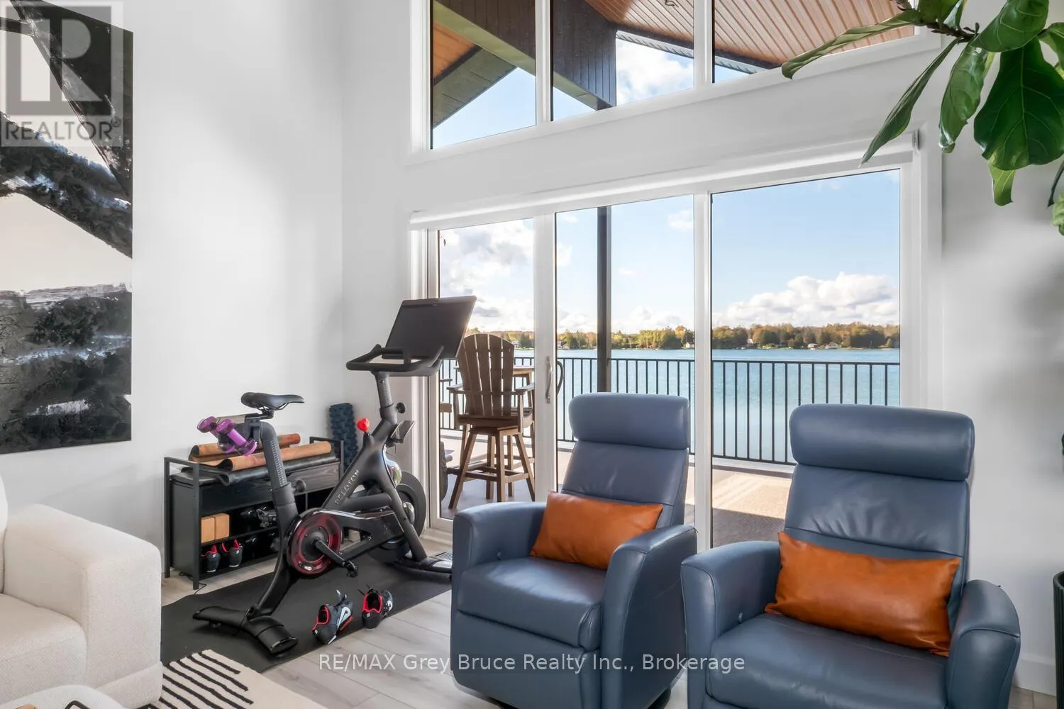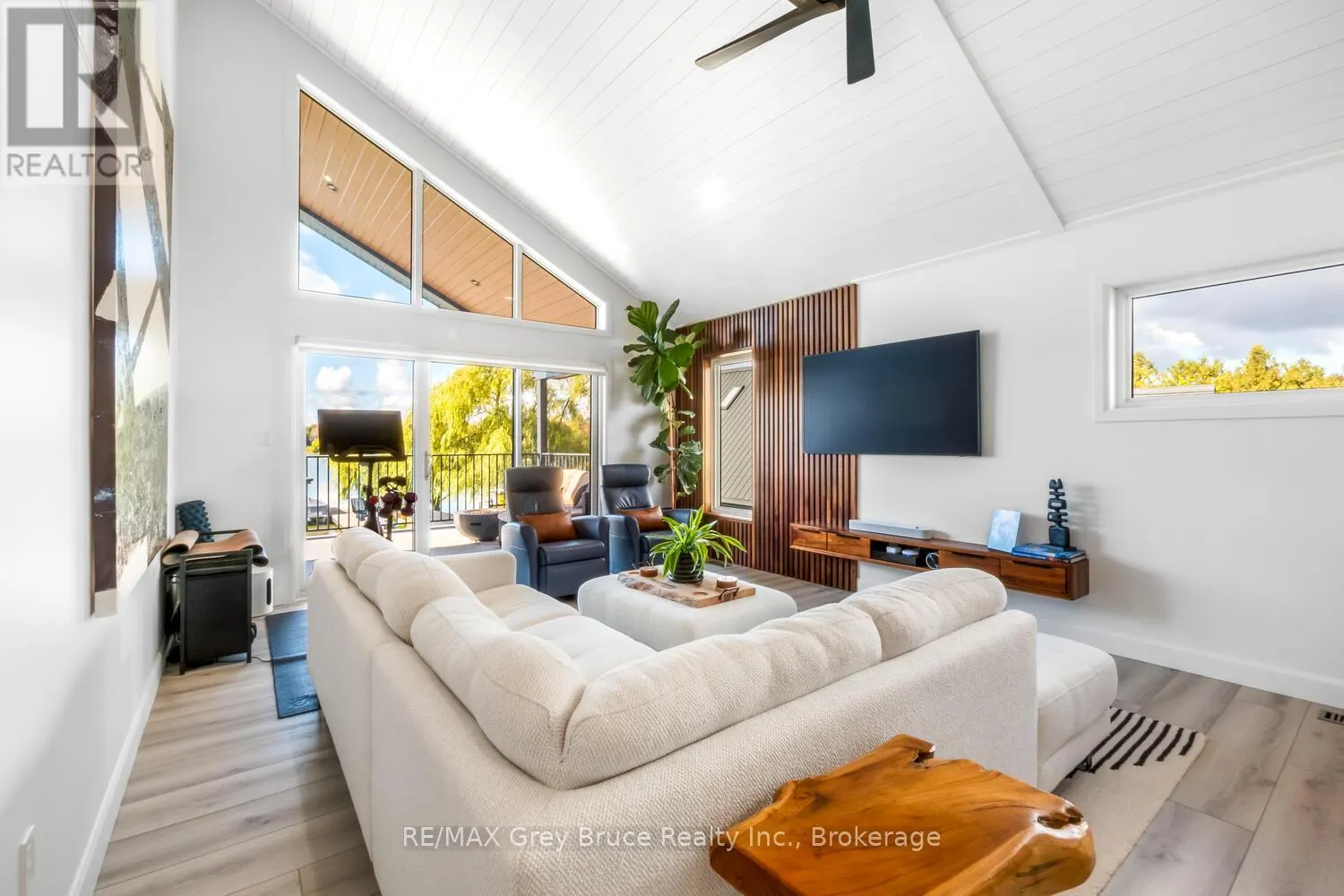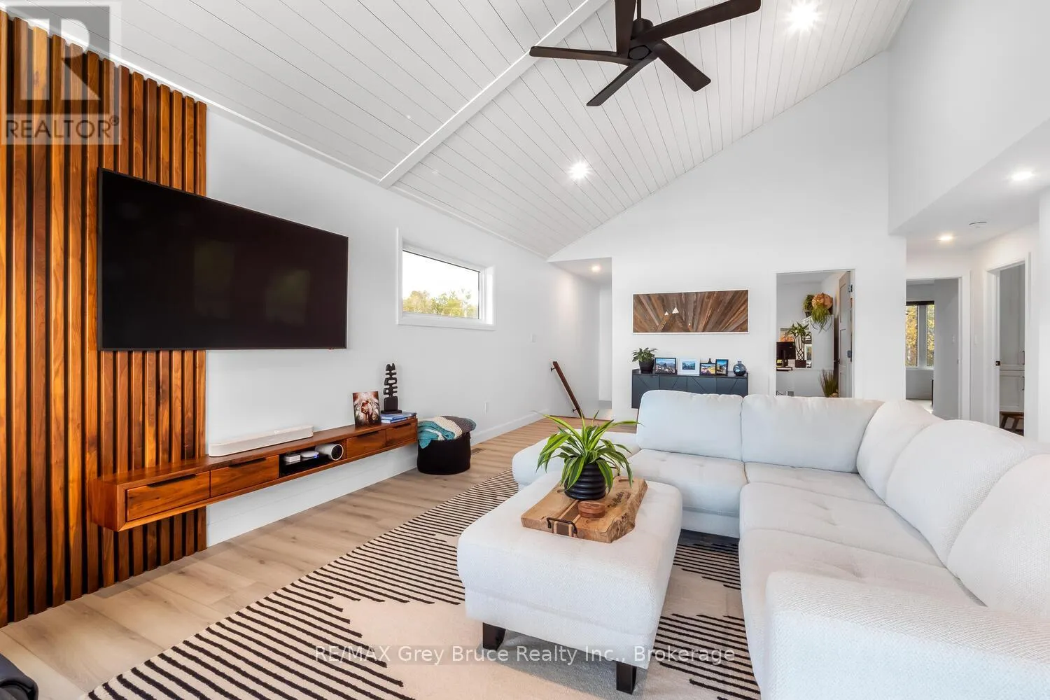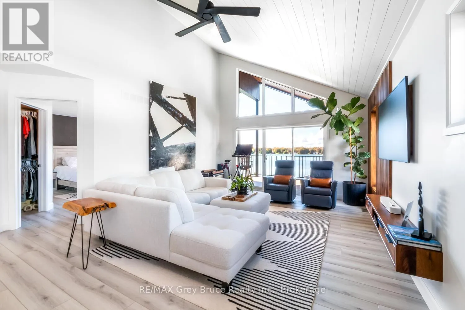 Cross Streets: concession 2 chatsworth. ** Directions: highway 10 heading north take con 2 south, turn on country lane drive on the left. Lakefront home on Williams Lake. This custom Built Dream Home By John Clarke, combines luxury, functionality and stunning design. The property spans 50 feet of shore line and 228 (irregular)depth, providing ample outdoor space that seamlessly integrates with the beautiful lakeside environment. South facing patios (30 X12) enhance the homes natural light and offer breathtaking views of the lake, making it an ideal retreat for relaxation and entertaining.The Exterior of the home is crafted with LUX steel siding, that is not only aesthetically pleasing but also maintenance free, ensuring long lasting durability. One of the standout features of the home is its energy efficiency. Equipped with Strasburger windows, a state of the Art Septic system, drilled well with Submersible pumps providing 10 gallons a minute. The home is designed for modern living with an Energy efficient heat pump, Central A/C system, LED lighting, a 200 amp electrical service. The outdoor living area has an impressive ,stamped concrete patios, front and lakeside, upper deck is covered with Aluminum decking, professionally landscaped yard, thats not just beautiful, it offers a 3 hole putting green, fire-pit, paving stones, programmable lighting, lakeside sitting area and dock. The home is built with every element of luxury, the Chef's kitchen is a true highlight, featuring top of the line Frigidaire appliances, including Refrigerator, induction cooktop , double wall convection oven and dishwasher. Quartz counter tops throughout. Floating Vanities in all the bathrooms. The main level offers open concept living with Custom Built Kitchen, walk in Pantry, Luxury Vinyl Planking floor. The Upper level offers panoramic views from both the Living area, with its vaulted ceiling and Primary bedroom with 3 piece ensuite and W/I closet. 2 more bedrooms a 4 piece bath W/Laundry facilities. Large utility shed with covered space for Hot Tub-already wired to go. Electrical power at dock. No detail overlooked. (id:27476)
