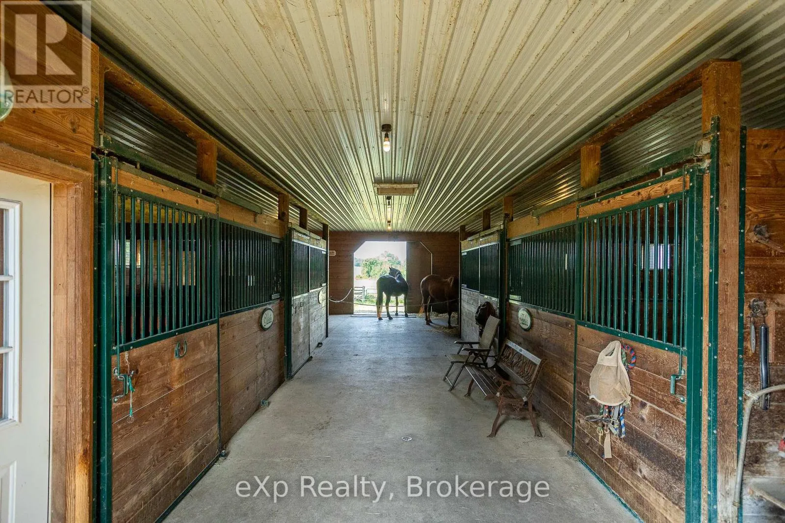 Cross Streets: South of Grey Rd 16.Between Concession Rd 12 and Grey Road 3. ** Directions: South of Keady on Grey Rd 3. Set a ways back from the paved road, this farm has it all! 121 acres of pasture, workable farmland, mixed bush, a meandering creek, and well-equipped buildings for a variety of farming endeavours. Surrounded by mature trees with views of the horse paddocks from the veranda, the home blends the charm of the original farmhouse: pine floors, solid wood cabinets, and a cozy woodstove with the added space of a bright, modern addition. The farmhouse includes a welcoming kitchen, family room, office or optional bedroom, and a three-piece bath, while the addition features a large, light-filled living room with deck access, a primary bedroom, four-piece bath, laundry room, and attached double garage. Upstairs offers a loft sitting area and second bedroom, and the basement boasts a spacious rec room with built-in bar and pool table. Outbuildings include a 36' x 48' horse stable with four 12' x 12' box stalls, heated tack room with plumbing, a 43' x 50' bank cattle barn with concrete barnyard and separate well, a 26'6" x 46'6" driveshed, and a 40' x 56'6" coverall building. (id:27476)