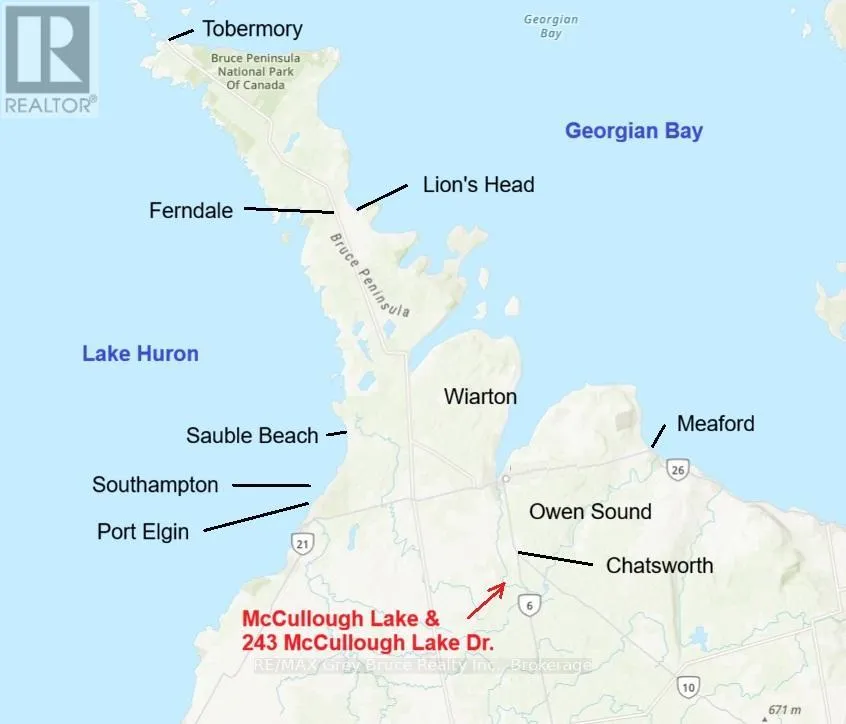 Cross Streets: MOTO PARK RD. ** Directions: From Williamsford; from Hwy #6 turn West on McCullough Lake Road, turn South onto Concession Rd 4, turn Right onto McCullough Lake Drive to real estate sign at #243. This spacious side-split is located in a small sub-division at McCullough Lake, which is approx. 5 kms from Williamsford, West of Hwy #6. The house and large garage with workshop sits on a 95' x 150', level and dry lot. Your access to the Lake and a dock is literally a couple of dozen steps away and across the road at the small park. Enjoy the warm summer days sunning by the water or fishing and swimming. The main floor has one bedroom, an open concept kitchen with a large eat-at peninsula, a separate dining area and living room. The large picture window offers a partial view of the lake. The upper level has a 4 pc. bath, the primary bedroom and a third bedroom. The lower level family room is quite large with access to the backyard and has garden doors opening onto a southern exposure sundeck. Mechanicals/electrical panel, etc. are located in the basement along with laundry pair. The detached garage is set up for auto storage on one side and a large workshop (22' x 28') complete with workbench on the other side, or more storage for your seasonal toys (boat/jet ski/snow machine, etc.). If you own a boat, there is a 'keyed' boat launch on the lake for your use - p.s. the fishing is great! The city of Owen Sound is about 25 mins. away. Guelph and K-W are about 1 1/2 hrs, and Toronto is a relaxing 2 hr.+ drive. Your drive to Bruce Power would be about 50 mins. This is your opportunity to own a home, cottage or quiet get-a-way by the water at an affordable price. Vinyl siding & metal roof mean low maintenance. The property offers tremendous potential with the house needing some upgrading. The house, property and inclusions are being offered in as is, where is condition. Take this opportunity to trade some of your time for value$. (id:27476)