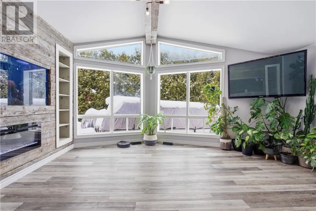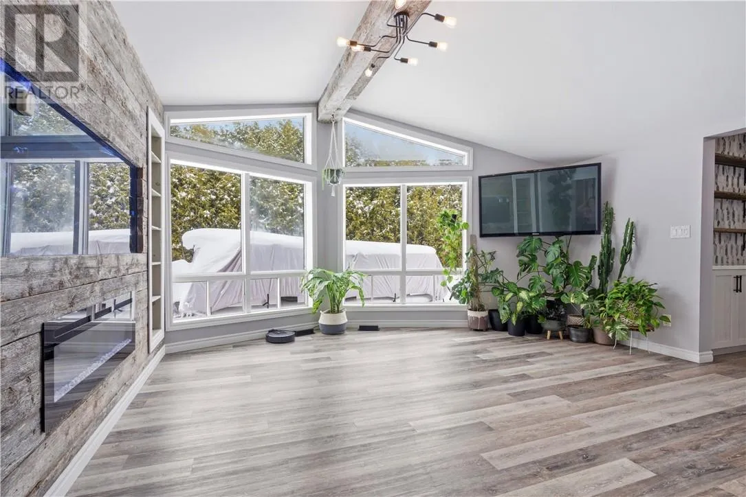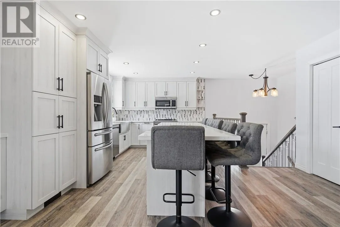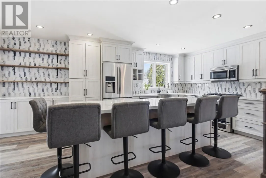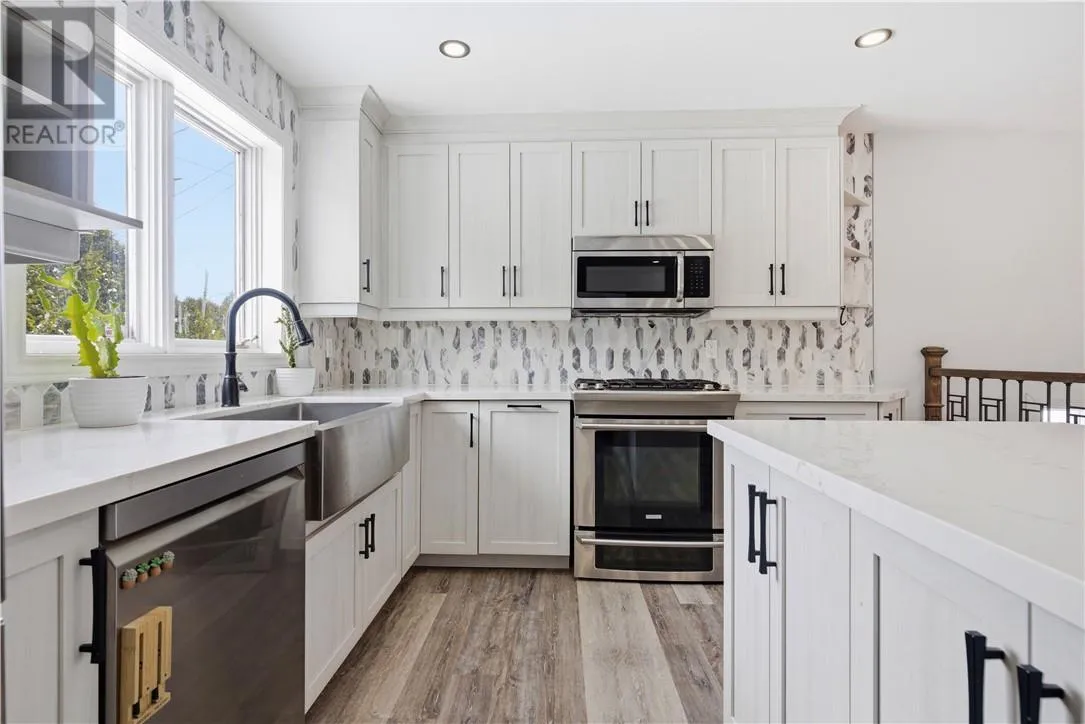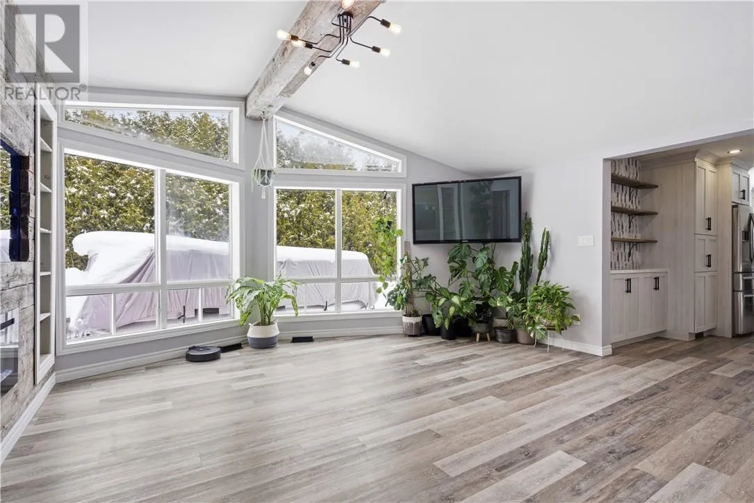 Where modern design meets total comfort in a home that truly stands out. This 3+1-bedroom, 2-bathroom beauty has been fully transformed with a vibe thatâs equal parts designer-chic and perfectly cozy. Youâll love the bright, open-concept main floor featuring soaring vaulted ceilings, rustic wood beams, and massive windows that flood the space with natural light. The kitchen is a total dream with crisp white cabinetry, elegant quartz counters, a deep farmhouse sink, and a built-in dishwasher. Plus, the oversized pantry offers incredible floor-to-ceiling storage for the ultimate coffee bar or snack station. The living room is a showstopper, anchored by a floor-to-ceiling reclaimed wood accent wall with a built-in aquarium and a sleek electric fireplace. Head downstairs to the fully finished lower level, featuring a spectacular stone accent wall and a second fireplace, the perfect spot for a home gym, movie room, or a quiet office retreat. Outside, enjoy a private, tree-lined view that feels like a getaway right in the middle of everything. With a stylish, bright laundry room and modern finishes throughout, this one is move-in ready and waiting for you. (id:27476)