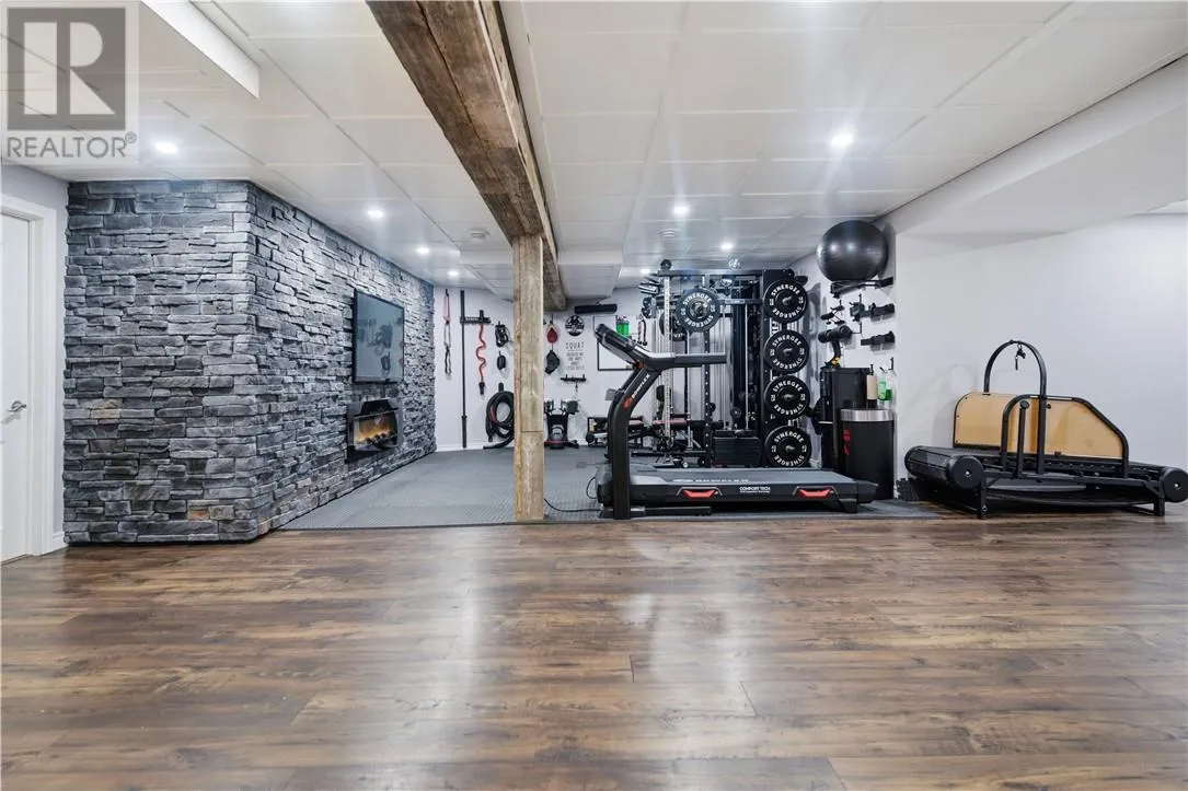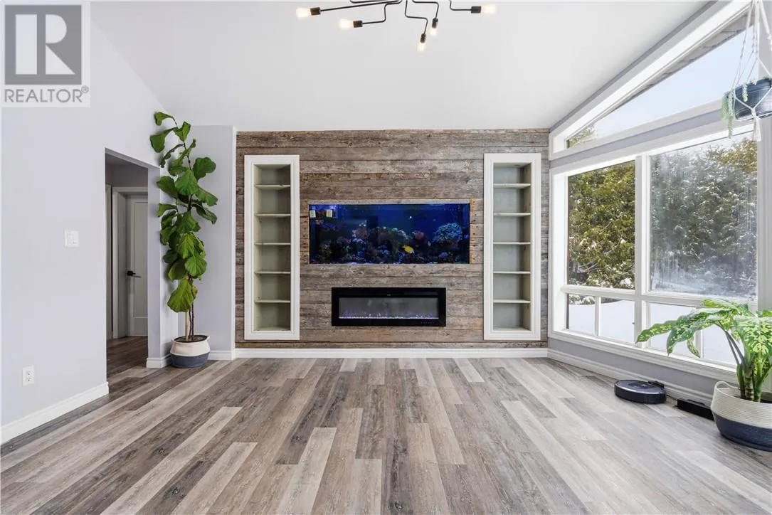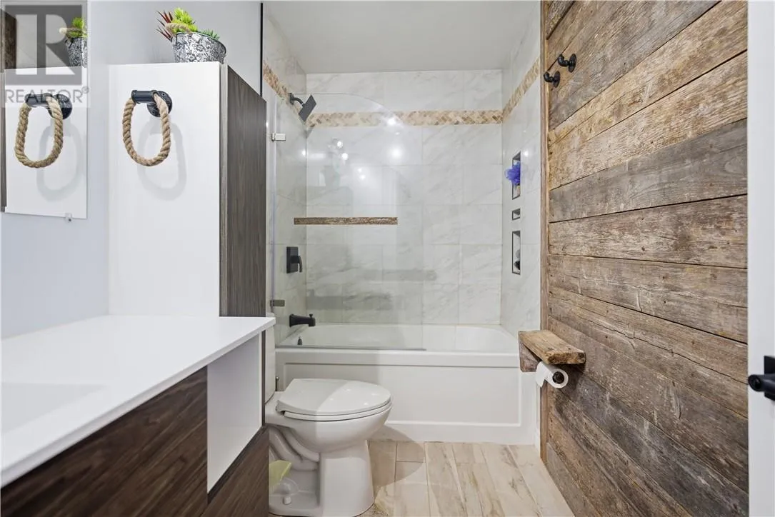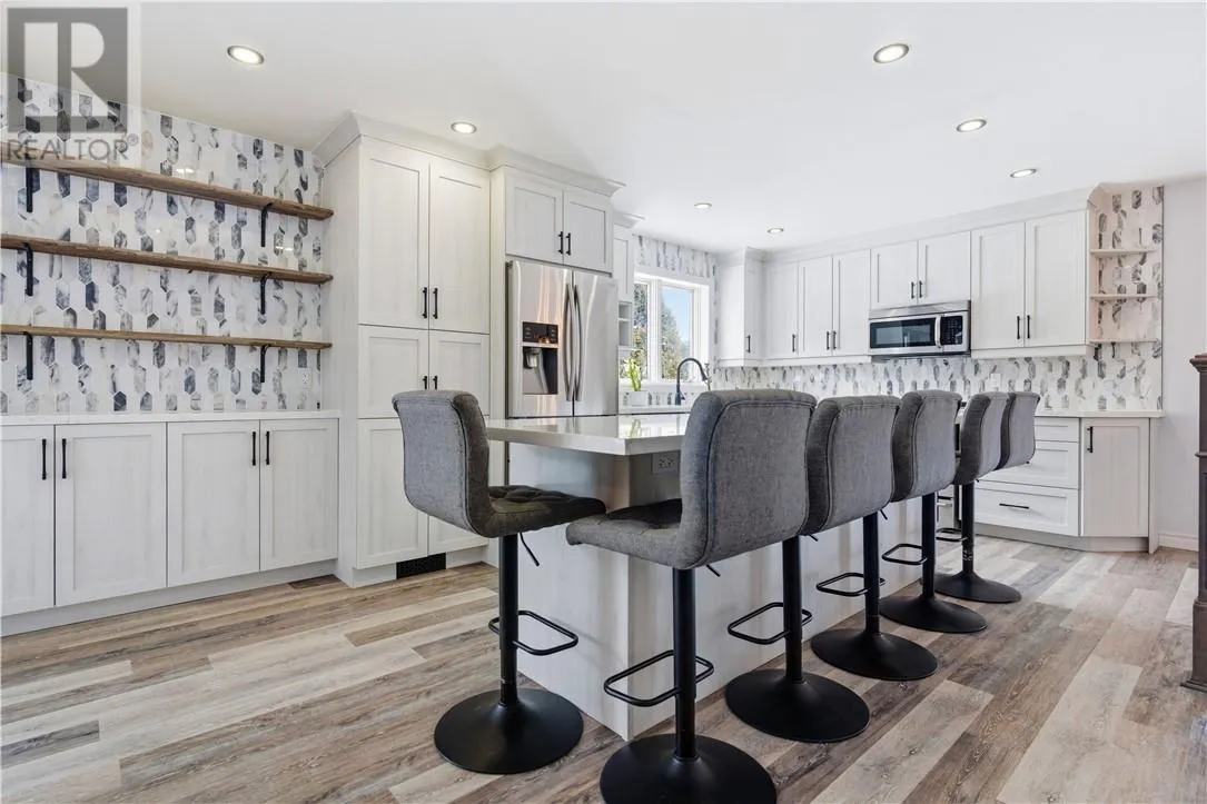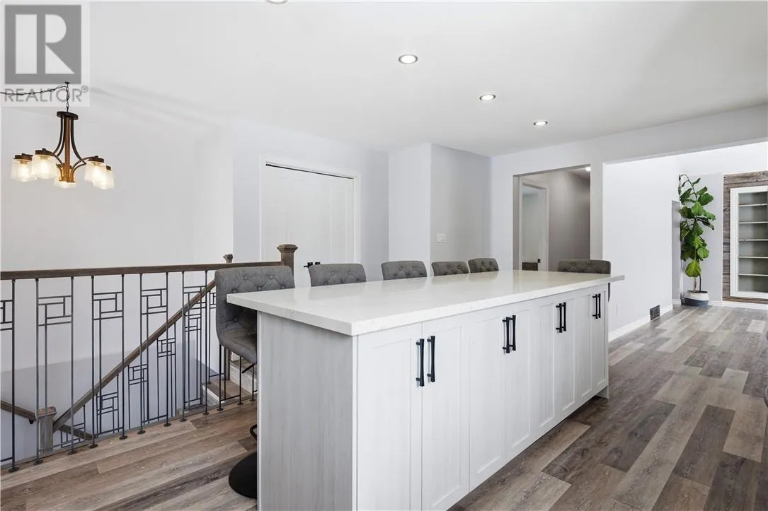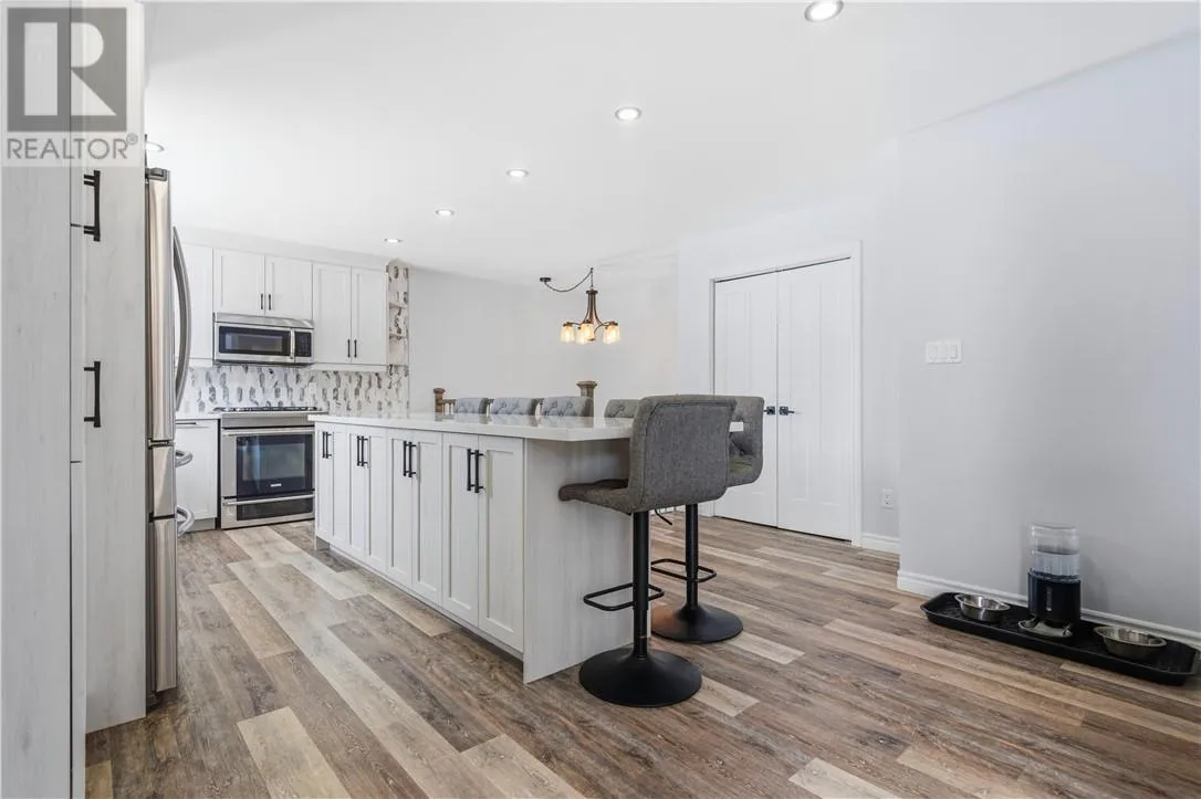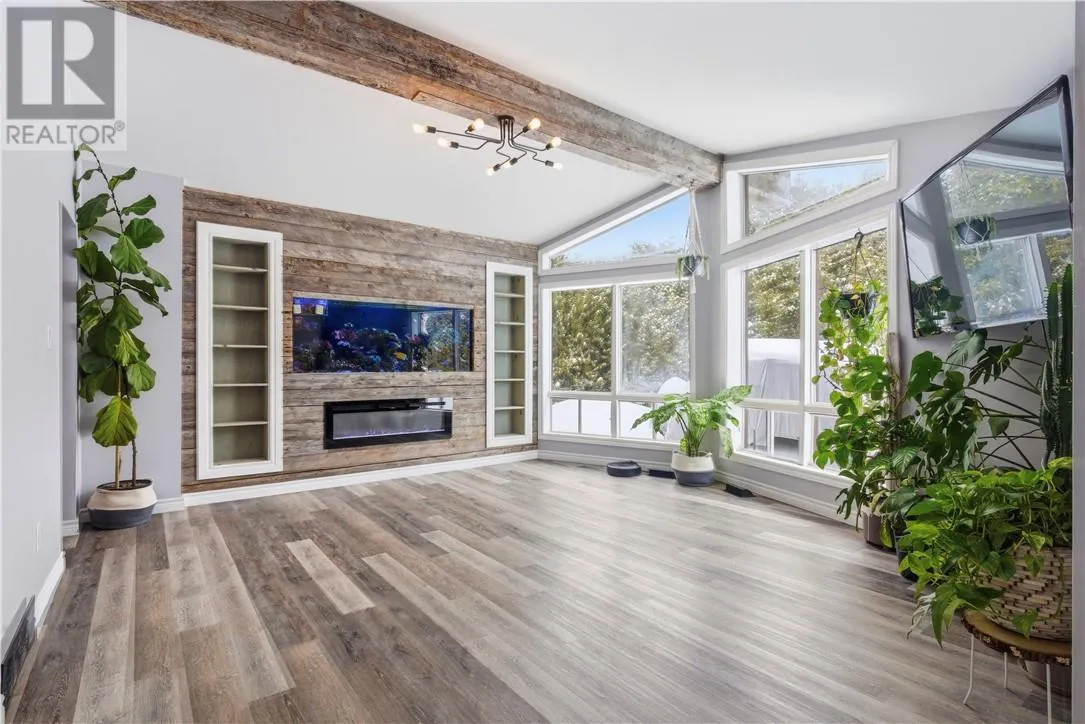 Where modern design meets total comfort in a home that truly stands out. This 3+1-bedroom, 2-bathroom beauty has been fully transformed with a vibe thatâs equal parts designer-chic and perfectly cozy. Youâll love the bright, open-concept main floor featuring soaring vaulted ceilings, rustic wood beams, and massive windows that flood the space with natural light. The kitchen is a total dream with crisp white cabinetry, elegant quartz counters, a deep farmhouse sink, and a built-in dishwasher. Plus, the oversized pantry offers incredible floor-to-ceiling storage for the ultimate coffee bar or snack station. The living room is a showstopper, anchored by a floor-to-ceiling reclaimed wood accent wall with a built-in aquarium and a sleek electric fireplace. Head downstairs to the fully finished lower level, featuring a spectacular stone accent wall and a second fireplace, the perfect spot for a home gym, movie room, or a quiet office retreat. Outside, enjoy a private, tree-lined view that feels like a getaway right in the middle of everything. With a stylish, bright laundry room and modern finishes throughout, this one is move-in ready and waiting for you. (id:27476)