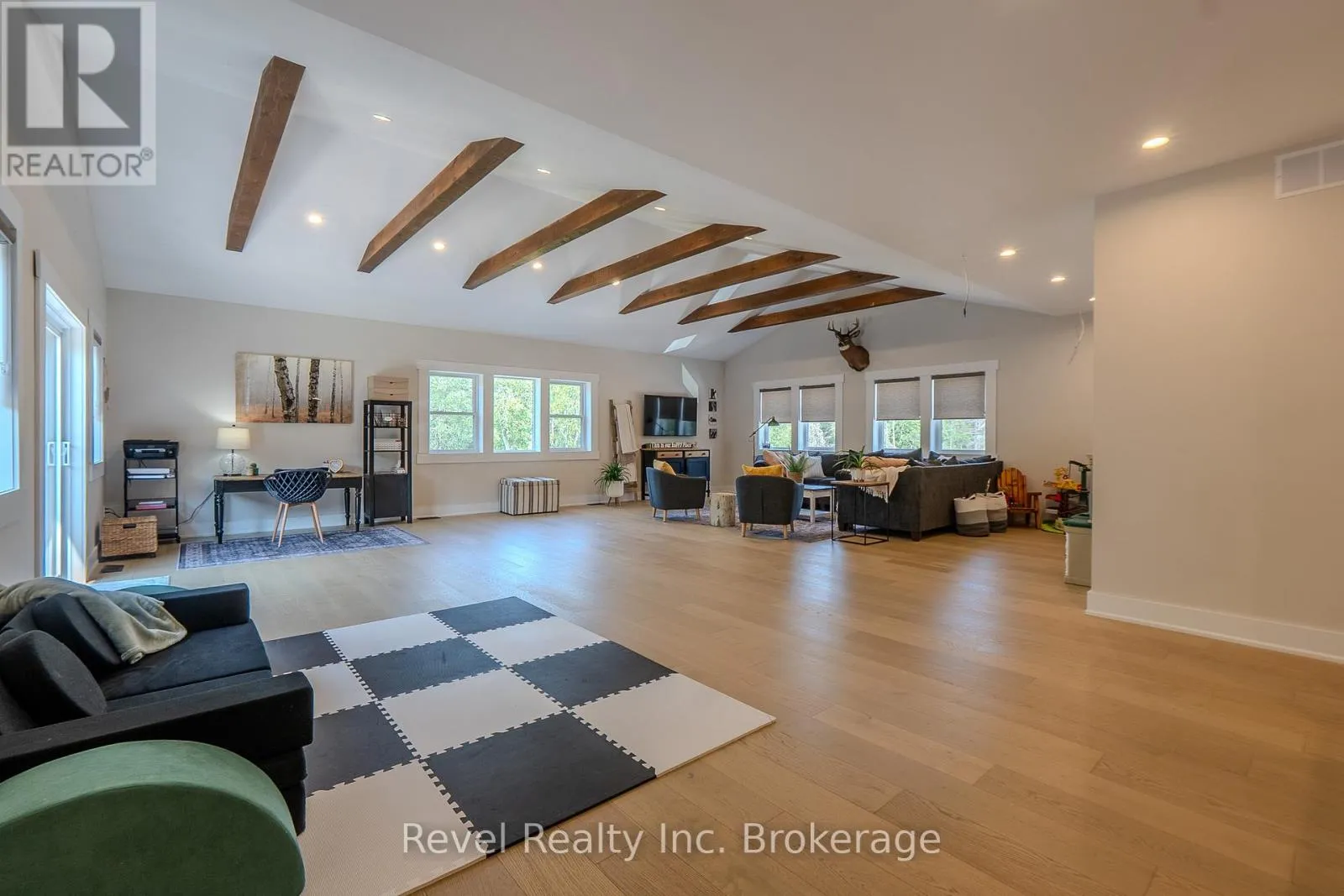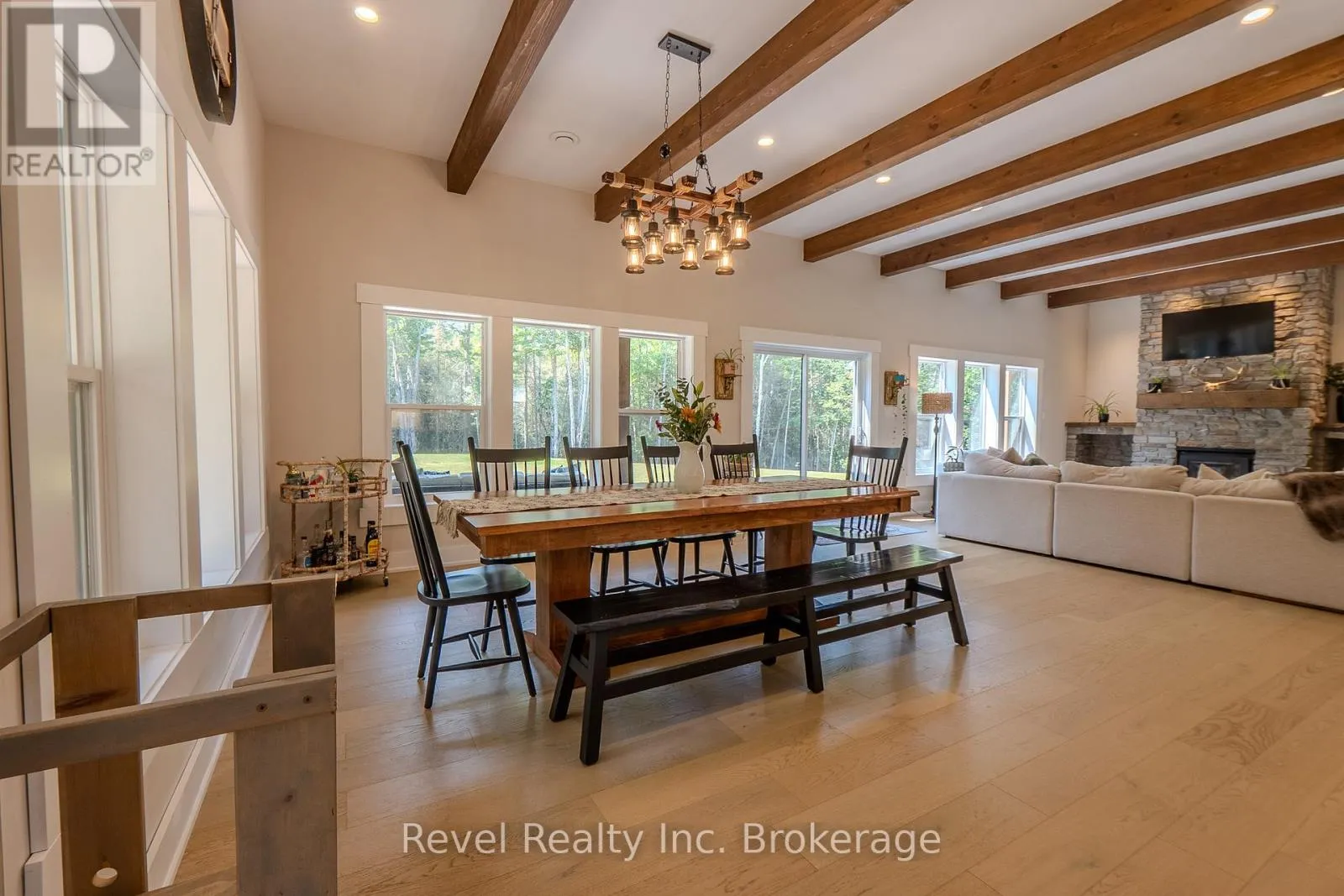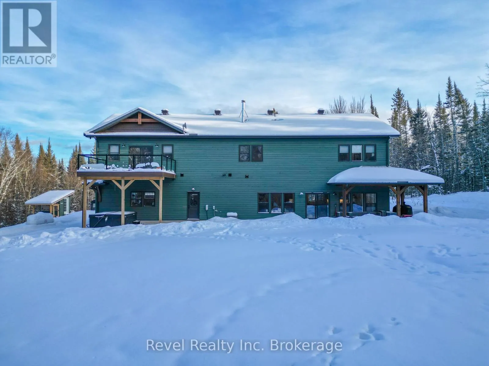 Cross Streets: Golf Course Rd. and River Rd. ** Directions: Hwy 11 to Lake Nosbonsing Rd, to Village Rd, turn left on River Rd. Welcome to this incredible Landry Homes designed, owner-custom built, 4025 sq. ft. slab on grade, 2-storey modern farmhouse situated on 4 acres of private forest for those looking to find enjoyment and solace in nature. Featuring 4 bedrooms, 2.5 bath, this house has ample room for the growing family. All rooms were carefully designed to be spacious with height and room for movement and entertaining. Walking into the main floor, you will notice the 10 ft. ceilings with log beams throughout as an accent, the spacious foyer with double closets offers plenty of storage. The floor plan is open, and the living room is complemented by this immense stone, wood-burning fireplace perfect for those winter nights. The kitchen is the "piece de resistance" with custom cabinetry, a large centre island, and quartz countertops.The in-floor radiant heat is included in the attached double garage, and the 24 x 40 ft detached shop with an upper mezzanine - perfect for the mechanic, or carpenter. The floors can be heated by the outdoor wood boiler, or with a turn of a switch to propane.The second storey of the home features an immense Great Room with vaulted ceilings and wood beams with sliding doors to an upper composite deck with a forest view with the glass railings. The Great room has many purposes: family room, pool area, office, kids play zone, and there were plans for a wet bar with surround sound speakers (all roughed in). The second level also features a laundry room, kids bathroom, 2 large storage closets, 2 large bedrooms with double closets each, and the back of the house is the primary suite with His and Hers walk-in closets, and a 5-PC spa-like ensuite. The exterior has a large wrap-around covered porch (all concrete slab) and back patio with a path to the covered hot tub area. Closing pending severance completion. (id:27476)