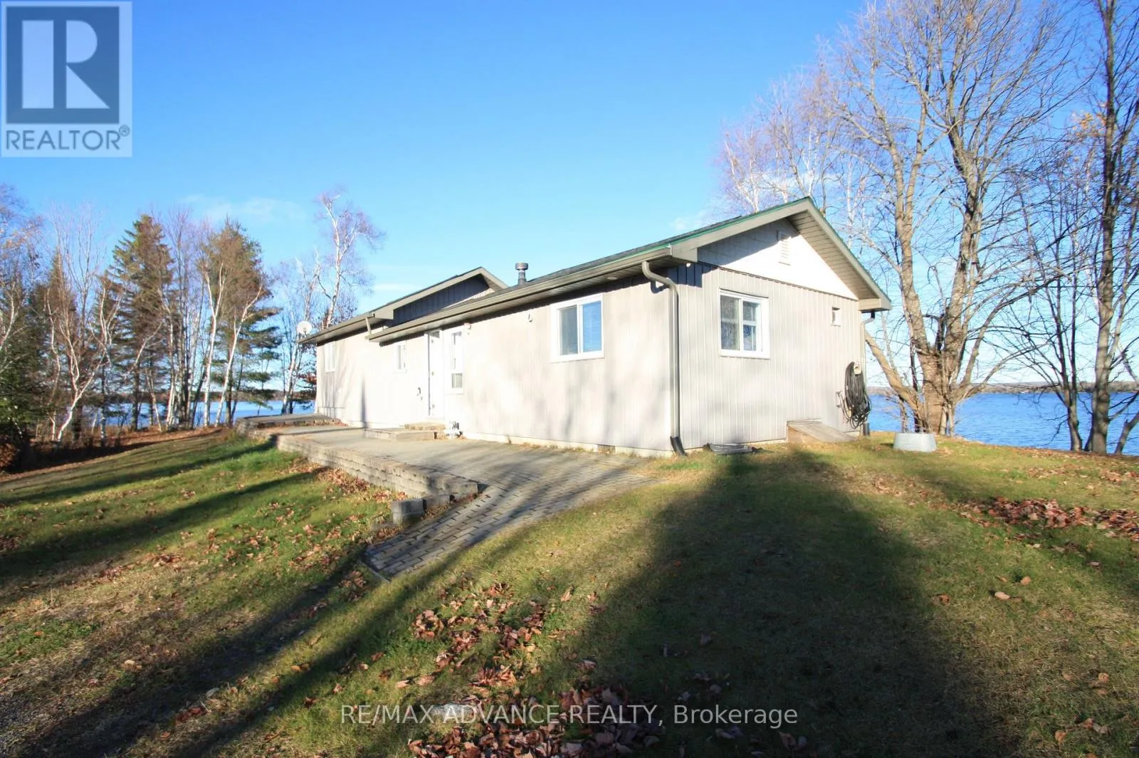 HWY 11 TO EAST ON CHISWICK LINE, LEFT ON ALDERDALE ROAD, RIGHT ON GRAHAMVALE ROAD, FOLLOW TO 323D. Welcome to 323D Grahamvale Road, perfectly situated on the serene shores of Wasi Lake. Surrounded by water on three sides, this unique property offers stunning panoramic views and breathtaking sunsets - truly giving you the feeling of your own private island, yet with the convenience of road access and ample parking. This charming 3-bedroom, 1-bath cottage or year-round home features single-level living, abundant natural light, and water views from nearly every window. The spacious eat-in kitchen and cathedral-ceiling living room with a propane fireplace create a warm and inviting atmosphere. Additional highlights include a propane furnace (2020), hot water on demand, laminate flooring throughout, and a back-up generator for peace of mind. Enjoy no hydro bills with the solar power system, upgraded with new batteries in 2023. Shingles were replaced in 2020, ensuring low maintenance for years to come. Bonus features abound - a cozy bunkie with compost toilet, 1.5-car garage, storage shed, boathouse, boat launch, aluminum dock, interlocking brick patio, and a drilled well. Set on approximately 2 acres of private land with over 1,000 feet of owned shoreline, this property is a true retreat. Previously enjoyed as a successful and highly rated Airbnb, this lakefront gem is located just 3 hours from Toronto, 25 minutes off Hwy 11, and a short drive to North Bay, Powassan, and Astorville. The surrounding area offers endless opportunities for boating, fishing, golfing, hiking, and outdoor recreation - the perfect escape to nature. Experience the tranquility of lakeside living at 323D Grahamvale Road - your private waterfront paradise awaits. (id:27476)