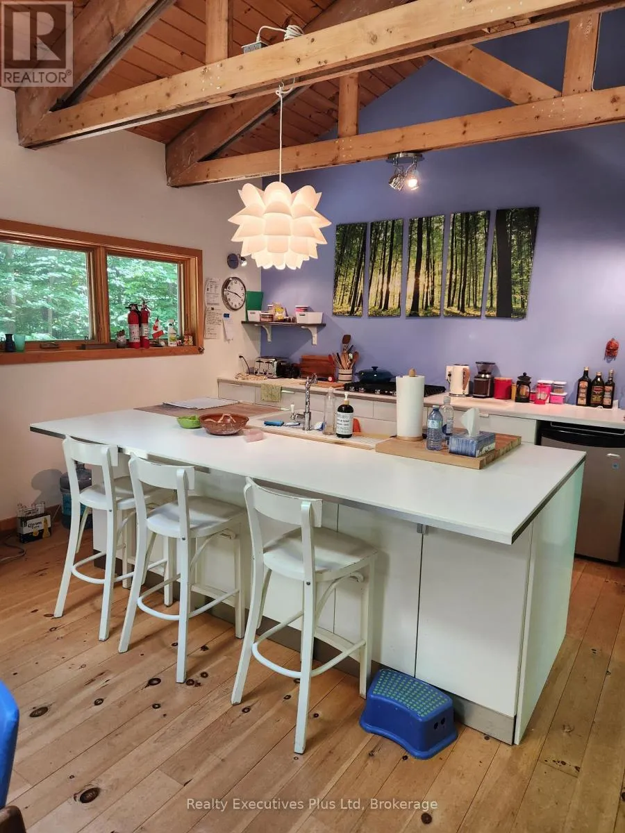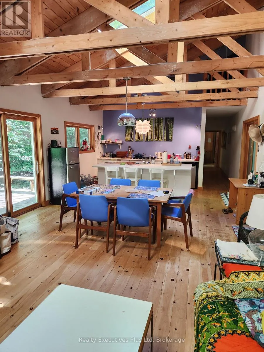 Cross Streets: Zhingos & O'Gemaa Miikan. ** Directions: Ferry to Christian Island then follow O'Gemma Miikan to Zhingos. NESTLED IN THE WOODS OF BIG SAND BAY ON CHRISTIAN ISLAND, YOU WILL FIND A 2 BEDROOM, 1 BATHROOM COTTAGE WITH STORAGE LOFT THAT WAS CONCEPTUALIZED BY THE ARCHITECT TO REFLECT AN INDIGENOUS LONGHOUSE. THE DESIGN WHICH INCLUDES FLOOR TO CEILING WINDOWS AND SLIDING GLASS DOORS AND THE HIGH VAULTED BEAM CEILINGS ALLOWS ALL THE WONDERFUL LIGHT THAT IS PEAKING THROUGH THE LEAVES TO ENTER THE STRUCTURE. THE OPEN CONCEPT KITCHEN DINING AND LIVING ROOM AREA (GREAT ROOM) IS WONDERFUL FOR ENTERTAINING AND OPENS ONTO A LARGE FRONT DECK AND A SMALLER REAR DECK. WALK DOWN THE BEACH ROAD AND YOU HAVE ACCESS TO THE BEACH AT BIG SAND BAY. THE HORSESHOE SHAPED, BEAUTIFUL SAND DUNES AND CRYSTAL CLEAR WATER MAKE YOU FEEL LIKE YOU ARE IN THE CARIBBEAN. THE 20 MINUTE FERRY RIDE FROM THE MAIN LAND TO THE ISLAND IS THE PERFECT OPPORTUNITY TO DECOMPRESS. NO SUBLEASES ALLOWED ON THE ISLAND SO THIS IS A VERY SAFE PLACE TO HAVE YOUR COTTAGE AT AN AFFORDABLE ALTERNATIVE. NO TAXES AS THIS IS INDIGENOUS LAND. ANNUAL LEASE AMOUNT IS $2,925.00 & THE ONLY ADDITIONAL COSTS ARE YOU PAY YOUR OWN ELECTRICITY (APPROX. $820 FOR 2024) & A FEE FOR EMERGENCY SERVICES, GARBAGE/RECYLCING PICK UP WHICH IS $872.76 FOR 2025. 30 YEAR RENEWABLE LEASE WITH 16 YEARS REMAINING ON THIS TERM (id:27476)
