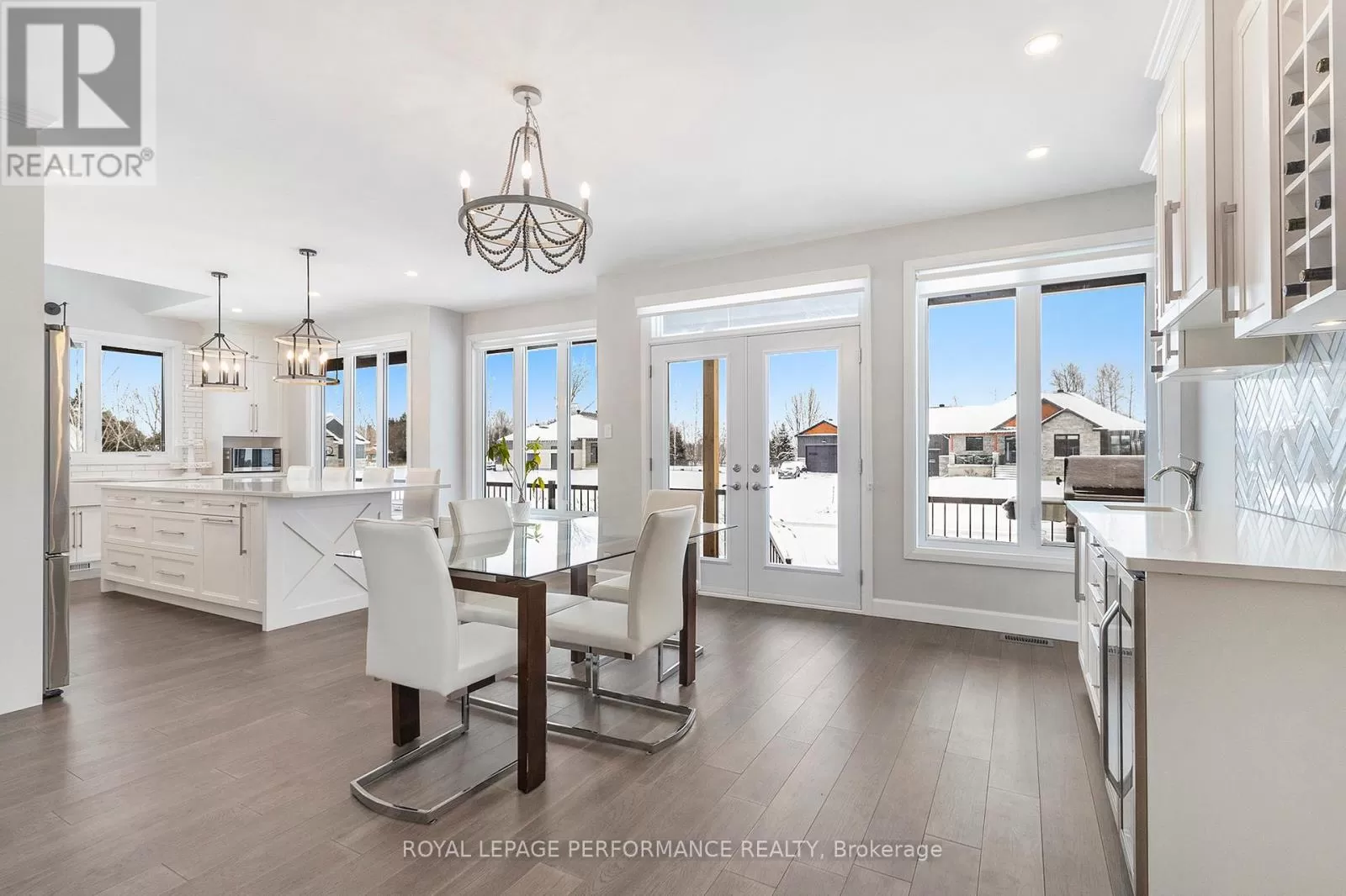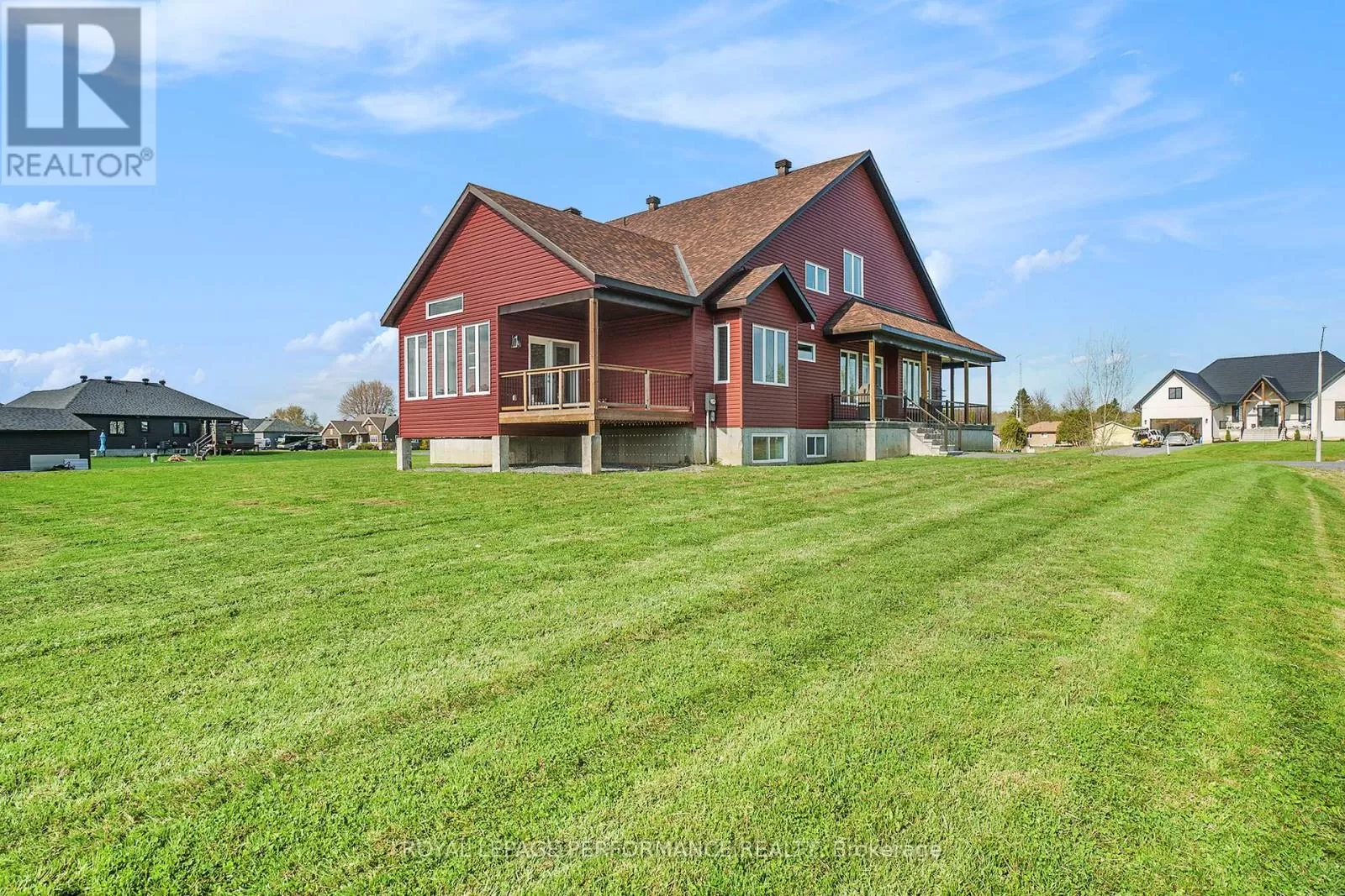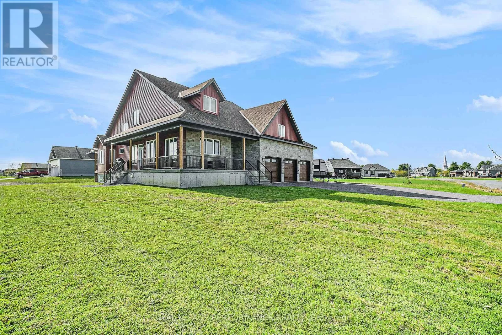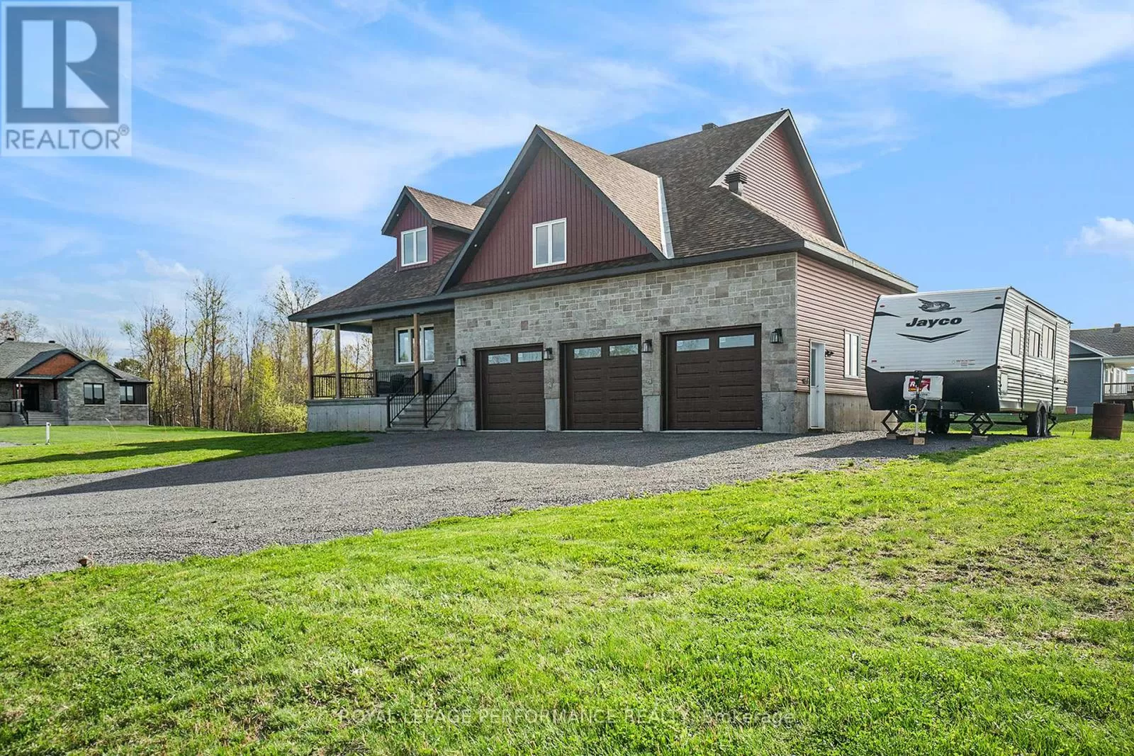 Cross Streets: Gendron Rd. ** Directions: Going North on Gendron Rd, turn right on Tulipes St, then left on Des Violettes St. Welcome to this stunning 2,718 sq. ft. custom-built bungalow with loft, perfectly situated on a spacious corner lot in a highly sought-after, family friendly community. This 7-bedroom, 4-bathroom home seamlessly blends modern elegance with rustic charm, offering an inviting and functional layout. The wraparound covered porch leads into a bright and airy main floor with vaulted ceilings and an abundance of natural light. The gourmet kitchen is a chefs dream, featuring quartz countertops, floor-to-ceiling cabinetry, a large island, high-end stainless steel appliances, a breakfast bar, and a walk-in pantry, all flowing effortlessly into the dining and living areas. A cozy reading nook and a double-sided gas fireplace add warmth and character to the space. The luxurious master suite boasts a walk-in closet and a spa-like 5-piece ensuite with a soaker tub and double-sided fireplace. The fully finished basement offers an in-law suite, three additional rooms, a wet bar, and a fireplace, providing ample space for extended family. A heated three-car garage, parking for 10+ vehicles, and two 30-amp plugs for trailers add to the home's convenience. Located in a vibrant community with direct access to bike paths and ski-doo trails, this exceptional home offers the perfect balance of comfort, style, and outdoor living. Don't miss your chance to own this one-of-a-kind property! (id:27476)