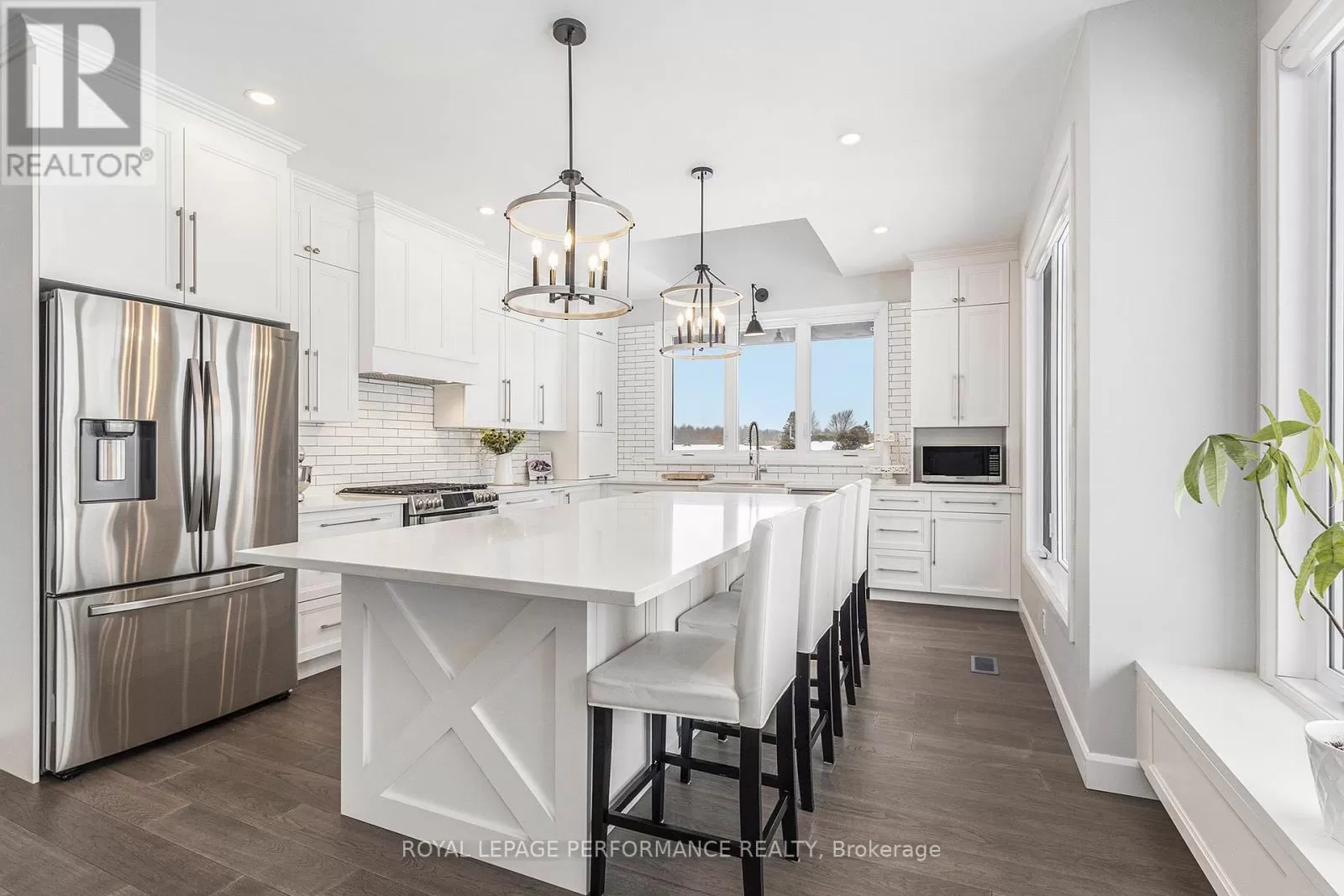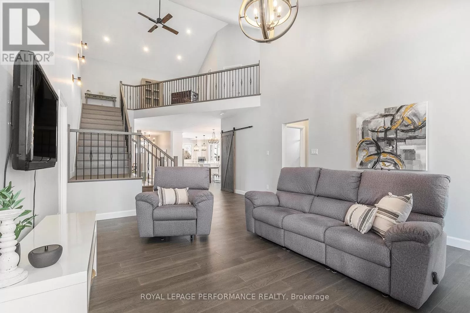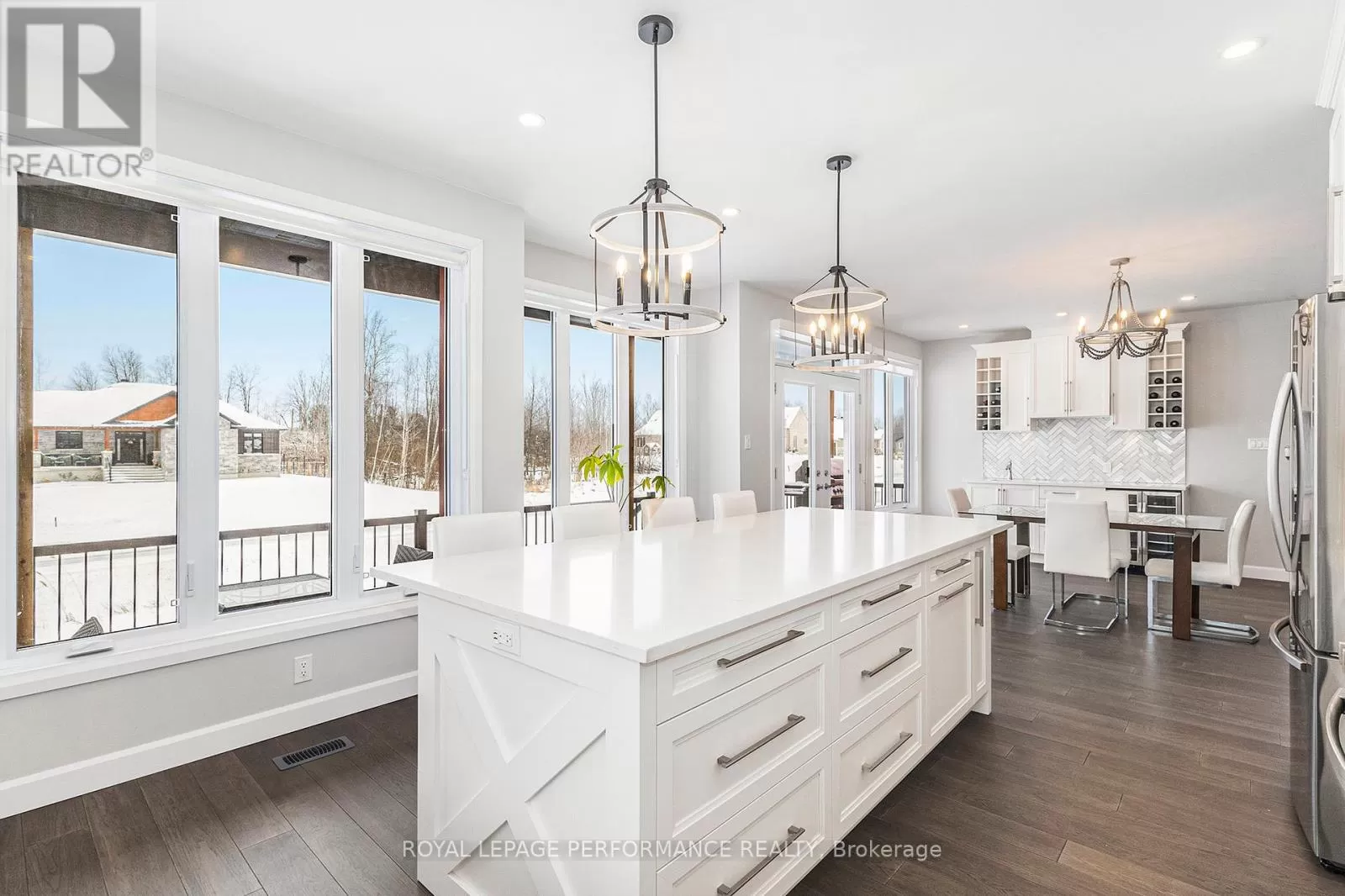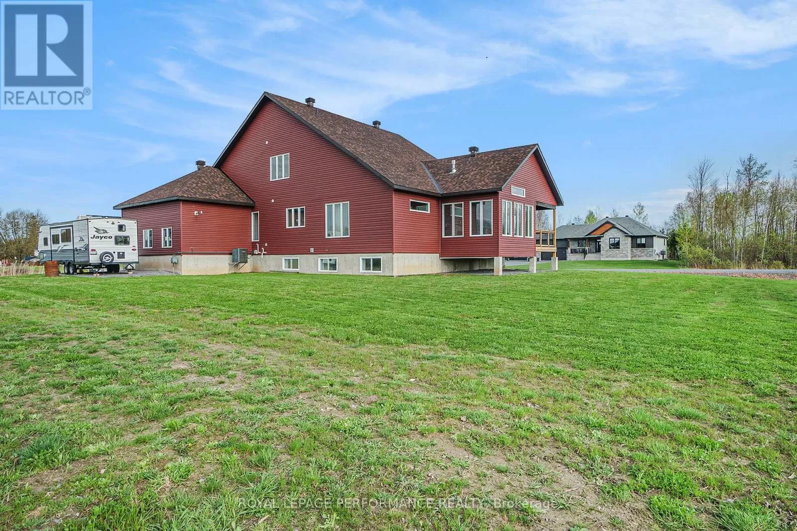 Cross Streets: Gendron Rd. ** Directions: Going North on Gendron Rd, turn right on Tulipes St, then left on Des Violettes St. Welcome to this stunning 2,718 sq. ft. custom-built bungalow with loft, perfectly situated on a spacious corner lot in a highly sought-after, family friendly community. This 7-bedroom, 4-bathroom home seamlessly blends modern elegance with rustic charm, offering an inviting and functional layout. The wraparound covered porch leads into a bright and airy main floor with vaulted ceilings and an abundance of natural light. The gourmet kitchen is a chefs dream, featuring quartz countertops, floor-to-ceiling cabinetry, a large island, high-end stainless steel appliances, a breakfast bar, and a walk-in pantry, all flowing effortlessly into the dining and living areas. A cozy reading nook and a double-sided gas fireplace add warmth and character to the space. The luxurious master suite boasts a walk-in closet and a spa-like 5-piece ensuite with a soaker tub and double-sided fireplace. The fully finished basement offers an in-law suite, three additional rooms, a wet bar, and a fireplace, providing ample space for extended family. A heated three-car garage, parking for 10+ vehicles, and two 30-amp plugs for trailers add to the home's convenience. Located in a vibrant community with direct access to bike paths and ski-doo trails, this exceptional home offers the perfect balance of comfort, style, and outdoor living. Don't miss your chance to own this one-of-a-kind property! (id:27476)