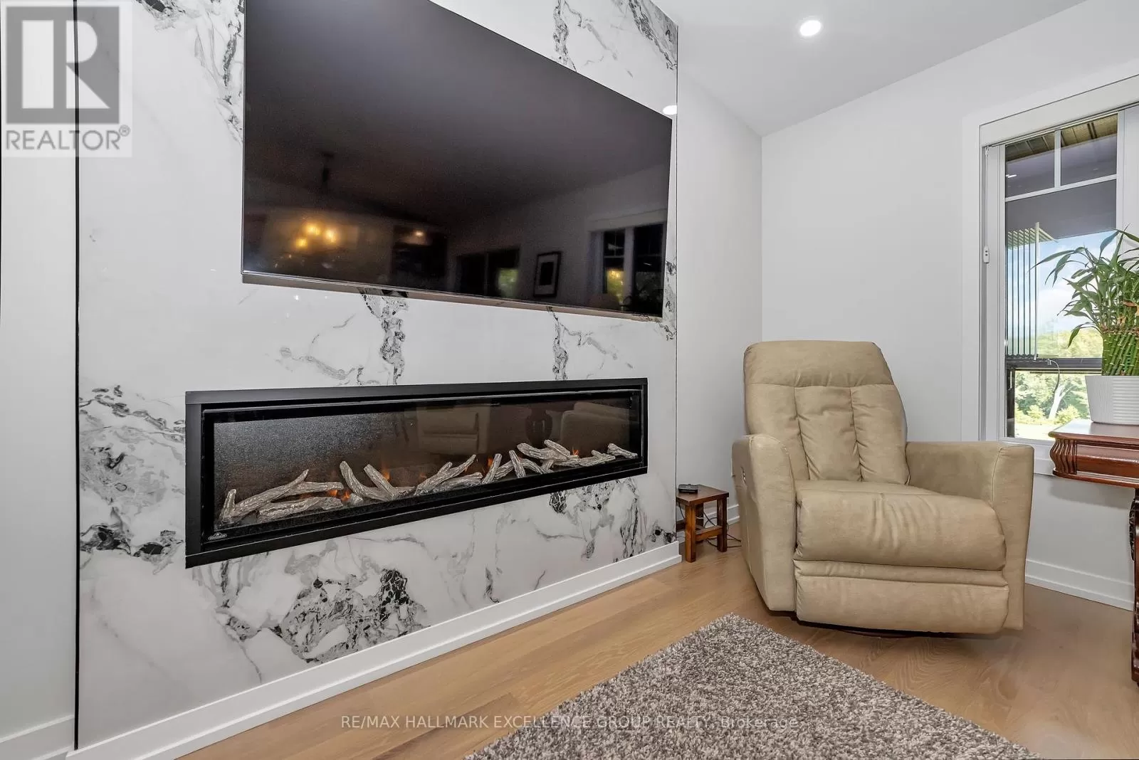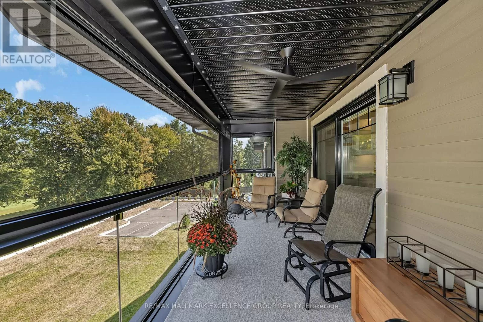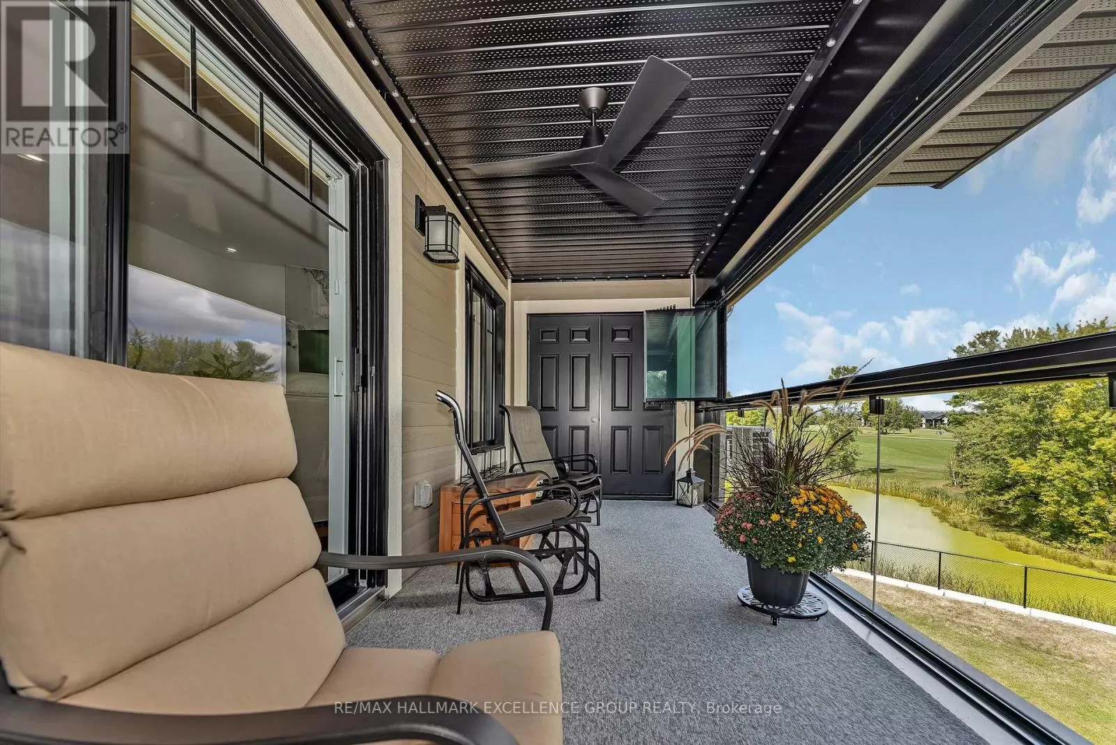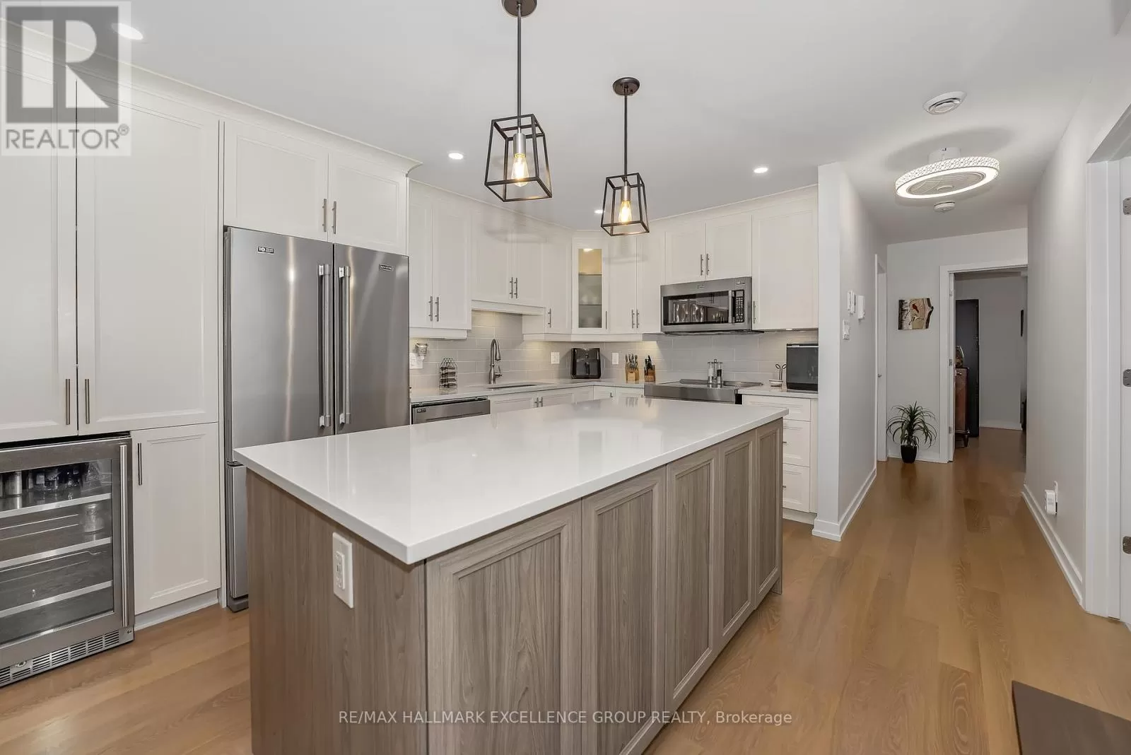 Cross Streets: Laurier and Montee Outaouais. ** Directions: Highway 17 east to Caron, right on Caron, left on Laurier, right on Montee Outaouais. Live where leisure meets luxury at Domaine du Golf, an exclusive community nestled on the prestigious Rockland Golf Club. Overlooking the 1st fairway East from your balcony and the 3rd hole South from your front door, this stunning 2-bedroom condo offers not only a beautiful home but also a vibrant, active lifestyle.Designed for comfort and function, the open-concept living space features efficient and cozy radiant floor heating, premium engineered hardwood floor&porcelain tile over concrete construction for peace and quiet. The kitchen is a true centerpiece with its oversized island with double storage, pantry w/ rolling shelves, full-length built-in buffet ,glass accent doors and elegant undermount lighting. The living rooms electric fireplace adds warmth and charm,while thoughtful touches like automatic closet lighting and scuff proof entry walls reflect the attention to detail.Your private 3-season east-facing balcony is perfect for morning coffee in the sun, with a motorized screen & customizable permanent lighting creating year-round enjoyment. Past 10:30 am, the shade keeps the space comfortable and ideal for relaxing after a round of golf or an afternoon walk while screen can be lowered for clearer view when not needed.The primary suite offers room for a king sized bed while the second bedroom is perfect as a guest room or home office.Pax system can be removed .Additional highlights:six high end appliances, custom TV rack,EV rough-in in the garage, and two parking spaces (interior #7 and exterior #13 ;exterior can be sold separately).Condo fees: $380 + $20 for ext.parking. Domaine du Golf is about more than just a home, its a community with friendly neighbors, endless panoramic fairway views, and access to a 27-hole championship course invite you to embrace an active lifestyle.This unit has been improved with over $75,000 of upgrades, so selling at major loss.This is where sophistication and recreation meet. Welcome Home to golf course living at its finest. (id:27476)