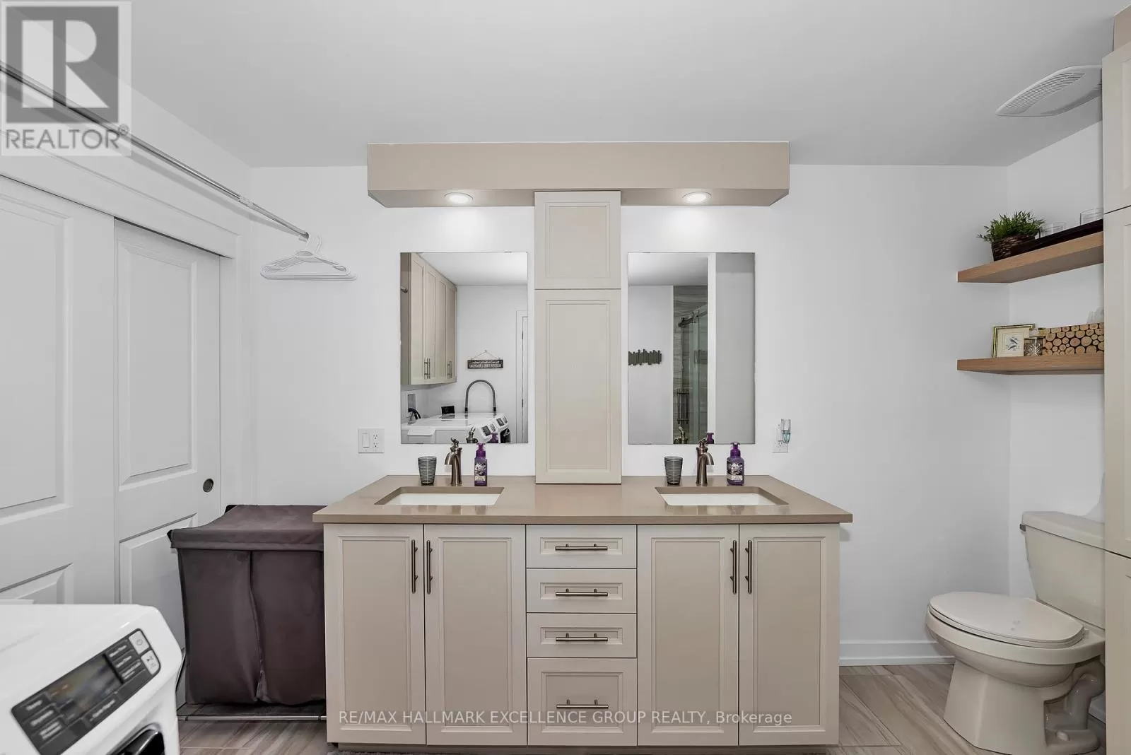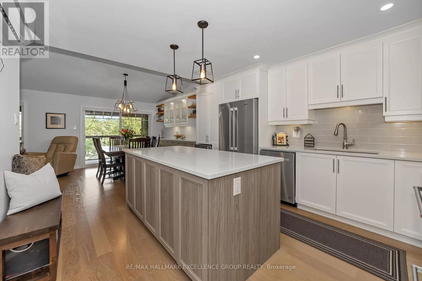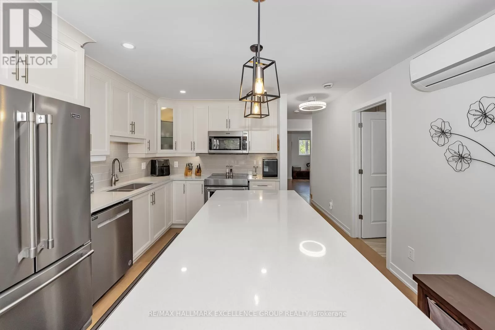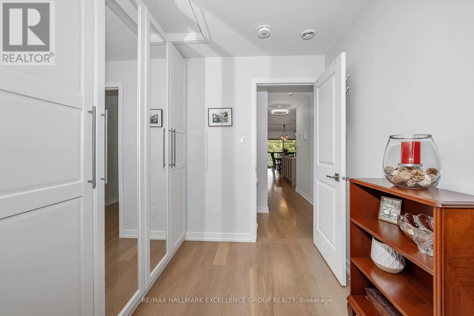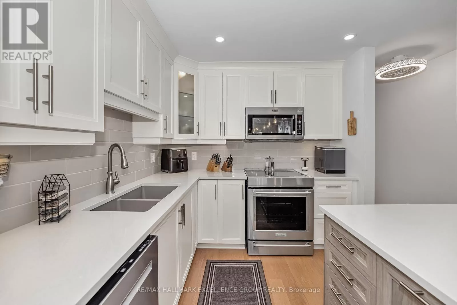 Cross Streets: Laurier and Montee Outaouais. ** Directions: Highway 17 east to Caron, right on Caron, left on Laurier, right on Montee Outaouais. Live where leisure meets luxury at Domaine du Golf, an exclusive community nestled on the prestigious Rockland Golf Club. Overlooking the 1st fairway East from your balcony and the 3rd hole South from your front door, this stunning 2-bedroom condo offers not only a beautiful home but also a vibrant, active lifestyle.Designed for comfort and function, the open-concept living space features efficient and cozy radiant floor heating, premium engineered hardwood floor&porcelain tile over concrete construction for peace and quiet. The kitchen is a true centerpiece with its oversized island with double storage, pantry w/ rolling shelves, full-length built-in buffet ,glass accent doors and elegant undermount lighting. The living rooms electric fireplace adds warmth and charm,while thoughtful touches like automatic closet lighting and scuff proof entry walls reflect the attention to detail.Your private 3-season east-facing balcony is perfect for morning coffee in the sun, with a motorized screen & customizable permanent lighting creating year-round enjoyment. Past 10:30 am, the shade keeps the space comfortable and ideal for relaxing after a round of golf or an afternoon walk while screen can be lowered for clearer view when not needed.The primary suite offers room for a king sized bed while the second bedroom is perfect as a guest room or home office.Pax system can be removed .Additional highlights:six high end appliances, custom TV rack,EV rough-in in the garage, and two parking spaces (interior #7 and exterior #13 ;exterior can be sold separately).Condo fees: $380 + $20 for ext.parking. Domaine du Golf is about more than just a home, its a community with friendly neighbors, endless panoramic fairway views, and access to a 27-hole championship course invite you to embrace an active lifestyle.This unit has been improved with over $75,000 of upgrades, so selling at major loss.This is where sophistication and recreation meet. Welcome Home to golf course living at its finest. (id:27476)