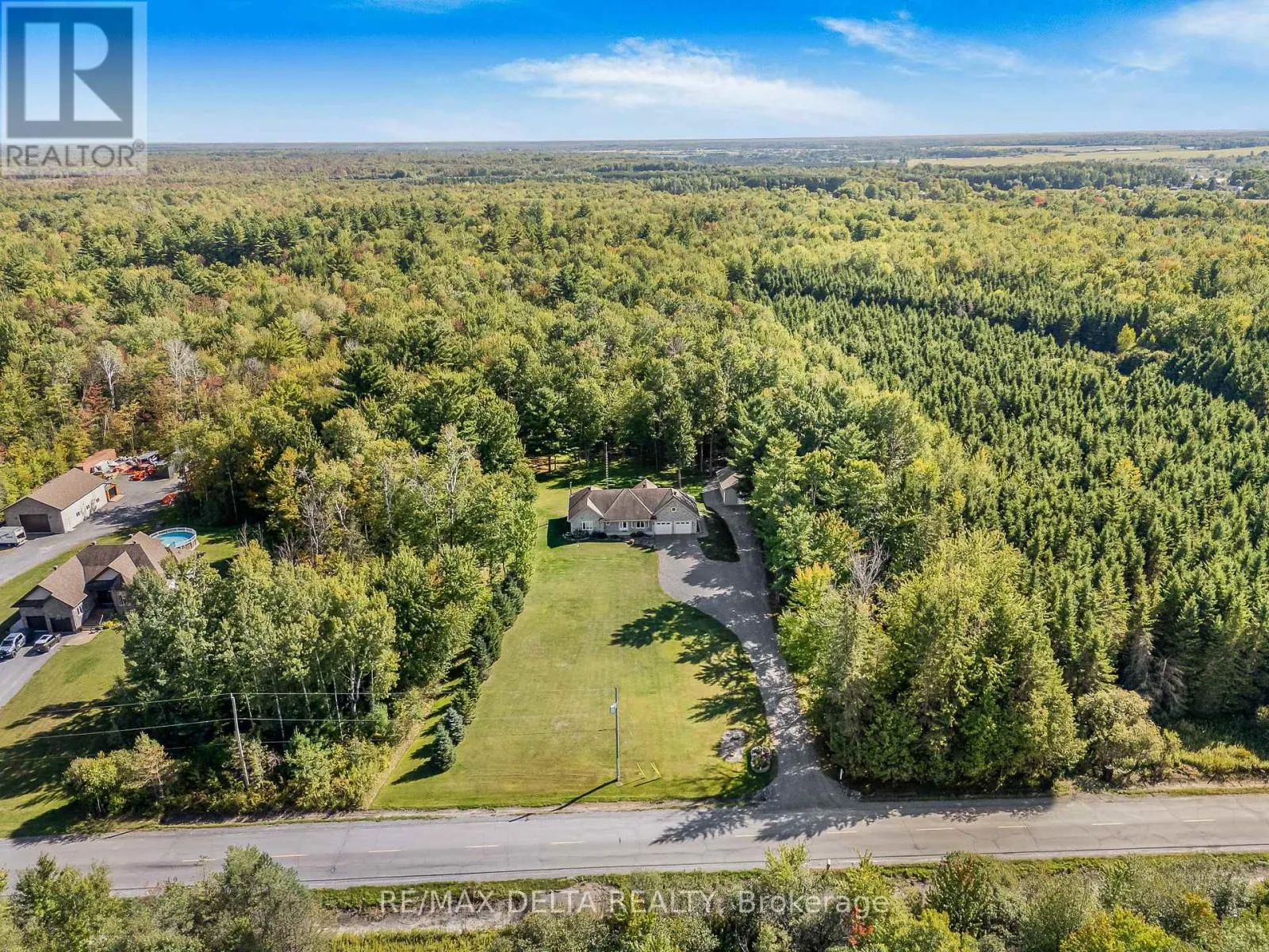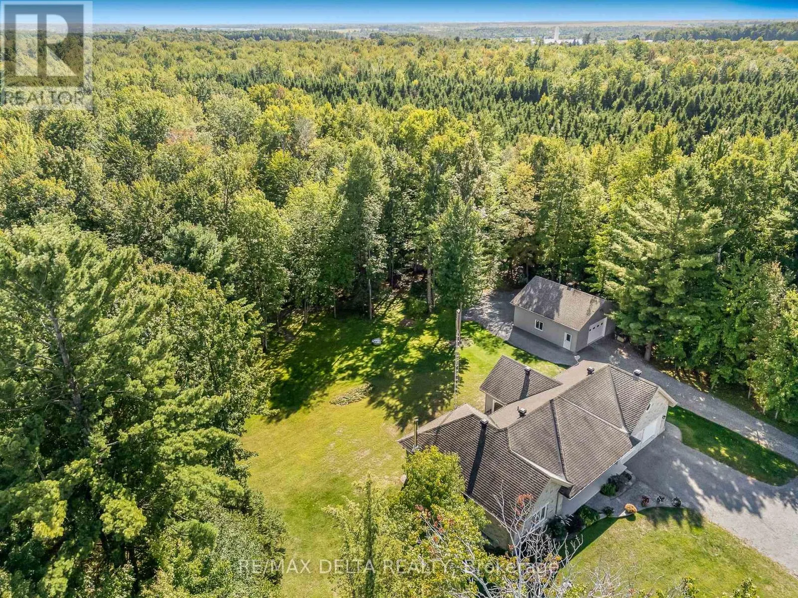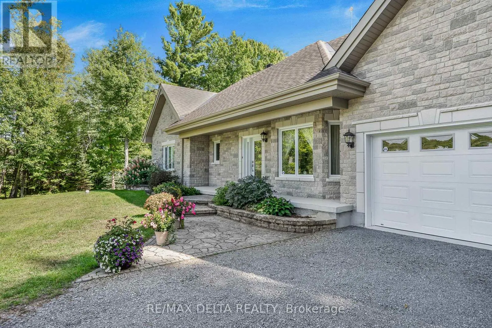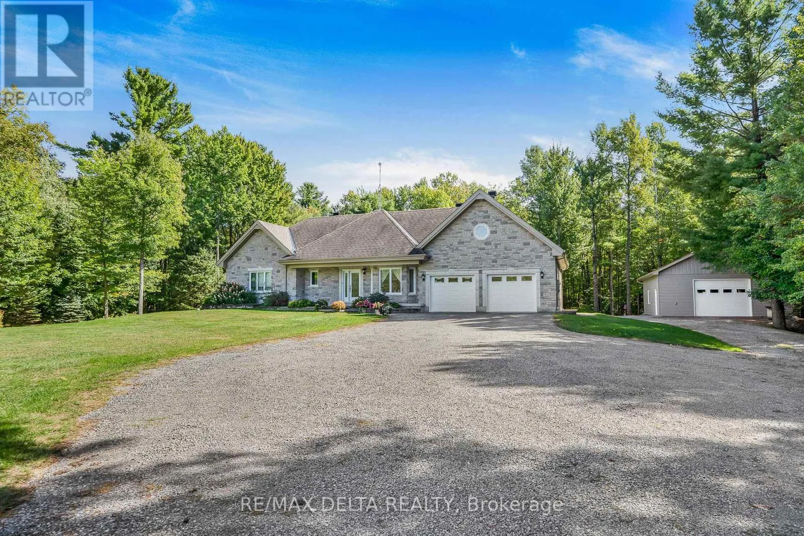 Cross Streets: Vinette Road and. ** Directions: South side of Vinette Road between Joanisse Road and Lacasse Road. Sign on. Welcome to this beautifully designed, spacious custom-built all-stone bungalow set on just over 20 scenic wooded acres in Clarence-Rockland. Built in 2008 and impeccably maintained, this 3-bedroom home blends modern comfort with timeless country charm. Step inside to a spacious foyer leading to a bright kitchen and dining area ideal for everyday living and entertaining. The superb kitchen boasts abundant custom cabinetry and counter space, while the dining area opens into a sun-filled 4-season room, perfect for morning coffee or summer BBQs. The living room, bedrooms, and hallway feature gleaming hardwood floors. The primary bedroom includes a generous walk-in closet and a 3-piece en-suite with a soaker tub, while the main bathroom offers a beautifully finished 4-piece layout with enclosed tub and large vanity. A convenient laundry area completes the main level. Enjoy direct access from the home to the attached double garage. The fully finished lower level provides incredible versatility with a spacious recreation room with wood stove, a playroom, a den, a 2-piece bath, and abundant storage. With stair access to both the garage and backyard, this level offers excellent potential for family living and entertaining. Outdoors, the property features beautiful landscaping, large composite rear decking, a massive heated garage/workshop with plenty of LED lighting, and plenty of trails in the woods offering a peaceful and private retreat. Whether you are dreaming of gardening, outdoor activities, or simply enjoying nature, all of this is just minutes from Rockland's amenities. Bell Fibe internet is available. Don't miss the opportunity to own this exceptional property. Book your private viewing today! (id:27476)