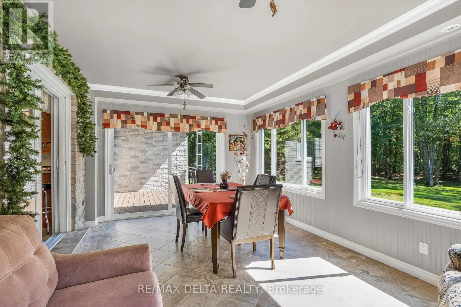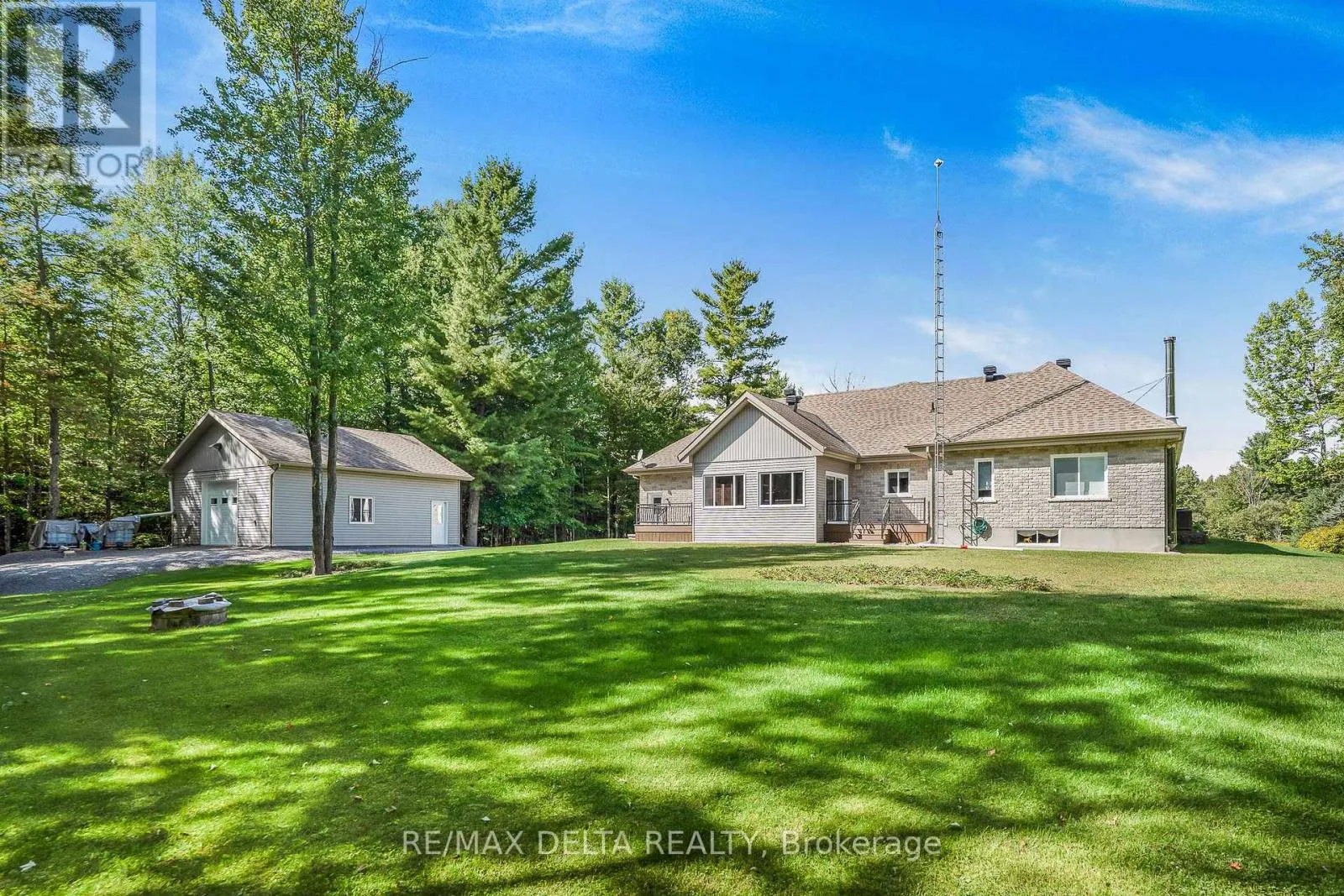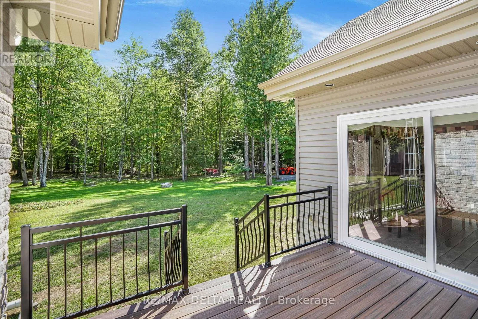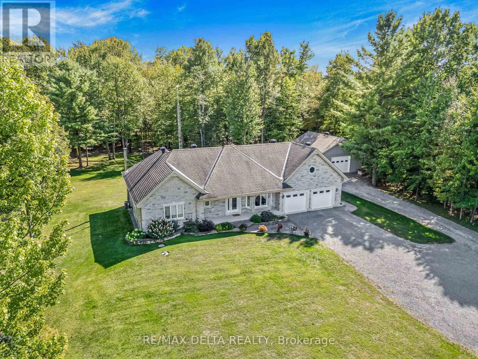 Cross Streets: Vinette Road and. ** Directions: South side of Vinette Road between Joanisse Road and Lacasse Road. Sign on. Welcome to this beautifully designed, spacious custom-built all-stone bungalow set on just over 20 scenic wooded acres in Clarence-Rockland. Built in 2008 and impeccably maintained, this 3-bedroom home blends modern comfort with timeless country charm. Step inside to a spacious foyer leading to a bright kitchen and dining area ideal for everyday living and entertaining. The superb kitchen boasts abundant custom cabinetry and counter space, while the dining area opens into a sun-filled 4-season room, perfect for morning coffee or summer BBQs. The living room, bedrooms, and hallway feature gleaming hardwood floors. The primary bedroom includes a generous walk-in closet and a 3-piece en-suite with a soaker tub, while the main bathroom offers a beautifully finished 4-piece layout with enclosed tub and large vanity. A convenient laundry area completes the main level. Enjoy direct access from the home to the attached double garage. The fully finished lower level provides incredible versatility with a spacious recreation room with wood stove, a playroom, a den, a 2-piece bath, and abundant storage. With stair access to both the garage and backyard, this level offers excellent potential for family living and entertaining. Outdoors, the property features beautiful landscaping, large composite rear decking, a massive heated garage/workshop with plenty of LED lighting, and plenty of trails in the woods offering a peaceful and private retreat. Whether you are dreaming of gardening, outdoor activities, or simply enjoying nature, all of this is just minutes from Rockland's amenities. Bell Fibe internet is available. Don't miss the opportunity to own this exceptional property. Book your private viewing today! (id:27476)