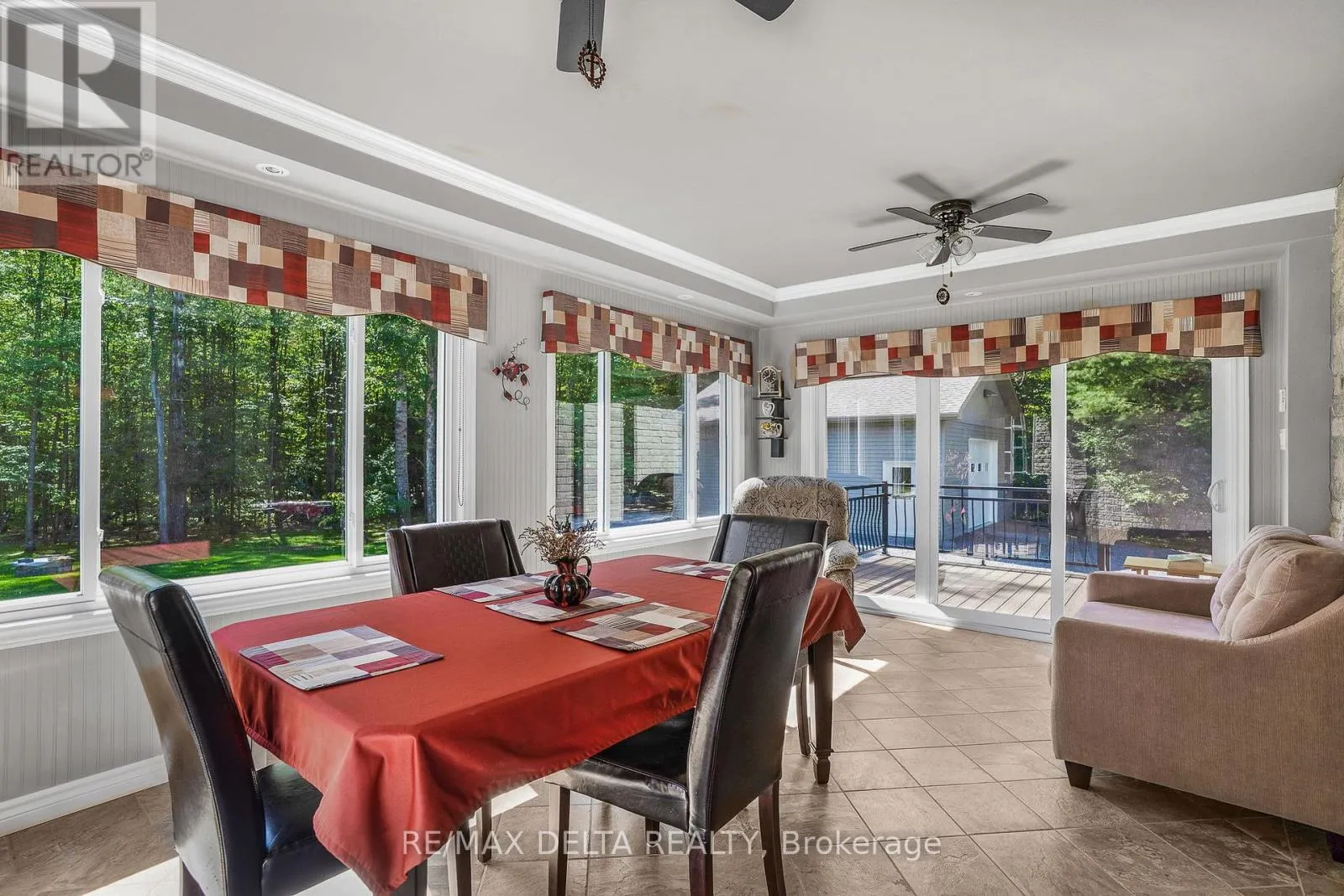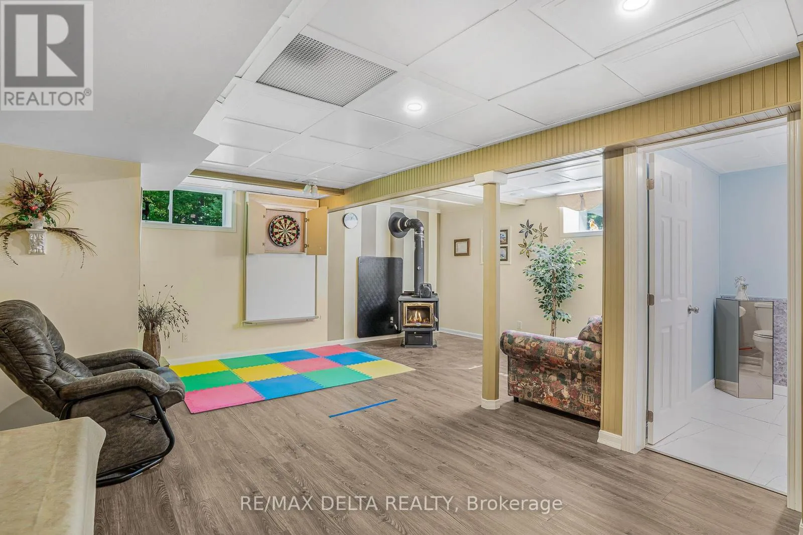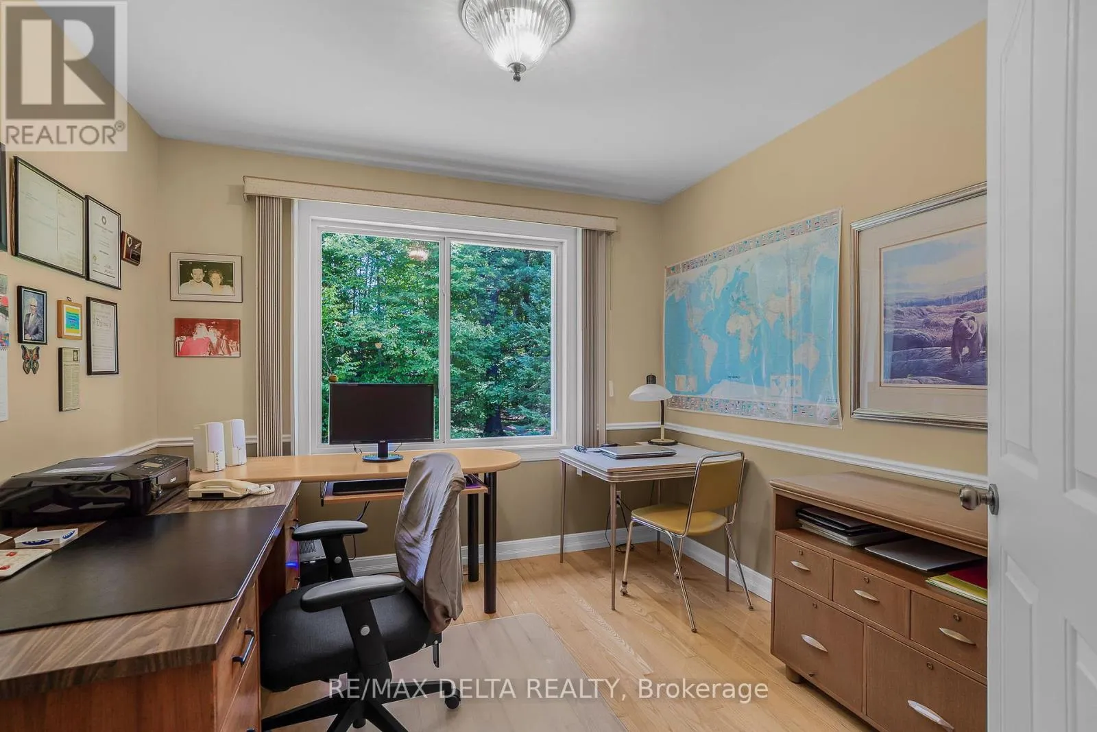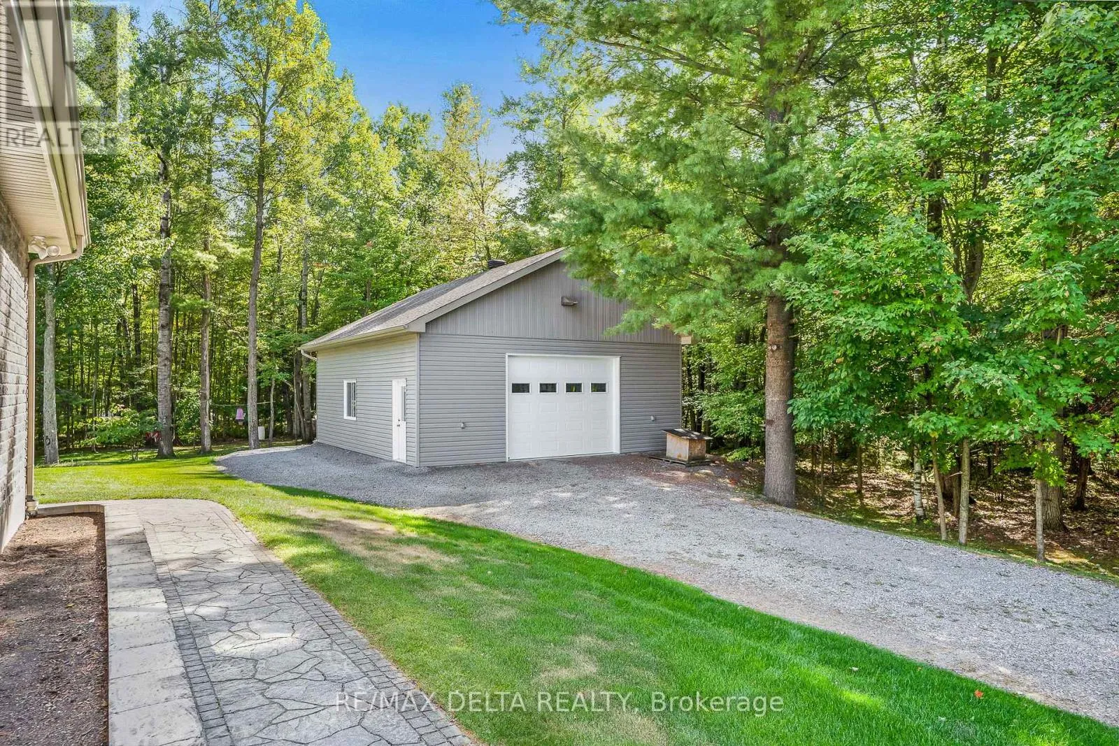 Cross Streets: Vinette Road and. ** Directions: South side of Vinette Road between Joanisse Road and Lacasse Road. Sign on. Welcome to this beautifully designed, spacious custom-built all-stone bungalow set on just over 20 scenic wooded acres in Clarence-Rockland. Built in 2008 and impeccably maintained, this 3-bedroom home blends modern comfort with timeless country charm. Step inside to a spacious foyer leading to a bright kitchen and dining area ideal for everyday living and entertaining. The superb kitchen boasts abundant custom cabinetry and counter space, while the dining area opens into a sun-filled 4-season room, perfect for morning coffee or summer BBQs. The living room, bedrooms, and hallway feature gleaming hardwood floors. The primary bedroom includes a generous walk-in closet and a 3-piece en-suite with a soaker tub, while the main bathroom offers a beautifully finished 4-piece layout with enclosed tub and large vanity. A convenient laundry area completes the main level. Enjoy direct access from the home to the attached double garage. The fully finished lower level provides incredible versatility with a spacious recreation room with wood stove, a playroom, a den, a 2-piece bath, and abundant storage. With stair access to both the garage and backyard, this level offers excellent potential for family living and entertaining. Outdoors, the property features beautiful landscaping, large composite rear decking, a massive heated garage/workshop with plenty of LED lighting, and plenty of trails in the woods offering a peaceful and private retreat. Whether you are dreaming of gardening, outdoor activities, or simply enjoying nature, all of this is just minutes from Rockland's amenities. Bell Fibe internet is available. Don't miss the opportunity to own this exceptional property. Book your private viewing today! (id:27476)