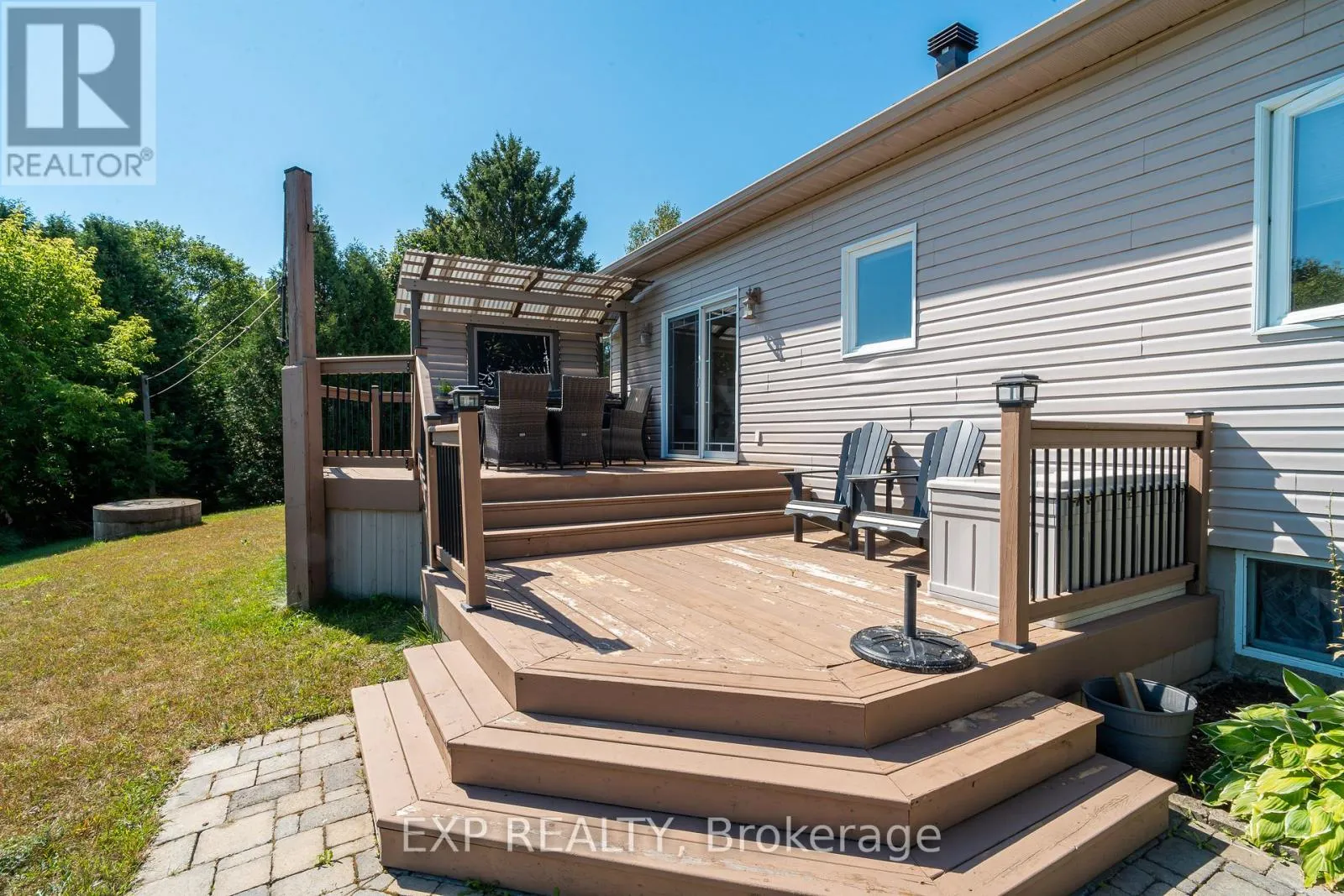 Lacroix Rd to Gendron Rd. Welcome to Hammond Country Living Just Minutes from the City! Nestled in the family-friendly community of Hammond, this charming 3+1 bedroom, 3-bathroom bungalow offers the perfect blend of peaceful country living and city convenience just 15 minutes from Rockland and 30 minutes to Ottawa. Enjoy the privacy of no rear neighbours and a spacious layout designed for modern family life. The main level features beautiful hardwood and ceramic flooring, and an inviting open-concept living, kitchen, and dining area ideal for entertaining or keeping an eye on the kids while you cook. Three generously sized bedrooms are served by a large 5-piece main bathroom and a combined powder room/laundry for added convenience. Downstairs, the fully finished basement provides space for work, relaxation, and play. It boasts a cozy gas fireplace in the large recreation room, a fourth bedroom, and an additional 3-piece bathroom perfect for guests or a growing family. Step outside to your private backyard retreat, complete with a two-tier deck, and plenty of green space perfect for soaking in the outdoors or hosting weekend gatherings. A fully insulated double garage, powered storage shed, municipal water, and natural gas add even more value. Hot water tank is owned. If you're looking for a move-in ready home in a great community with an easy commute to the city you've found it! (41160862) (id:27476)