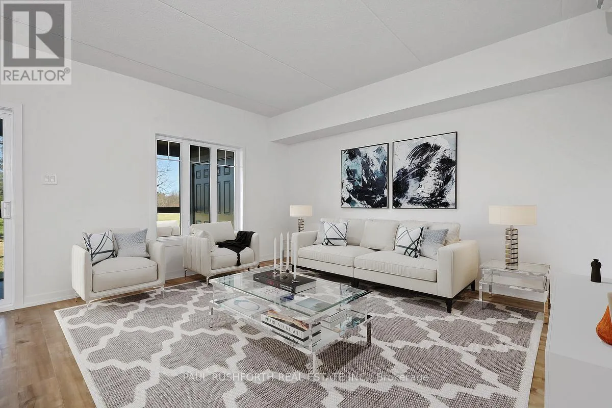 HWY 17 East to Caron, Right on Caron, Left on Laurier, Right on Montee Outaouais. This upcoming 2-bedroom, 1-bathroom (2 Bath option also available.) condominium is a stunning lower level end unit home that provides privacy and is surrounded by amazing views. The modern and luxurious design features high-end finishes with attention to detail throughout the house. You will love the comfort and warmth provided by the radiant heat floors during the colder months. The concrete construction of the house ensures a peaceful and quiet living experience with minimal outside noise. Backing onto the Rockland Golf Course provides a tranquil and picturesque backdrop to your daily life. This home comes with all the modern amenities you could ask for, including in-suite laundry, parking, and ample storage space. The location is prime, in a growing community with easy access to major highways, shopping, dining, and entertainment. Photos are of a similar Le Mulligan Model and have been virtually staged. Buyer to choose upgrades/ finishes. Approx Fall 2026 Occupancy. (id:27476)