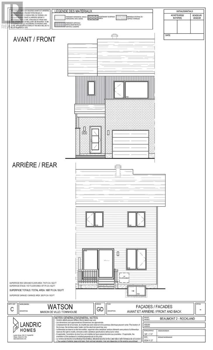 Cross Streets: Docteur Corbeil Blvd. & St Jean St. ** Directions: From Laurier turn onto St-Jean, left onto Docteur Corbeil, left onto Marbel, left onto Gray Cres. **OPEN HOUSE SUNDAY FROM 2 - 4 PM @ 235 BOURDEAU BD, LIMOGES**Welcome to Beaumont, Morris Village - Townhouses! Discover a higher standard of living with these to-be-built luxury townhomes by Landric Homes (aka: the multi-award-winning 'Construction LaVérendrye' in QC). Renowned for high-quality builds, thoughtful designs, and attention to detail - Landric Homes delivers homes that truly stand apart. This end-unit townhome offer an immense 1,687 sq. ft. above ground, tall 9' ceilings, oversized 8' patio doors, concrete block party wall (superior sound proofing), and abundant natural light throughout. The main floor features an open-concept layout with a spacious living / dining area, and a chef-inspired kitchen, complete with walk-in pantry and designer-selected high-end finishes. The 2nd level hosts 3 generous bedrooms, 1 full bathroom (added ensuite optional), and a convenient laundry room. The primary bedroom impresses with an oversized walk-in closet, and cheater access to the luxurious 4-piece bathroom (featuring a standalone bathtub, and glass shower). The unfinished basement awaits your personal touch (fully finished basement optional). Possession dates as early as summer 2026 (all depending on date of signature of the APS, and fulfillment of conditions). Model home tours available in Limoges. Price, specs & details may be subject to change without notice. 3D renderings & photos are of previously built townhouses (exact specs, layout & finishes may differ). Various lots available (ample middle-units & end-units to choose from). (id:27476)