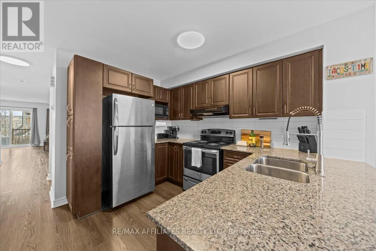 Cross Streets: Rockland. ** Directions: From the 174 East Bound, turn right on Caron Street, Go up the hill and turn right on Docteur Corbeil. The property will be on your right. Beautifully maintained and freshly painted 2-bed, 2.5-bath stacked condo in the desirable Rockland location. The main level features a separate kitchen with quartz countertops, stainless steel appliances, and dark wood cabinetry, along with an updated powder room, new 2025 paint, baseboards, doors, and lighting. The bright living area includes a sliding glass door leading directly to the backyard and two owned parking spots (#79 & #71). The lower level offers two spacious bedrooms with large egress windows, each with its own 4-piece ensuite, plus laundry and storage. Enjoy a private balcony with storage and BBQ space. Steps from schools, groceries, transit, and all of Rockland's amenities - this move-in-ready home is perfect for first-time buyers or down-sizers! Parking 79 & 71 (id:27476)