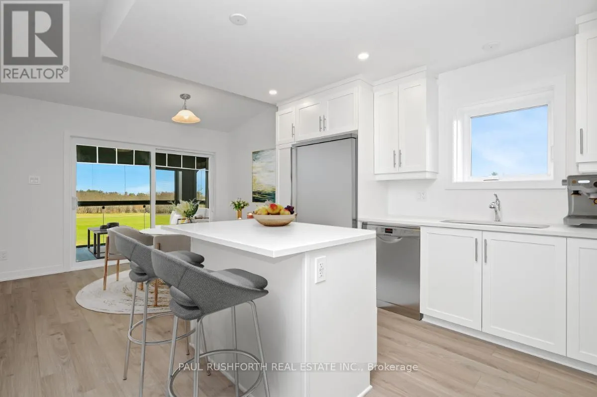 Cross Streets: Laurier/ Montee Outaouais. ** Directions: HWY 17 East to Caron, Right on Caron, Left on Laurier, Right on Montee Outaouais. This upcoming 2-bedroom, 1-bathroom condominium is a stunning upper level end unit home that provides privacy and is surrounded by amazing views. The modern and luxurious design features high-end finishes with attention to detail throughout the house. You will love the comfort and warmth provided by the radiant heat floors during the colder months. The concrete construction of the house ensures a peaceful and quiet living experience with minimal outside noise. Backing onto the Rockland Golf Course provides a tranquil and picturesque backdrop to your daily life. This home comes with all the modern amenities you could ask for, including in-suite laundry, parking, and ample storage space. The location is prime, in a growing community with easy access to major highways, shopping, dining, and entertainment. Photos are virtually staged from a similar Le Caddy Model. Buyer to choose upgrades/ finishes. Occupancy November 2026 approx , Flooring: Ceramic, Laminate. (id:27476)