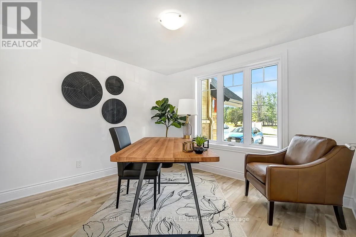 From HWY 174, South on Caron Left on Laurier, Left on Montee Outaouais. This upcoming 2-bedroom, 2-bathroom condominium is a stunning lower level middle unit home that provides privacy and is surrounded by amazing views. The modern and luxurious design features high-end finishes with attention to detail throughout the house. You will love the comfort and warmth provided by the radiant heat floors during the colder months. The concrete construction of the house ensures a peaceful and quiet living experience with minimal outside noise. Backing onto the Rockland Golf Course provides a tranquil and picturesque backdrop to your daily life. This home comes with all the modern amenities you could ask for, including in-suite laundry, parking, and ample storage space. The location is prime, in a growing community with easy access to major highways, shopping, dining, and entertainment. Photos have been virtually staged., Flooring: Ceramic, Laminate (id:27476)
