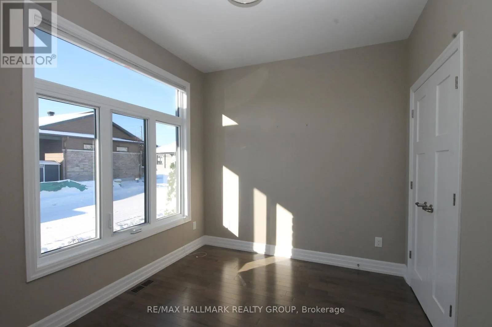Cross Streets: Docteur Corbeil. ** Directions: St Jean to Docteur Corbeil to Sterling to Solara. Welcome to the bungalow lifestyle in the heart of Rockland. End unit, open concept living with modern finishes and hardwood floors, chef inspired kitchen with quartz countertops, and island breakfast bar. The spacious sun-filled living and dining rooms features vaulted ceilings and picture window. The primary suite offers stylish 4 piece ensuite and walk in closet. The second bedroom, full bath and conveniently located laundry complete the main. The large, unfinished basement awaits your personal touches with a high ceiling and a rough-in for future bathroom. Association fees are $150/month for grass cutting front/back, snow removal including driveway, street lights and liability insurance. Offers considered as of Dec 31. Property being sold by estate trustee and has not lived there, therefore sold AS IS. 5 full and clear bus days irrevocable required if offer submitted before 1PM; 6 full and clear bus days irrevocable if offer submitted after 1PM. (id:27476)