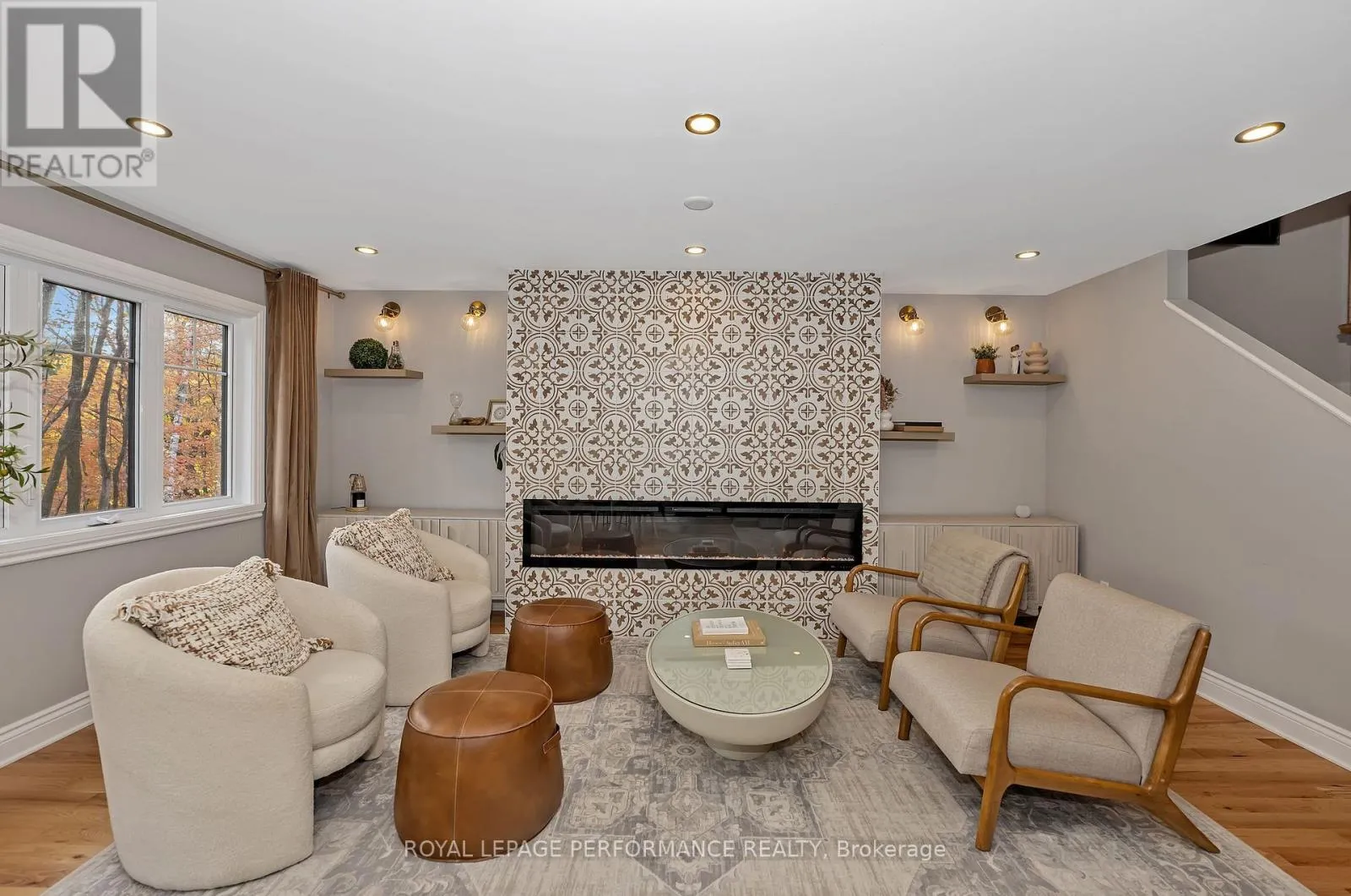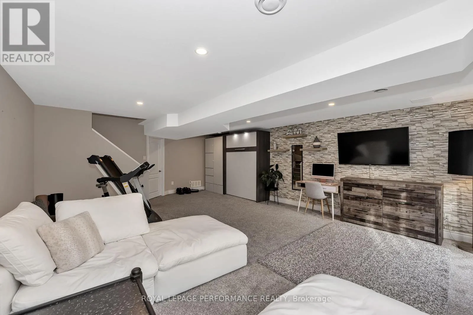 Cross Streets: Monique Street. ** Directions: From Hwy 17. Turn on Caron Street, left on Monique Street, and left on Dion Avenue. Backing onto the Rockland Golf Course and on cul-de-sac! Welcome to 129 Dion Avenue - a modern, 2023-built townhome in Rockland. No association fee. This spacious 3-bedroom, 2.5-bath home is move-in ready and perfect for growing families.The open-concept main floor features a bright and airy layout, where the kitchen seamlessly flows into the dining and living areas. Highlights include an accent wall with built-ins, an electric fireplace, and beautiful views of the wooded area and golf course. You'll find smooth ceilings throughout, pristine hardwood floors, and ceramic tile throughout the main level.The kitchen offers elegant cabinetry, granite countertops, a sleek backsplash, an island, and all stainless steel appliances included. A powder room and inside entry to the garage complete this level. Upstairs, the spacious primary suite features a 3-piece ensuite and a walk-in closet. Two additional bedrooms share a family bathroom with a tub/shower combo. The walk-out basement includes a large rec room, a utility/laundry room, and a rough-in for a future bathroom. Private, fully fenced-in backyard with deck and no rear neighbours. Located in a family-friendly neighbourhood close to parks, schools, and with easy access to Highway 17, this home offers a wonderful lifestyle in a growing community. Owned furnace and AC. (id:27476)