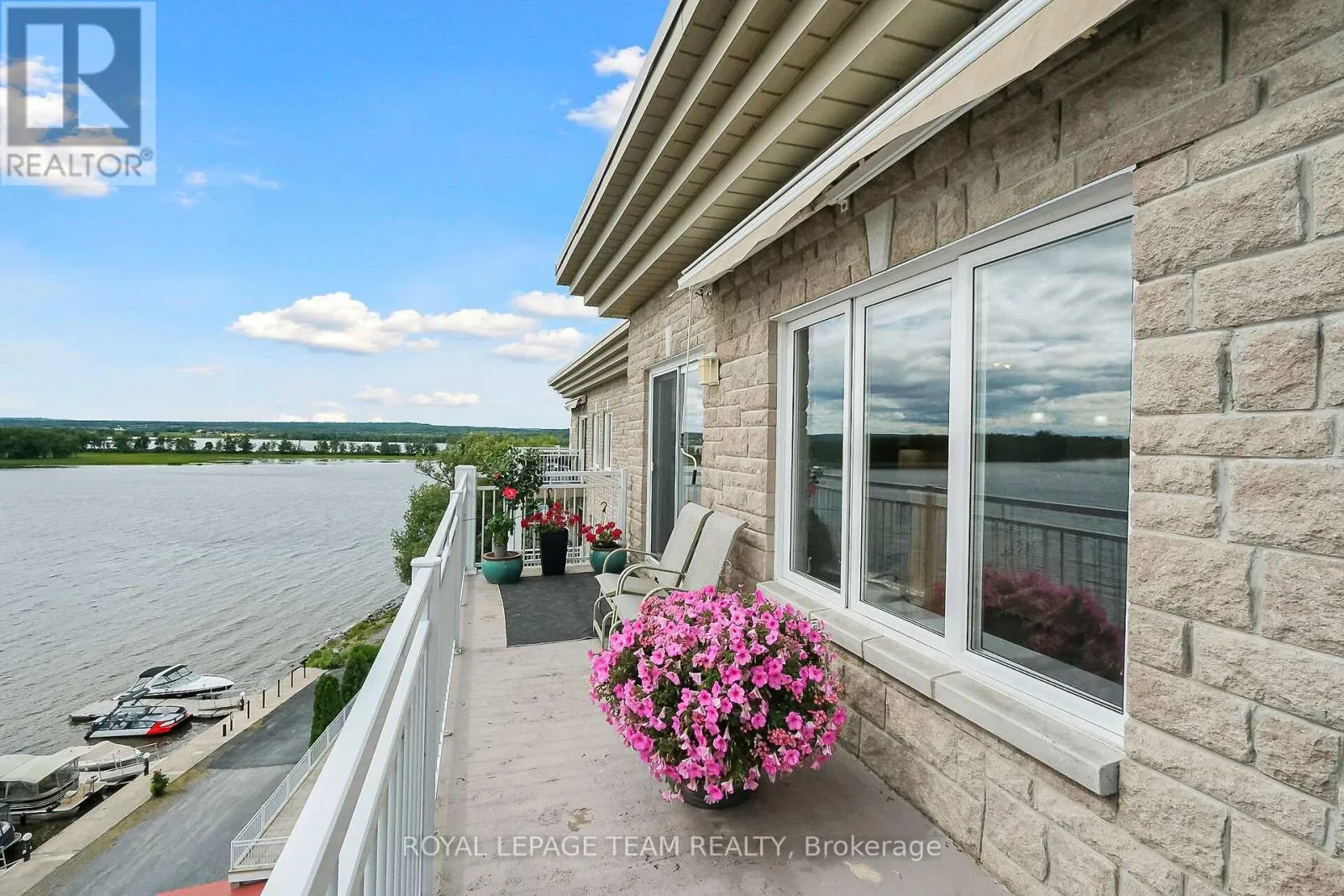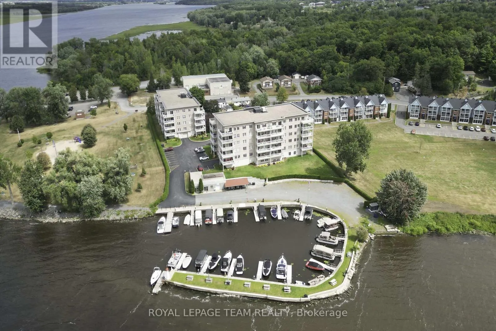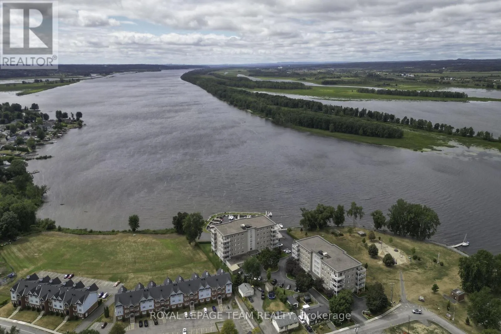 TAKE HWY 174 TO EDWARDS STREET TURN ON MR GAS SIDE (NORTH) TO THE END OF STREET, PROPERTY WILL BE ON LEFT SIDE, 2ND BUILDING CLOSER TO RIVER. We are delighted to present this rarely offered, beautiful, bright, and spacious penthouse suite located at 136 Edwards Street. This stunning luxury marina condominium is perfectly positioned on the waterfront, offering breathtaking panoramic views of the Ottawa River and the surrounding mountains. Flooded with natural light, this exceptional residence provides a refreshing departure from typical condo layouts. The expansive living and dining area is ideal for entertaining, featuring large windows and patio doors that open onto a generous balcony-perfect for taking in the spectacular river and mountain vistas. The beautifully designed kitchen is equipped with designer cabinetry and offers an efficient, gourmet-friendly layout. Throughout the suite, a tasteful combination of hardwood, ceramic, and carpet flooring adds warmth and comfort. The well-appointed floor plan includes a large primary bedroom, a versatile den that can easily serve as a home office or guest bedroom, and two washrooms: a spacious 4-piece main bath and a convenient 2-piece powder room shared with the in-suite laundry area. Meticulously maintained and move-in ready, this unit also includes one underground parking space with a locker, as well as an additional exterior parking space. Residents enjoy access to excellent shared amenities, including a large community room with kitchenette, hobby and reading areas, and an exercise space. A beautiful park and scenic walking trail further enhance this exceptional waterfront lifestyle. Truly a must-see property. (id:27476)