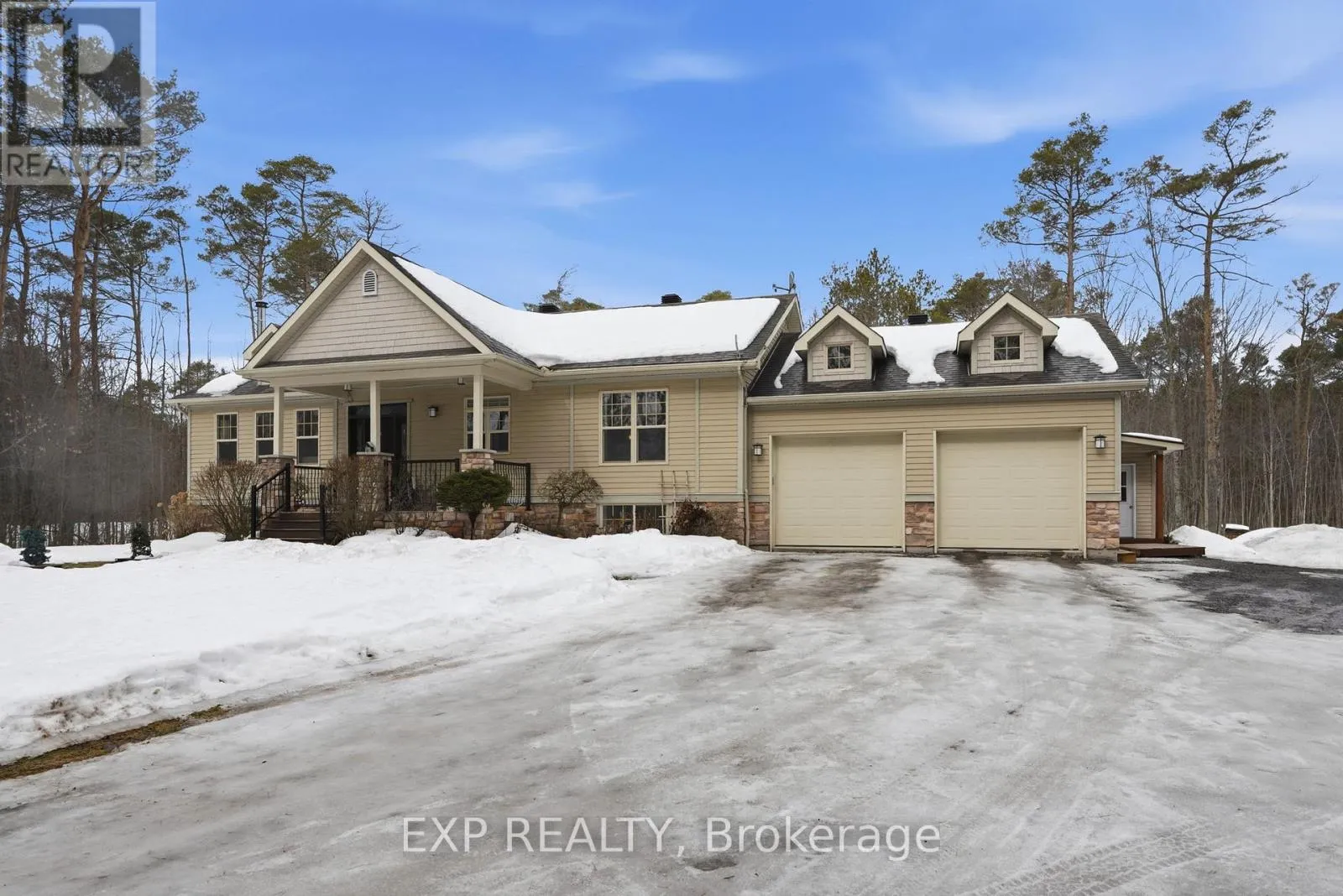 Cross Streets: vinette & Joanisse. ** Directions: Highway 17, south on Canaan Road at light. Left on Baseline Road, right on Joanisse, left on Vinette, property will be on your left. Absolutely stunning custom built bungalow on almost 6 wooded acres Featuring a in-law bachelor suite. Quality finishes throughout. open concept main floor with exposed beams and matching trim, stone fireplace in living room, Gourmet kitchen with granite. dining room with patio doors to rear 2 tier deck overlooking the pond/skating rink for year round enjoyment. Many windows to encourage lots of natural sunlight into the home. Spacious master bedroom with walk-in & open ensuite bath. 2nd bedroom with murphy bed. Serene & spa like main bathroom with modern stand alone tub, double sinks and large shower. The impressive finishes don't end there! The fully finished basement offers a family room with bar area showcasing coffered ceilings, a wine cellar, cozy gas stove and 3 pc bathroom! You will also find 2 more bedrooms, a full laundry room & storage area with access up to the double heated oversized garage. in law suite with separate entrance and functional layout. Back up generator in case of power outages. Fantastic location & neighbors. Get ready to fall in love with this gem of a home! (id:27476)