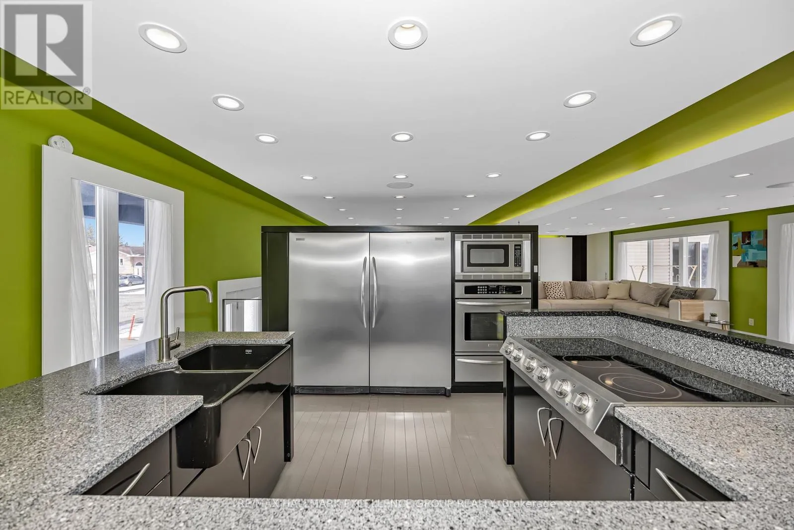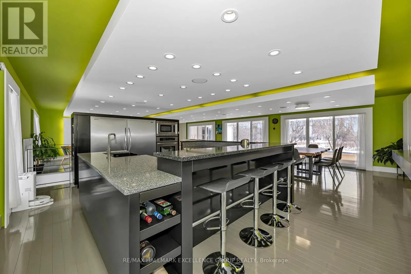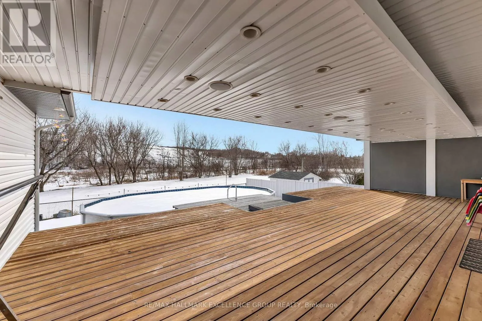 Cross Streets: Heritage Drive and St Jacques Street. ** Directions: From Highway 174 take the Laporte Street exit, turn left onto Laurier Street, right on Heritage Drive and left onto St. Jacques Street. Beautifully private and custom renovated, this exceptional 4-bedroom, 2-bathroom raised bungalow is tucked into a quiet Rockland enclave where comfort, craftsmanship and lifestyle come together seamlessly. Meticulously maintained and thoughtfully redesigned, this stunning home offers timeless curb appeal, premium finishes and an inviting open-concept layout ideal for everyday living and entertaining.The main floor was completely reimagined and now showcases a spectacular Louis L'Artisan kitchen featuring granite counters, bar seating, custom cabinetry and commercial-grade stainless steel appliances. Chic designer hardwood flooring, dramatic tray ceilings and hidden ambient lighting built into walls and coffers elevate the space, while the expansive living and dining areas are filled with natural light from three 9' foot patio doors. The result is a bright, elegant and highly functional main level that flows beautifully outdoors.The spacious primary bedroom offers a peaceful retreat with ensuite bath and direct patio door access to the back deck. Downstairs, the finished lower level provides remarkable flexibility with 3 additional bedrooms, a generous rec room, a large combined laundry/4-pce bath, plus plenty of storage for busy family living.Step outside and discover an incredible backyard oasis designed for privacy and enjoyment. The massive partially covered deck is enhanced with built-in pot lights and surround sound, overlooking the above-ground pool, PVC fencing and beautifully landscaped grounds. With no rear neighbours and yard space long enjoyed beyond the fenced area, this is a true nature lover's dream in a central location. Built with quality and efficiency in mind, this home also features Low-E vinyl windows, central A/C, air exchanger and architectural shingles . Parking for 4 and walking distance to schools, shopping and amenities complete the package. 200 Amp service.Quick closing available but flexible. 24 hour irrevocable on all offers (id:27476)