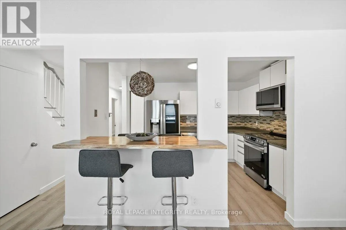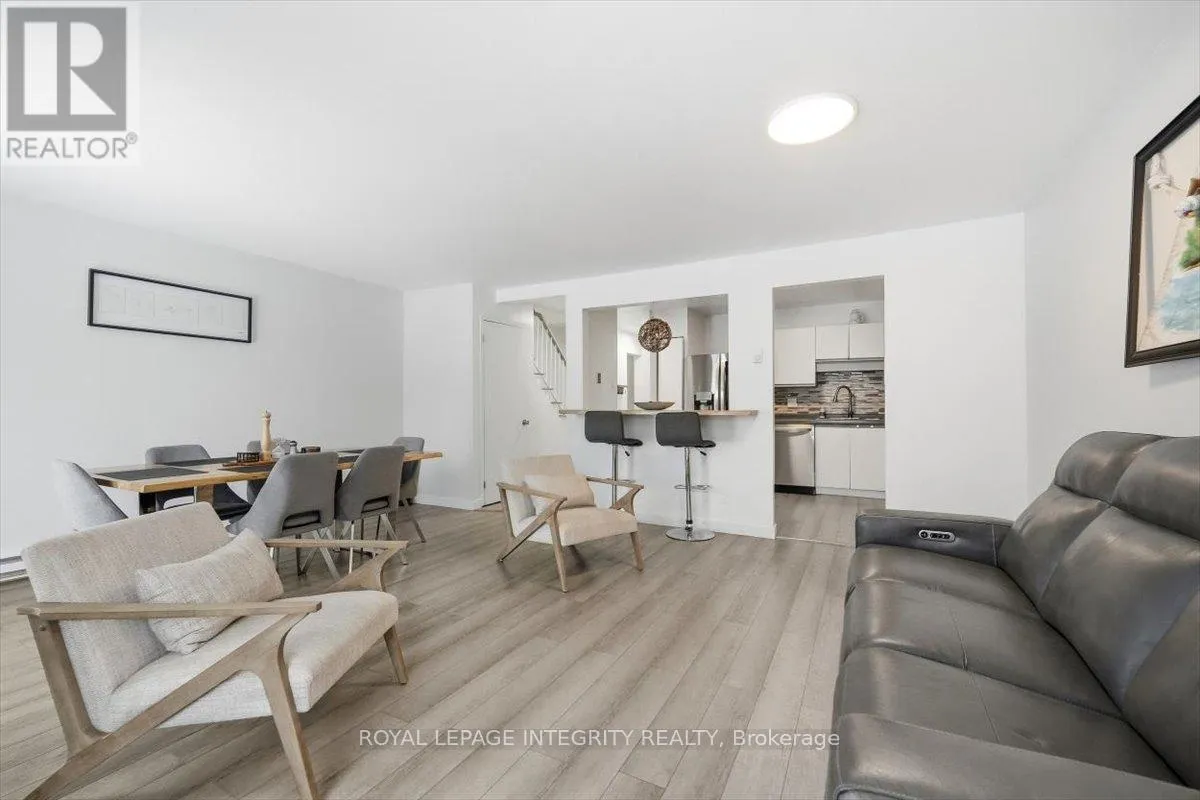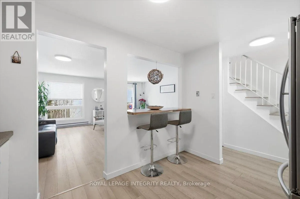 Cross Streets: Woods/Edwards. ** Directions: Hwy 174 east, left on Edwards Street, left on Woods. Property on the left. Sign on. Welcome to 1985 Woods Street in the friendly town of Rockland! This beautifully updated 2-storey townhome condo with single-car garage offers 3 bedrooms and 1.5 bathrooms in a bright, functional layout. The welcoming foyer features tile flooring with convenient access to the updated powder room and garage, leading into the open-concept main floor showcasing new laminate flooring, a spacious living and dining area, and an abundance of natural light from the large window and patio door with direct access to the backyard. The well-designed kitchen is perfect for everyday living, offering ample cabinet and counter space, newer appliances, and a convenient breakfast bar. Upstairs, the generous primary bedroom features two closets and a cheater door to the full bathroom, complemented by two well-sized secondary bedrooms. The finished lower level provides additional living space with a versatile family room, a sizeable storage area, and a dedicated laundry room. Ideally located for outdoor enthusiasts, just steps to the Ottawa River, Parc du Moulin Marina, and within walking distance to grocery stores, restaurants, coffee shops, schools, and other everyday amenities, with easy access to Highway 174 for a smooth commute. A great opportunity you won't want to miss! (id:27476)