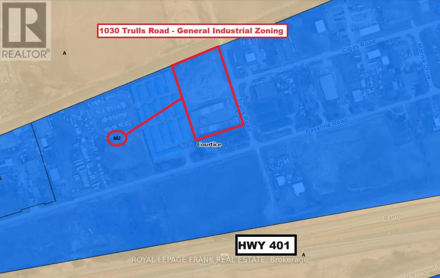 Trulls Road / Baseline Road Four acres, clean yarded & fenced M2 outside storage land over 530 feet of frontage, 2 existing entrances, with municipal services at the road. Approx. $5,000 per month income from existing Tenants with much more upside available. This site is ideal for user build out or redevelopment for industrial condos - up to 60% coverage ratio! Future GO station & MTSA location - close to Hwy 401 exit & Hwy 418 connector route to HWY 407 allows for easy shipping. This is a high growth & development area. Clean ENV available for review. **EXTRAS** Ideal for large industrial building or industrial condos. Next to Clarington Energy Park, OPG, Darlington Nuclear Small Modular Nuclear Project and more. Thousands of job opportunities. (id:27476)