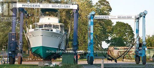 Cross Streets: East Shore Drive & Port Darlington Road. ** Directions: Liberty Street South of Hwy 401 to Lake Road, go east to East Shore Drive, turn south onto Port Darlington Road.... property entrance to is the driveway immediately south of residential townhomes located at 120 Port Darlington Road. 6.699 acres with more than 1,000 feet shoreline frontage on Lake Ontario & Port Darlington sheltered inner harbour, includes the only waterway channel to Lake Ontario from Port Darlington Harbour. More than 500 feet of boat dockage. Major built-in boat launch designed to handle boats weighing up to 50 Tons. On March 4, 1837 ownership of these lands was granted by King William IV in a Royal Charter to the Port Darlington Harbour Company. Subject property is leased to Seller's associated company. Two small residential cottages on property "as is" condition. Sale of this property must be conditional upon sale of the Seller's neighbouring property located at 125 Port Darlington Road. See neighbouring property details MLS# E12187220. NOTE: Two Marine Travel Lifts, each w/capacity up to 100,000 lbs., available for sale separate from sale of this property. See photos of Marine Travel Lifts. See Attachments for Schedule containing Legal Description, and 7-GeoWarehouse aerial view reports of the 7-PINS which total 6.699 acres. (id:27476)