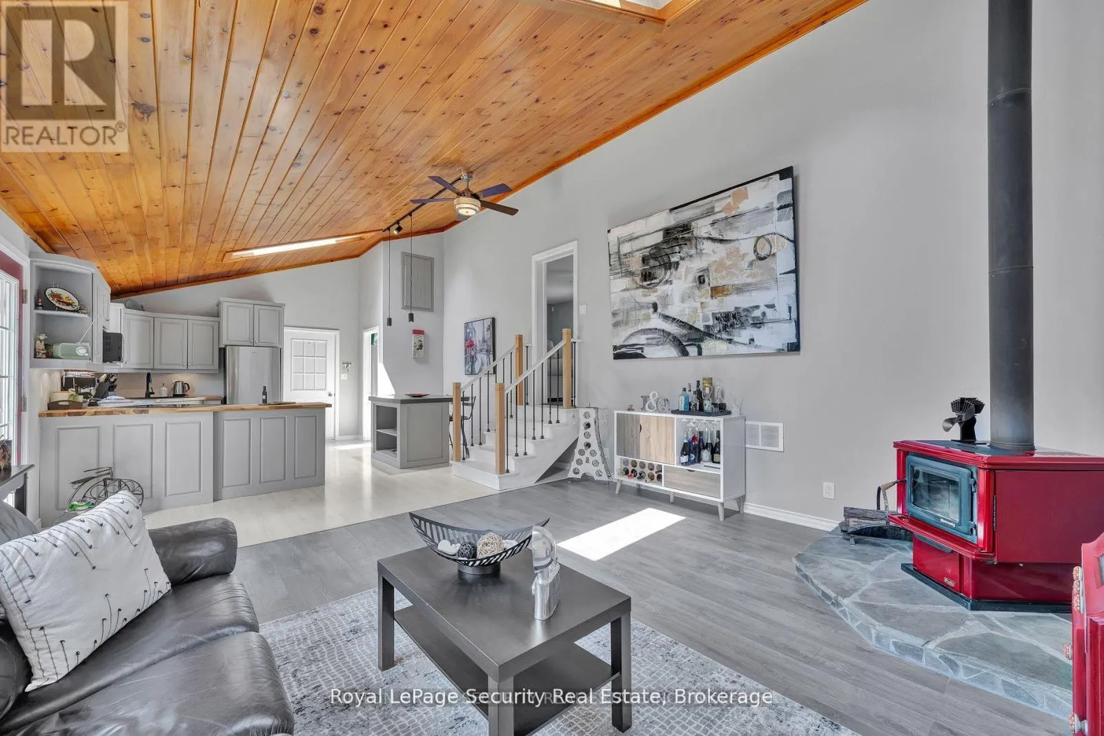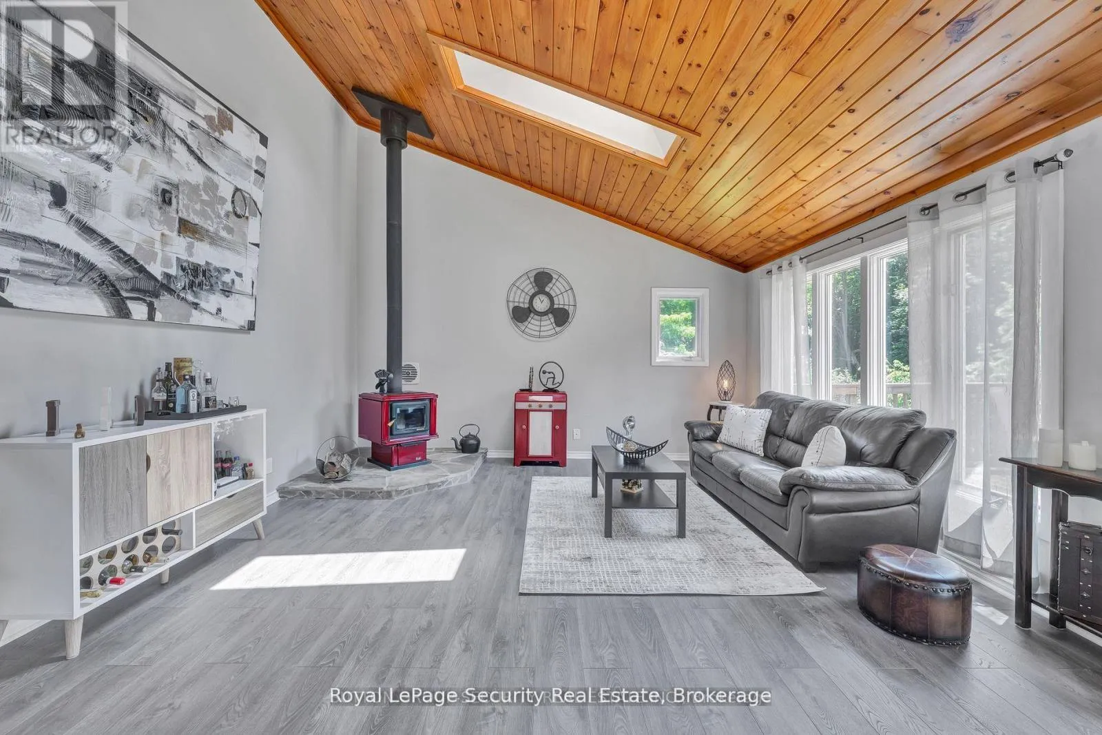 Old Scugog / Jackman Road Truly One-of-a-Kind! 2 Homes in 1 Endless Possibilities! Welcome to this exceptional home nestled in nature on a premium 110.75 x 245.75 feet lot in a prestigious neighborhood. Set back from the road with a newly paved driveway for 10+ cars. This property offers privacy, tranquility, and stunning views of a meandering stream bordered by mature trees. The main home features a unique, light-filled layout with a gourmet kitchen and family room under a soaring pine cathedral ceiling with skylight and cozy woodstove. The eat-in kitchen includes a breakfast bar and walkout to a large front deck...ideal for entertaining. The upper level boasts an open-concept living/dining area with walkout to the backyard. The primary bedroom features two skylights and a private deck overlooking a meandering stream. The second bedroom is perfect as an office, and the third offers a semi-ensuite, double closet, and walkout to the backyard. The total amount of rooms and total square feet of 2640 includes the 700 square feet include the new Loft. Bonus: A brand-new 700 sq ft loft (2024) sits above the brand-new double-car garage with separate entrance, laundry, and utilities perfect for in-laws, guests, or potential rental income. With two decks, neutral finishes, and nature at your doorstep, this home offers the ultimate lifestyle retreat. (id:27476)