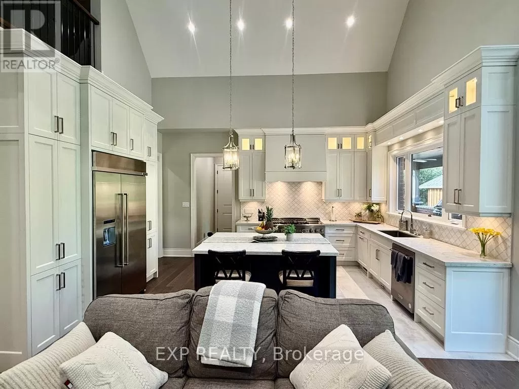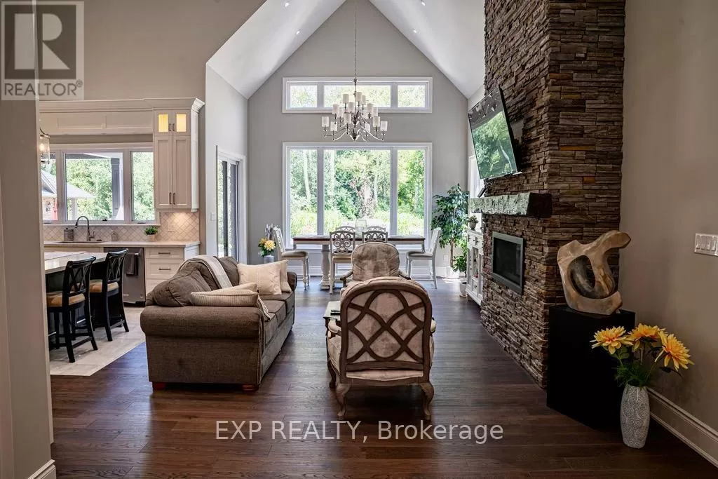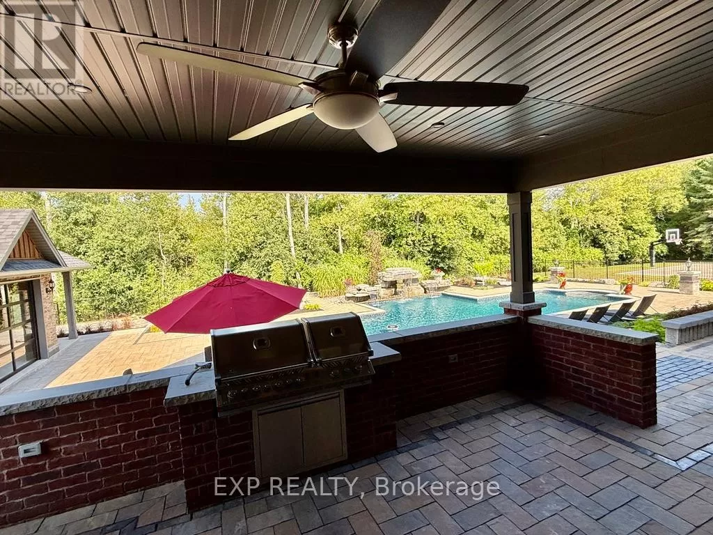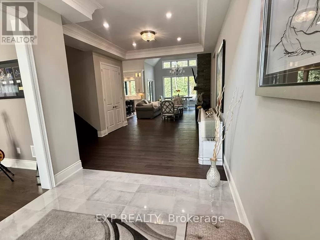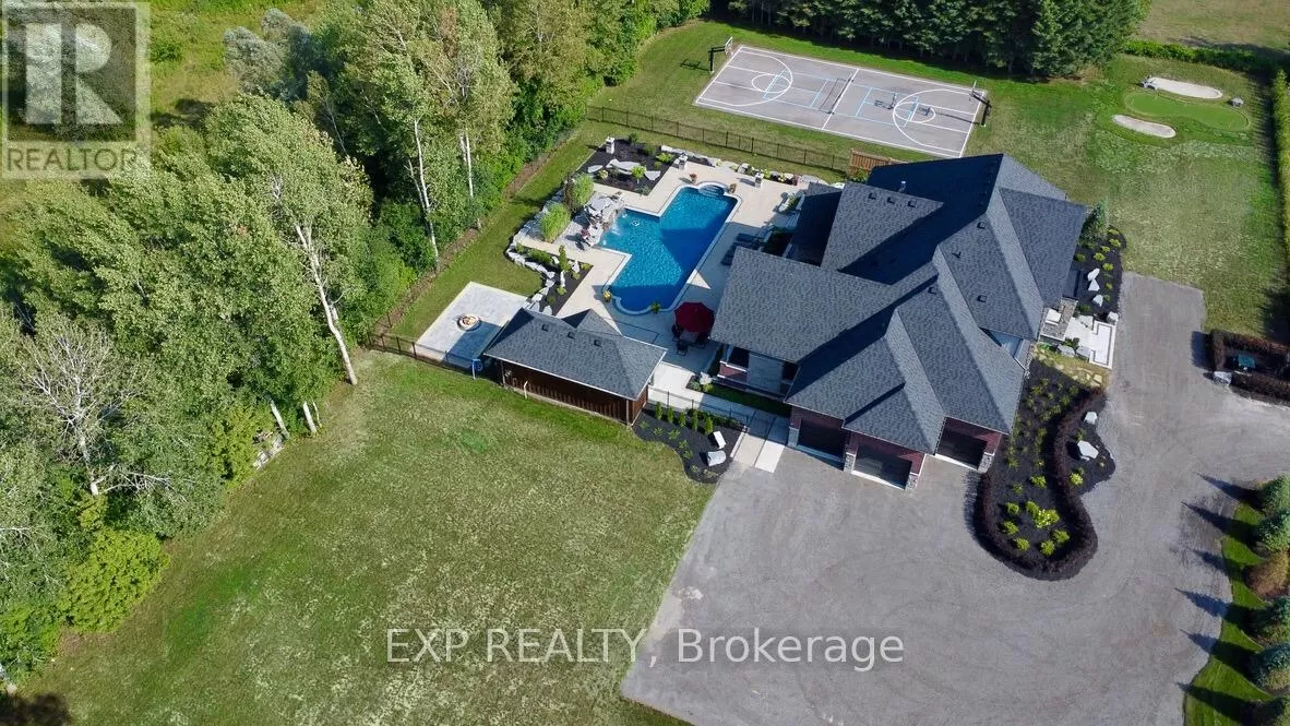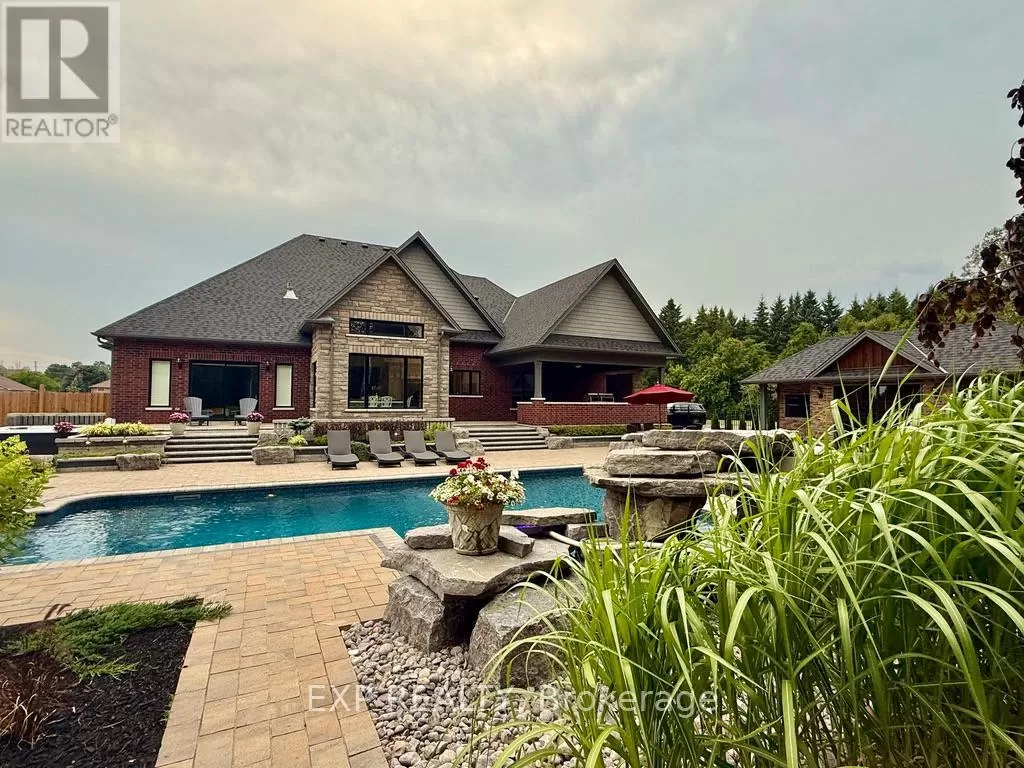 Cross Streets: Pebblestone Rd, Townline Road South. ** Directions: 401 to Harmony rd North. East on Hwy 2 until you hit Townline, go north to the address. Welcome to an extraordinary estate where luxury, comfort, and convenience effortlessly converge. Nestled privately behind two custom homes on a sprawling 1.77-acre lot, this exceptional residence is an entertainer's paradise, thoughtfully designed with impeccable craftsmanship and timeless elegance. At the heart of this home lies an extraordinary gourmet kitchen featuring custom cabinetry and an expansive double butler's pantry with a secondary back kitchen. Each bedroom serves as a luxurious private retreat with spa-inspired ensuite bathrooms. The primary suite redefines opulence with a custom-designed five-piece ensuite and a dressing room spacious enough to serve as an additional bedroom. This suite also offers seamless walk-out access to a professionally landscaped backyard oasis. Soaring ceilings are complemented by plaster crown moulding, exquisite millwork, and built-in speakers. A thoughtfully designed open-concept layout seamlessly connects the family room, main-floor bedroom, and a combined mud and laundry room with garage access, enhancing everyday living. The finished basement epitomizes high-end leisure and entertainment, featuring a full-size bar, gym, stereo surround sound, and five TVs, including a 120-inch home theatre screen and an inviting fireplace. Step outside to your private resort's meticulously landscaped yard, enveloped by lush, low-maintenance gardens and frequented by nature, including occasional deer sightings. Enjoy endless relaxation and entertainment with a custom pool, waterfall, hot tub, covered patio with dual built-in grills, and a change room. Also included: your very own 100-foot golf hole, full-size basketball court, and pickleball court, transforming every moment into a five-star experience. This distinguished property offers a rare opportunity to own a home designed for the most discerning homeowner, providing unparalleled luxury and an idyllic retreat in an exclusive, serene setting. (id:27476)