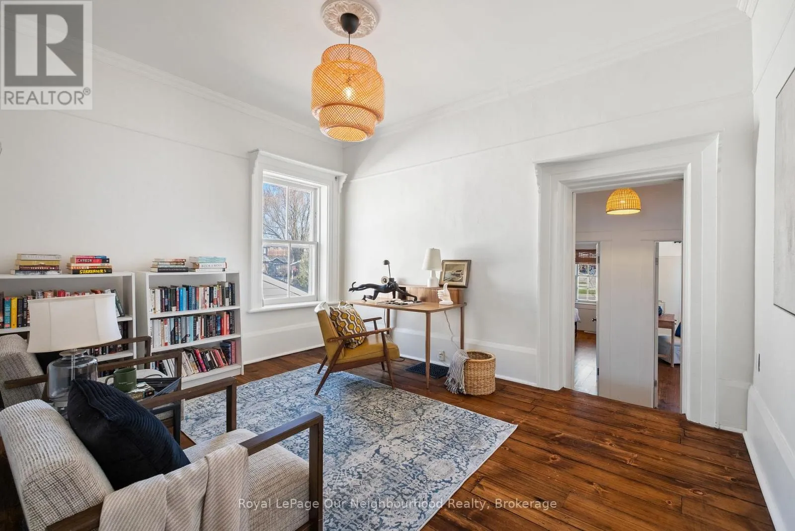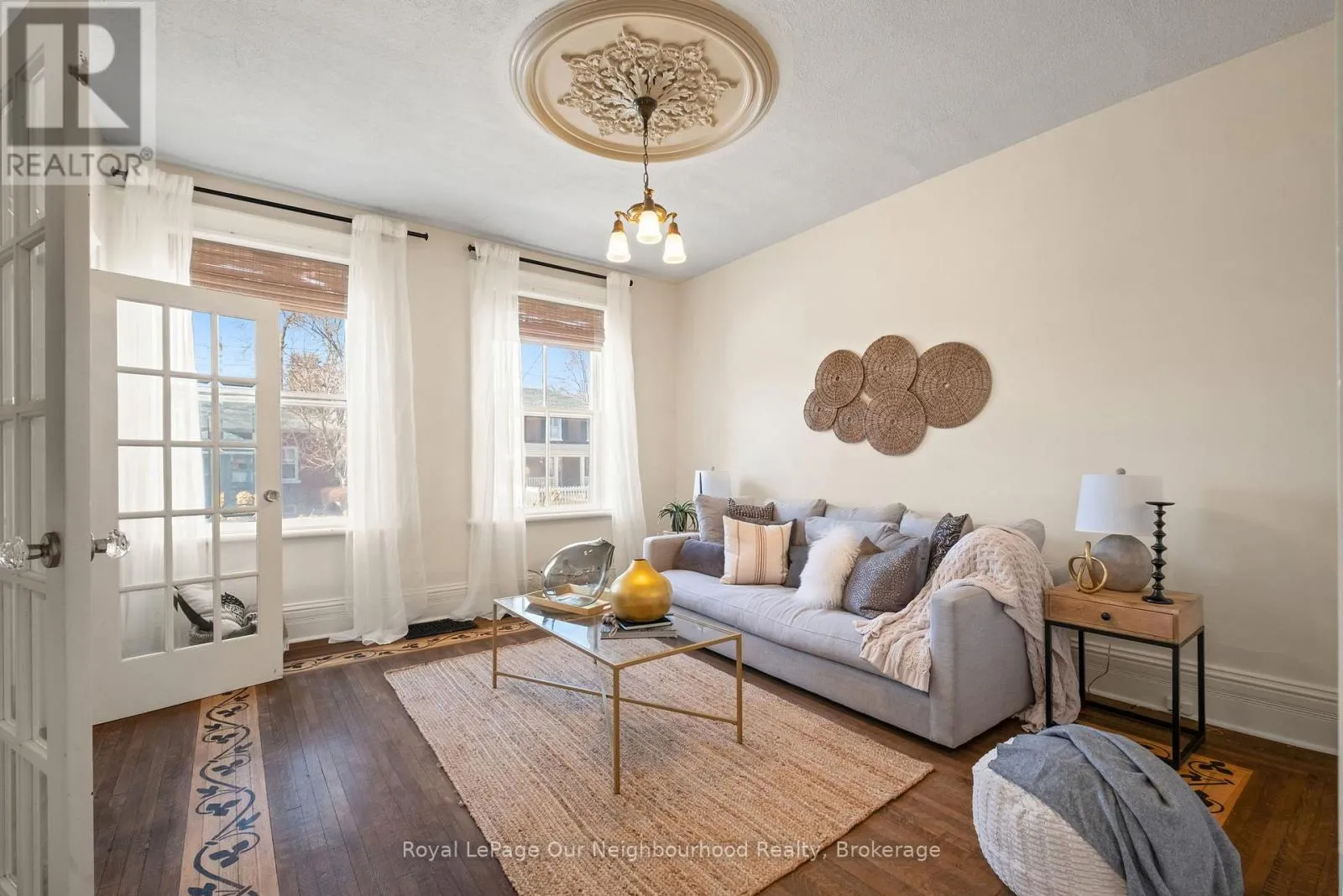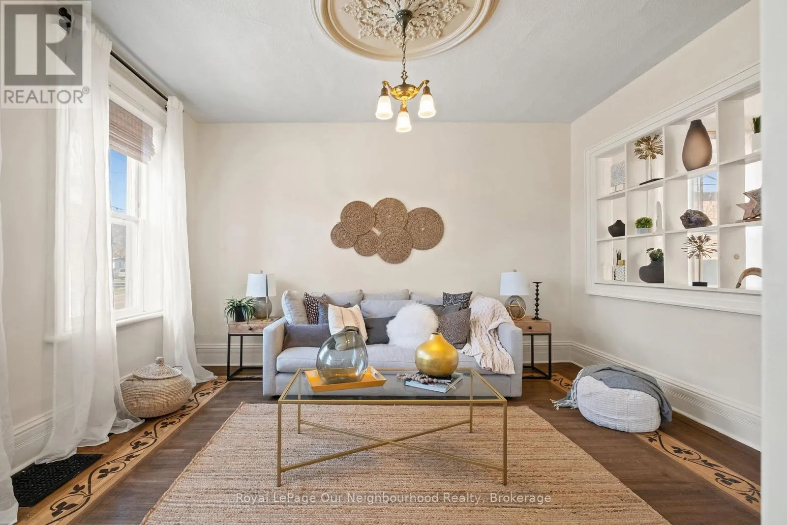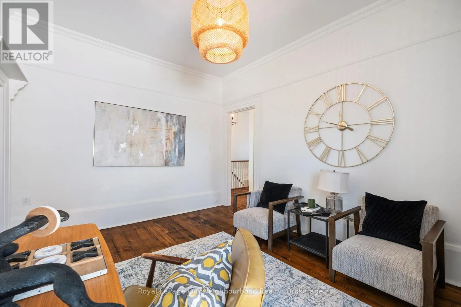 Cross Streets: Queen /Ontario. ** Directions: Liberty to Ontario. Exquisitely updated, this exceptional residence seamlessly blends historic sophistication with modern conveniences. Ideally located within walking distance to schools, hospital and downtown Bmvlle, this elegantly restored family home features original character elements such as stained glass & transom windows, high ceilings, tall baseboards, detailed moldings, original hardwood floors, and built-in cabinetry. Enjoy spacious principal rooms, a formal, open concept living and dining area, and a stunning family room with a cozy gas fireplace. The huge, updated, eat in country kitchen is a show stopper boasting quartz countertops, stainless steel appliances, a walkout to a covered porch and private backyard. Upstairs, you'll find 3 generously sized bedrooms an office(playroom or 4th bedroom?) & beautifully renovated bathroom, including heated floors for added comfort. A truly rare opportunity to own a timeless home with the perfect blend of classic elegance and contemporary living. Additional finished basement offers a second family room, gorgeous laundry and dog washing station! (id:27476)