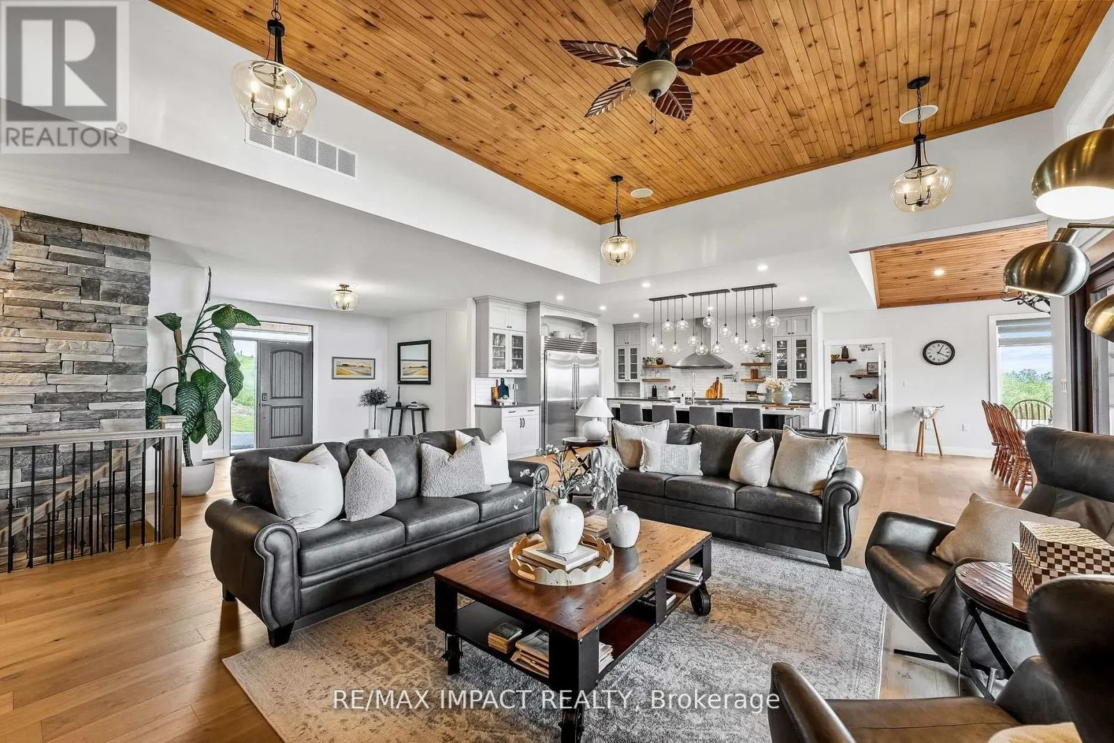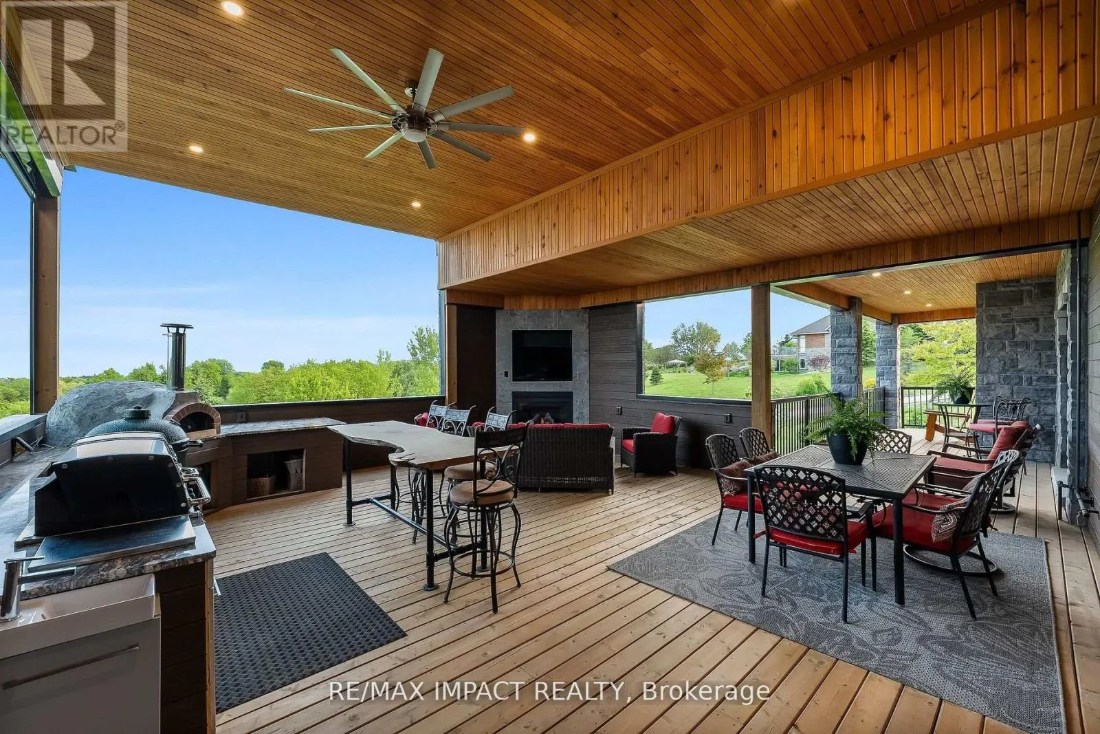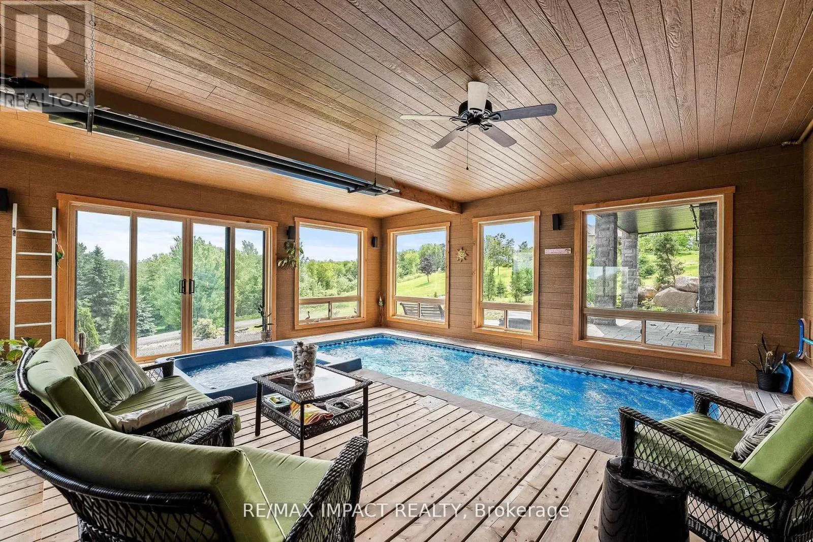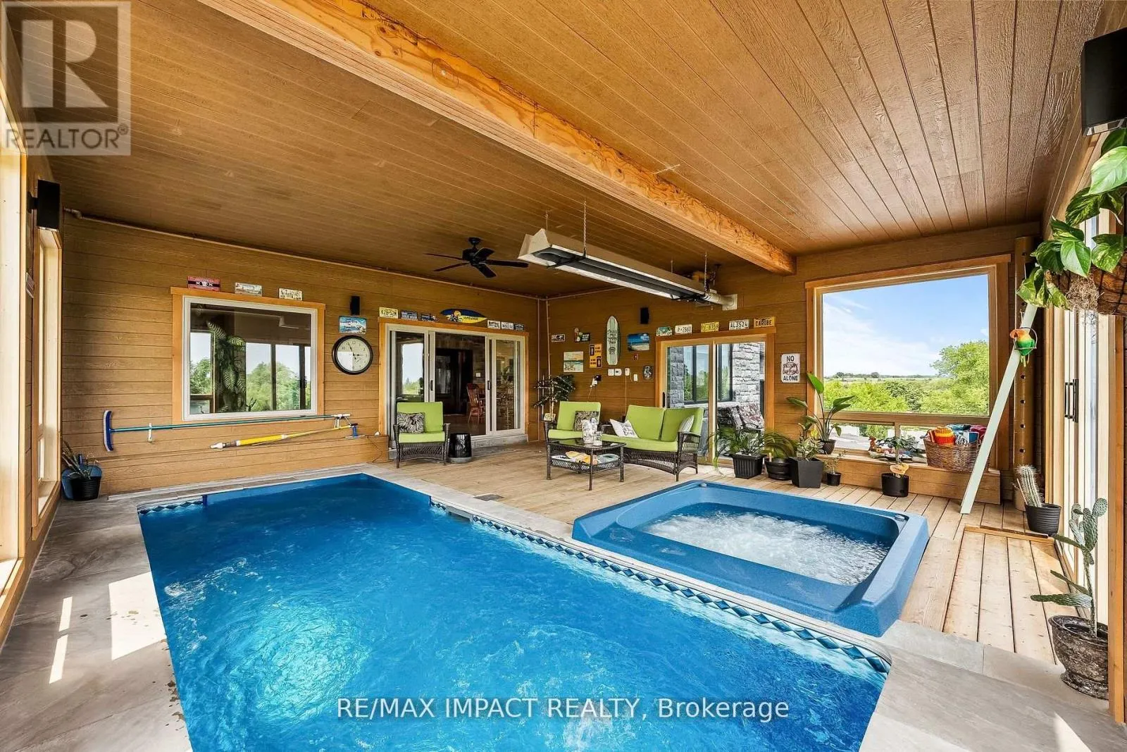 Hwy 2 / Newtonville Rd The epitome of refined living; this custom-built masterpiece, crafted with BRAND NEW premium finishes and thoughtful design throughout. Spanning approx. 5,600 sq ft of living space, this home offers a dream-worthy primary suite with vaulted pine tray ceilings, spa-style 5-pc ensuite, soaker tub, and private water closet. Entertain effortlessly in the gourmet kitchen, complete with Thermador appliances, a stunning walk-through pantry, and high-end countertops that combine beauty and functionality. The open-concept design flows seamlessly into the great room and out to a 25 x 25 covered patio; an entertainers dream. Outdoors, enjoy a full chefs setup with a Forno Bravo pizza oven, Big Green Egg smoker, built-in BBQ, fireplace, and TV, all under soaring 12 pine-clad ceilings. Wellness and leisure are at the heart of this home. The indoor saltwater lap pool and spa-like hot tub offer year-round relaxation. A custom refrigerated wine cellar holds over 600 bottles, while the private home theatre provides the perfect space to unwind or host guests in style. Everyday function meets high design with energy efficient GeoSmart geothermal heating, two oversized garages, a large mudroom, and main floor laundry. The fully finished basement offers even more living space to suit your needs. Large custom windows throughout frame dramatic views, and on clear days, you can take in the distant shimmer of Lake Ontario. This rare and elegant estate is where modern luxury meets timeless and quality craftsmanship. (id:27476)