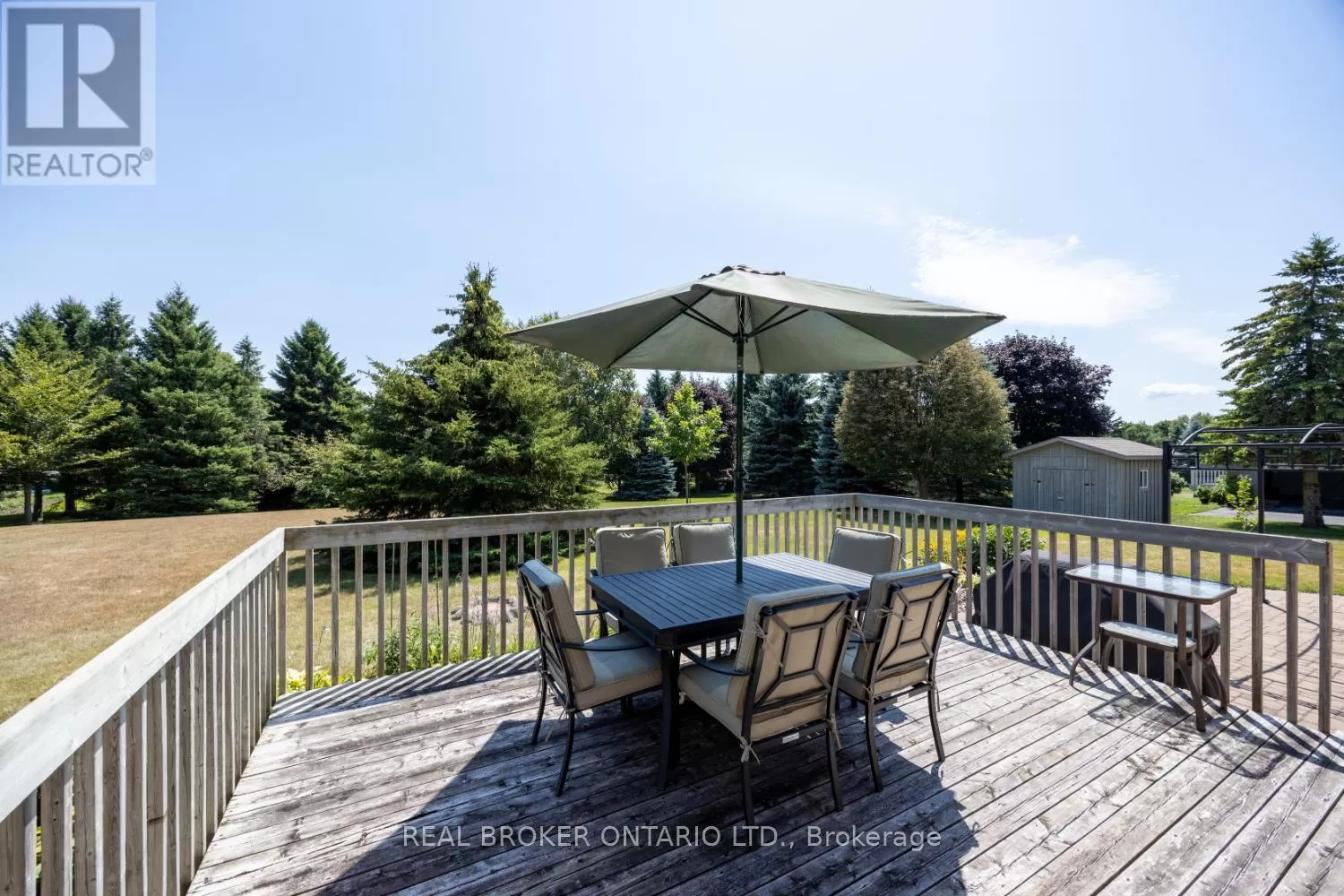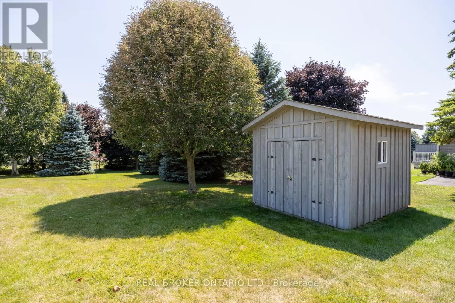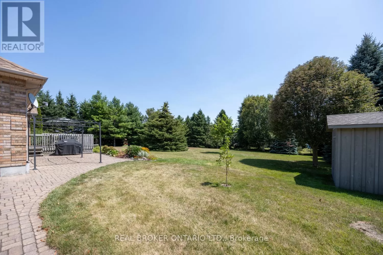 Cross Streets: Old Scugog Rd/Concession Rd 8. ** Directions: From HWY 401 head north on Bowmanville Ave. Follow to Concession Rd 8 and head west at the roundabout. Turn north onto Old Scugog Rd. Turn west onto Virtue Crt. Nestled in the desirable executive neighbourhood of Enniskillen, this all brick bungalow offers the perfect blend of space, comfort, and function on an approx 1-acre lot. With approx 2,000 sq ft of main living space, plus, a fully finished basement, this property is ideal for families seeking both everyday convenience and room to grow. The home welcomes you with an interlock driveway leading to a spacious 2.5 car garage. Step into the large front foyer featuring hardwood flooring, a built-in bench, and a double closet, designed for both style and practicality. A convenient entrance from the garage leads into a generously sized mudroom/laundry rm, complete with its own double closet, making organization effortless. The main floor showcases a bright and airy great room with soaring cathedral ceilings, rich hardwood flooring, and large windows adorned with California shutters. This open-concept space seamlessly flows into the kitchen, which is equipped with a breakfast bar, stainless steel appliances, ample cabinetry including a pantry closet, and pot lighting, ideal for everyday living and entertaining. The kitchen is open to the dining area with a walk-out to the deck. Three great-sized bdrms are located on the main floor, including a spacious primary suite featuring a 5-pc ensuite bath and three double closets, offering abundant storage. Downstairs, the fully finished basement expands your living area significantly. It includes a massive fourth bedroom, a 3-pc bath, a large games rm, and a cozy rec rm with gas fireplace and oversized windows that let in plenty of natural light. A separate entrance from the garage to the basement provides added flexibility. Step outside to a private backyard surrounded by mature trees. Enjoy quiet evenings or summer gatherings on the deck, and take advantage of the added utility of a garden shed for extra storage. This home is a rare opportunity that offers space and functionality, all set in a desired community. (id:27476)