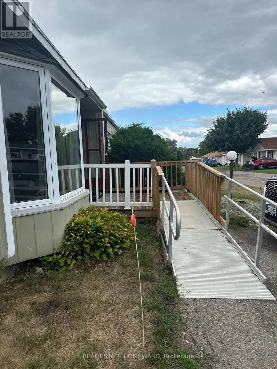 Cross Streets: Bennett & Wilmot Creek Drive. ** Directions: South Of 401 off Bennett Rd. Welcome to Wilmot Creek Adult Lifestyle Community, located in quiet New Castle. This 2 bedroom 2 bathroom home offers incredible potential for those looking to customize and create their perfect retreat. Ideal for active adult buyers, this property is set on a peaceful lot and surrounded by mature trees, walking paths, and community amenities. The home requires updates and renovation but provides a great layout and open concept with wheelchair access and a large Florida room that can be used as a potential third bedroom. With some TLC, this could be transformed into a comfortable and affordable residence. Enjoy the benefits of community living, including a clubhouse, pool, social activities, and a friendly, welcoming atmosphere all just a short drive to shops, services, and nature. Bring your ideas and make it your own! $1200 Maintenance fees include taxes, water and land fees (id:27476)