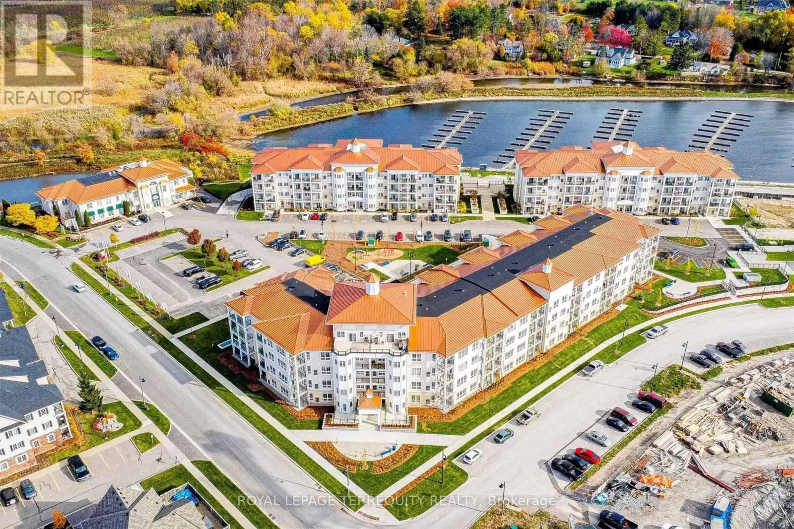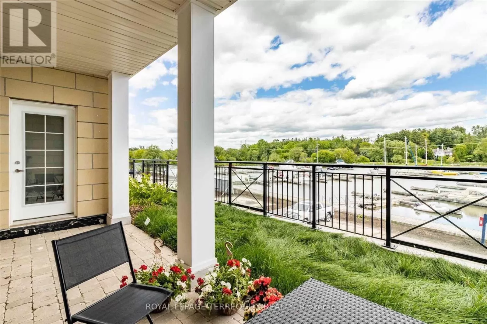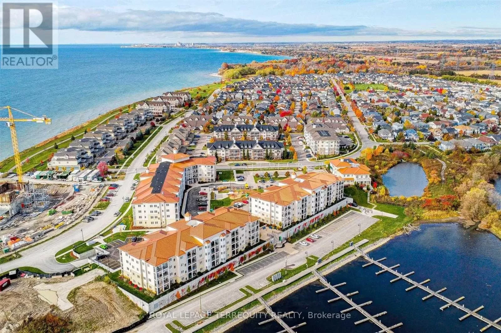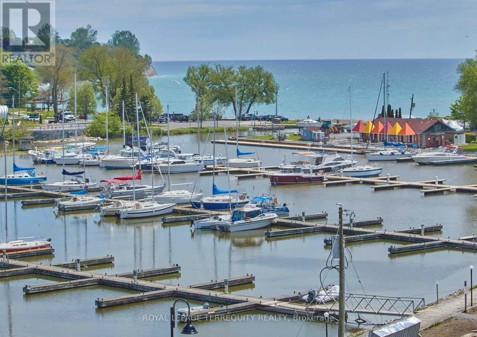 Shipway Ave & Lake Breeze Dr Spacious 749 sq ft 1+1 unit in the heart of the Port of Newcastle, overlooking the breathtaking views of Newcastle Marina and Lake Ontario. 2 Baths for your convenience and privacy. Open Concept, sun filled unit with upgraded high kitchen cabinets, quartz Countertops and breakfast bar. Upgraded flooring in combined Living and Dining rooms. Enjoy a walkout access to the glass fenced Terrace with clear panoramic view of the Marina and Lake Ontario. The Primary bedroom is a true sanctuary with gorgeous view from the large window, a walk in closet and 3 pc ensuite bathroom with frameless standup shower. Spacious Den perfect for an office setting or an extra bedroom. Featuring an ensuite Laundry room with a stackable washer and dryer, S.S. Fridge, S.S. Stove, S.S. Dishwasher and Range Vent. Plenty of visitor parking. Steps to Lake, Park and all amenities. Enjoy access to The Admiral Club where you can jump into the indoor pool , keep fit at the gym or have launch/ Dinner at the restaurant, or maybe read a book at the library or play a game of Billiard, or simply sit down, relax and watch a movie. When ready to party invite your friends or family to the party room for your special occasion. (id:27476)