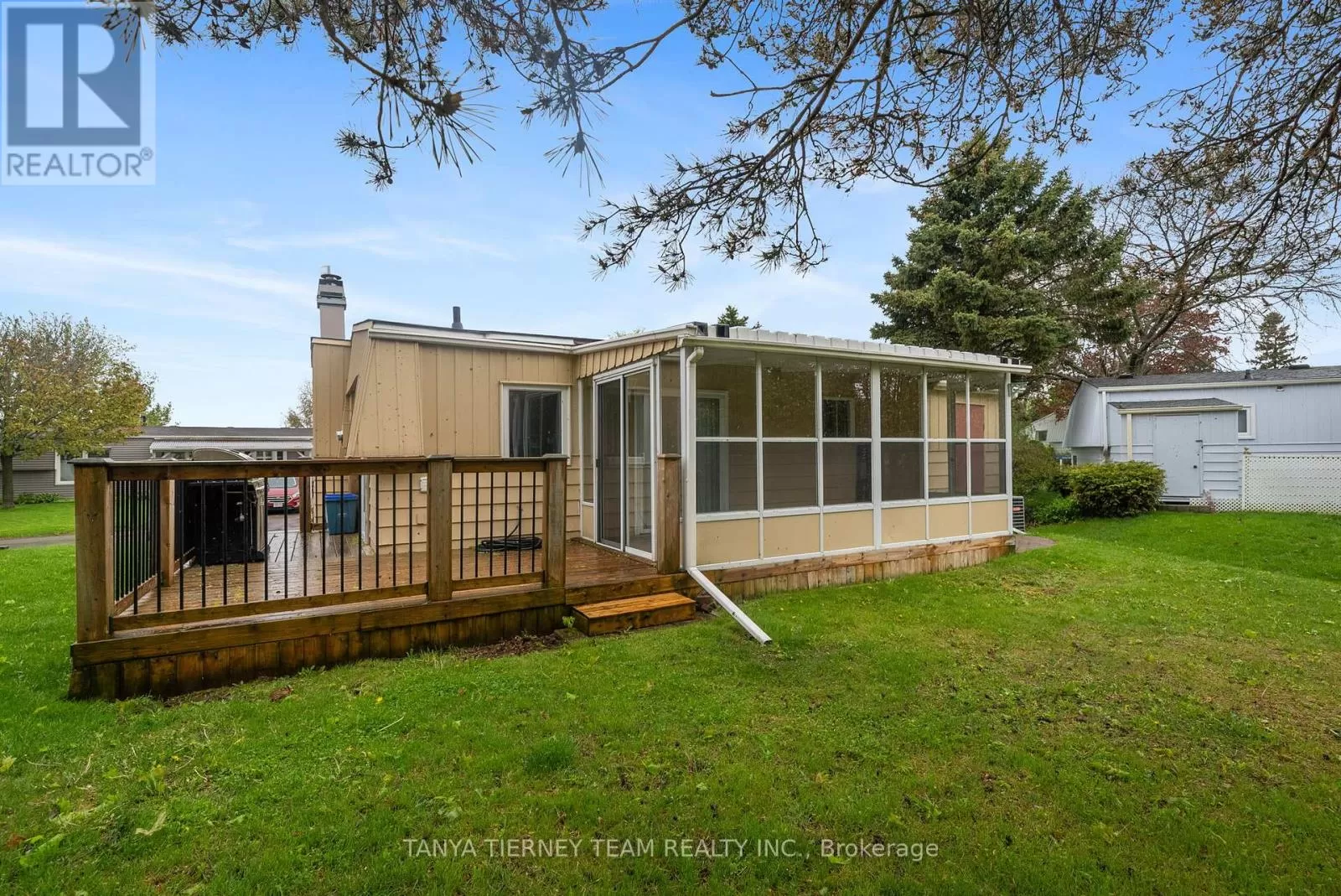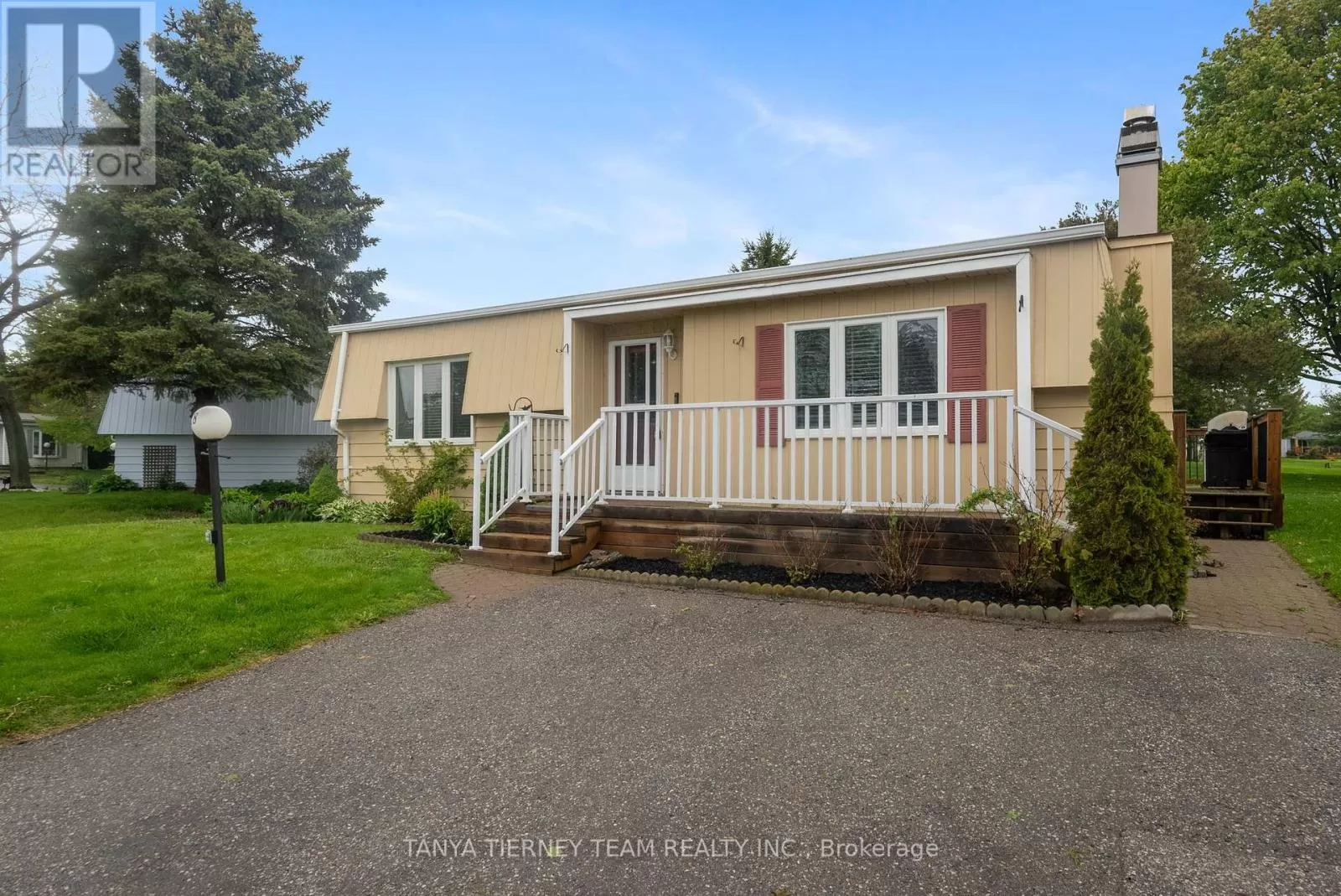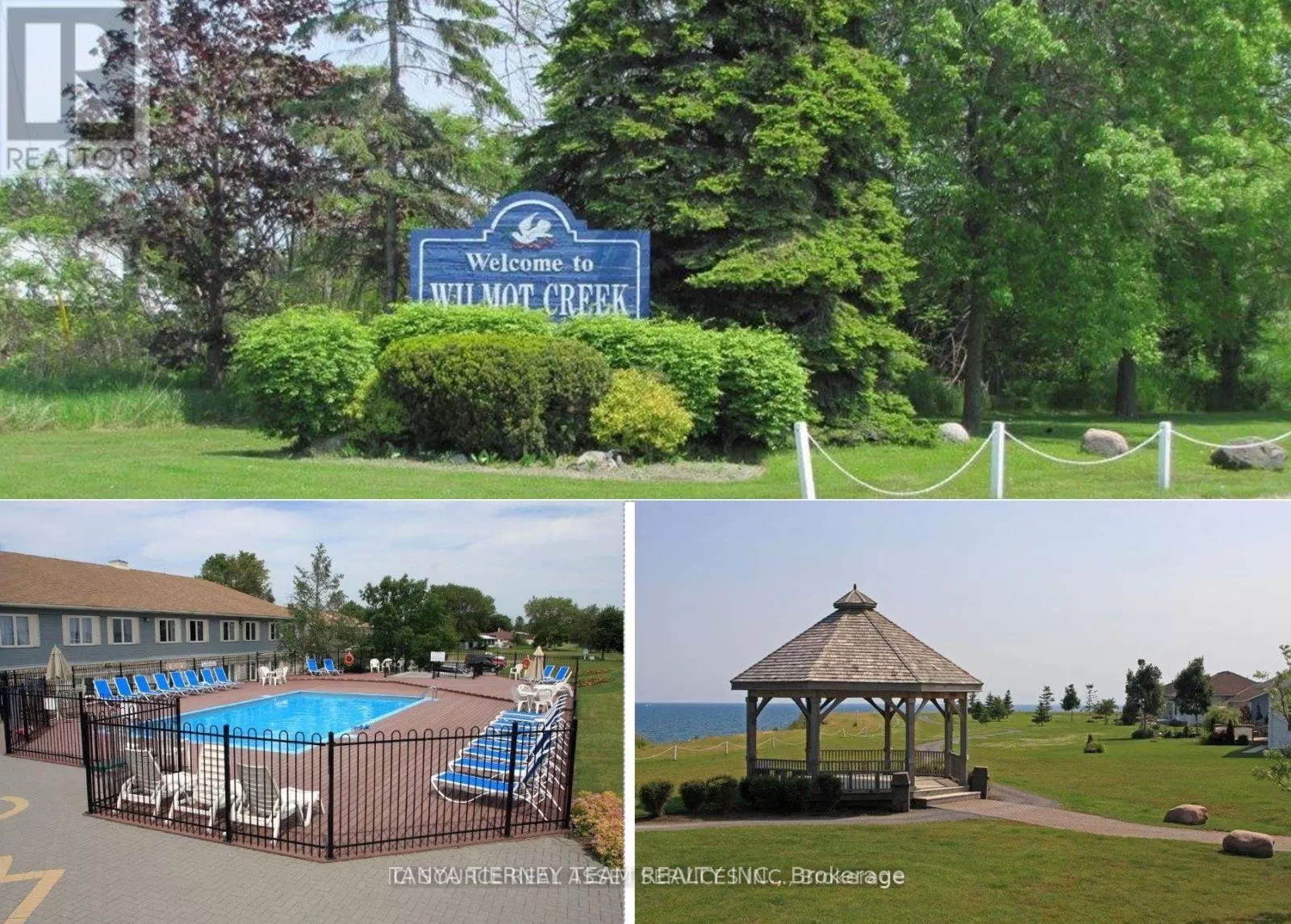 Wilmot Trail/The Cove Rd. Fantastic offering in the waterfront community of Wilmot Creek. Superb location steps from the Wheelhouse community centre, with a beautiful view of Lake Ontario, and backing onto the 9th hole of the golf course, this one has everything you're looking for! Inside you'll find a spacious and open concept living room, complete with natural gas fireplace and large windows with views of the lake. A well appointed galley kitchen with stainless steel appliances, a large pantry and walkout to the wrap around deck with included gas BBQ. The dining area features a second walkout to the large sunroom with new floors and ceilings, and a perfect view of the 9th hole green. Two bedrooms and an upgraded 3 piece bathroom make for plenty of space to accommodate all your needs. Recent updates include the windows in 2018, exterior paint and deck railings in 2019, stacked washer/dryer, smoothed ceilings, shower upgrade and new lighting throughout in 2021, sunroom with new laminate flooring and finished ceiling in 2025. Come see why Wilmot Creek is one of Canada's most prestigious communities, with multiple pools, tennis/pickle courts, billiards, woodworking shop, hundreds of clubs and it's very own private 9 hole golf course. Leased land fee $11321.16 a year. (id:27476)