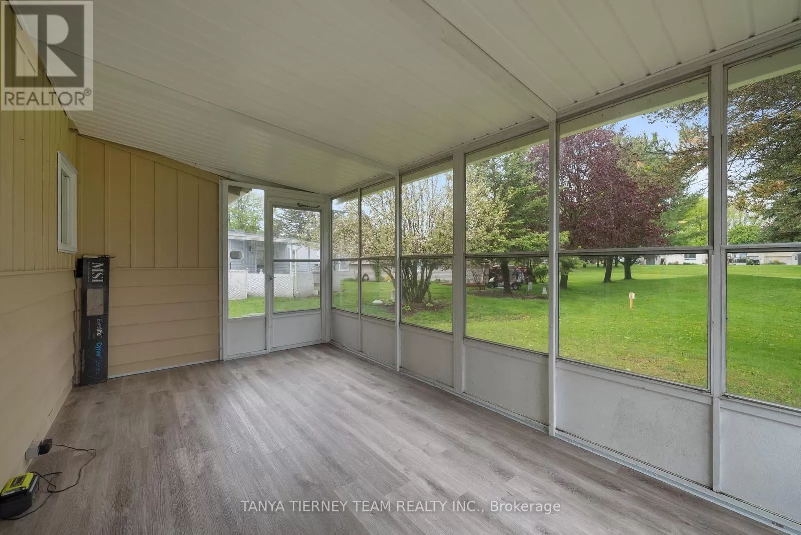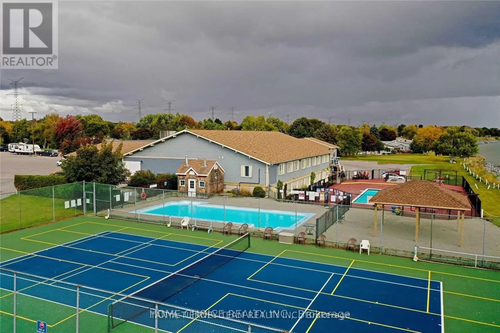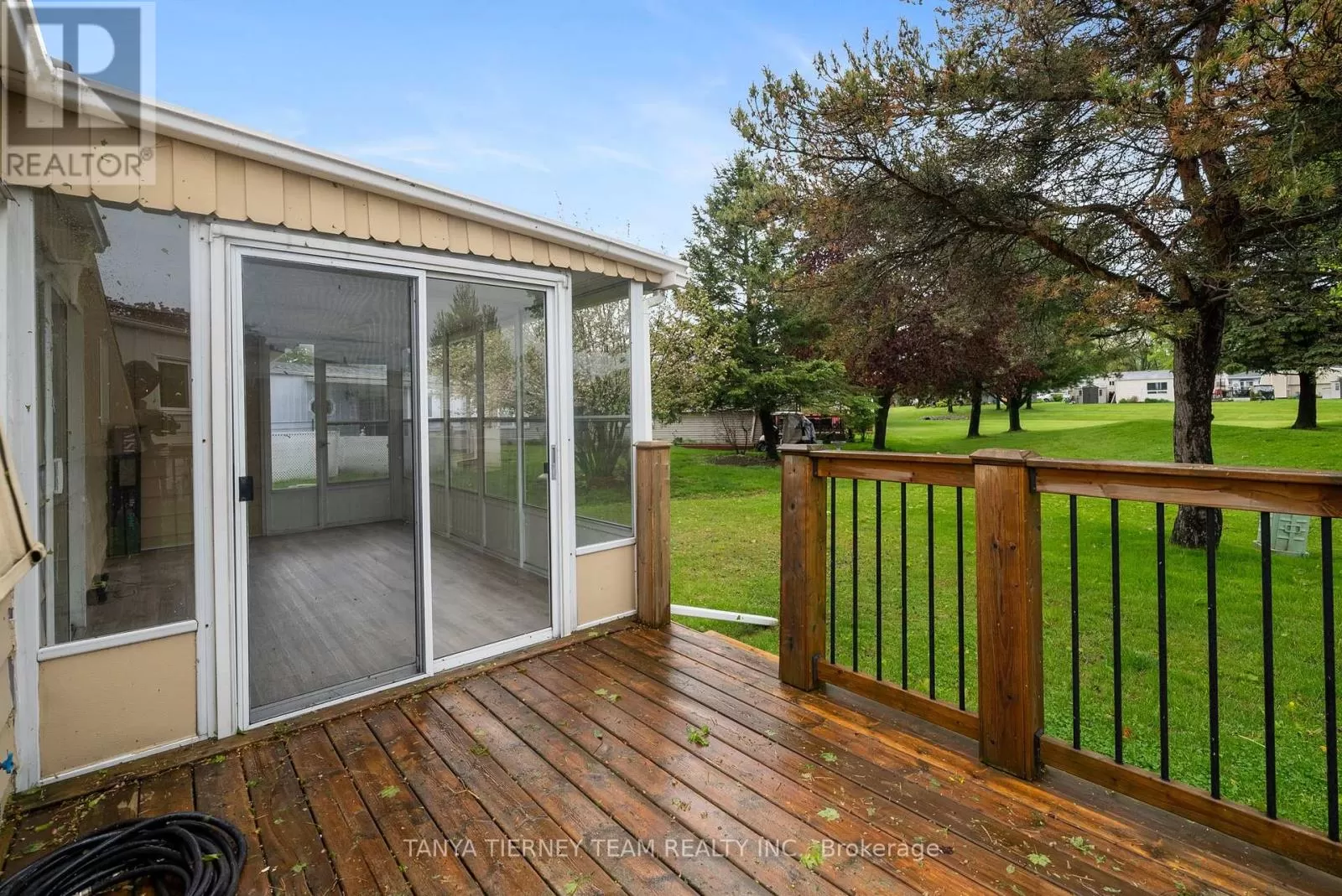 Wilmot Trail/The Cove Rd. Fantastic offering in the waterfront community of Wilmot Creek. Superb location steps from the Wheelhouse community centre, with a beautiful view of Lake Ontario, and backing onto the 9th hole of the golf course, this one has everything you're looking for! Inside you'll find a spacious and open concept living room, complete with natural gas fireplace and large windows with views of the lake. A well appointed galley kitchen with stainless steel appliances, a large pantry and walkout to the wrap around deck with included gas BBQ. The dining area features a second walkout to the large sunroom with new floors and ceilings, and a perfect view of the 9th hole green. Two bedrooms and an upgraded 3 piece bathroom make for plenty of space to accommodate all your needs. Recent updates include the windows in 2018, exterior paint and deck railings in 2019, stacked washer/dryer, smoothed ceilings, shower upgrade and new lighting throughout in 2021, sunroom with new laminate flooring and finished ceiling in 2025. Come see why Wilmot Creek is one of Canada's most prestigious communities, with multiple pools, tennis/pickle courts, billiards, woodworking shop, hundreds of clubs and it's very own private 9 hole golf course. Leased land fee $11321.16 a year. (id:27476)