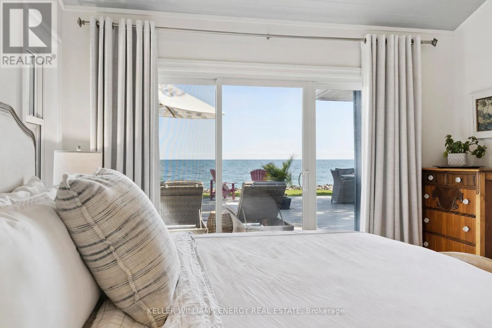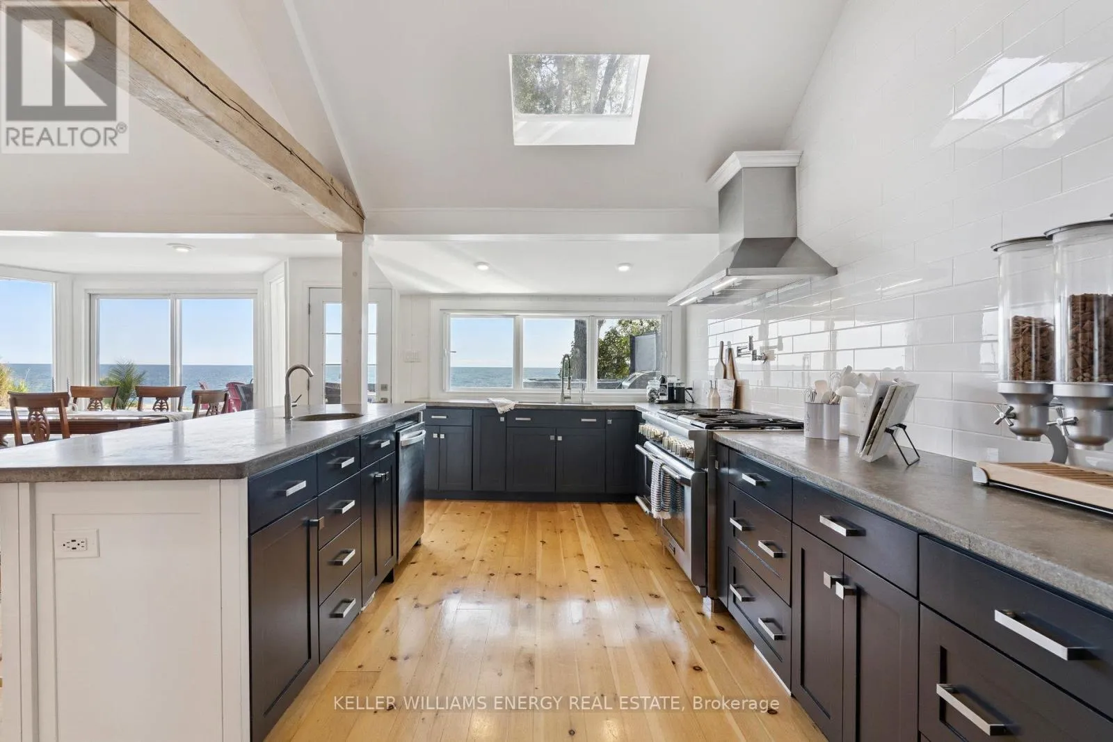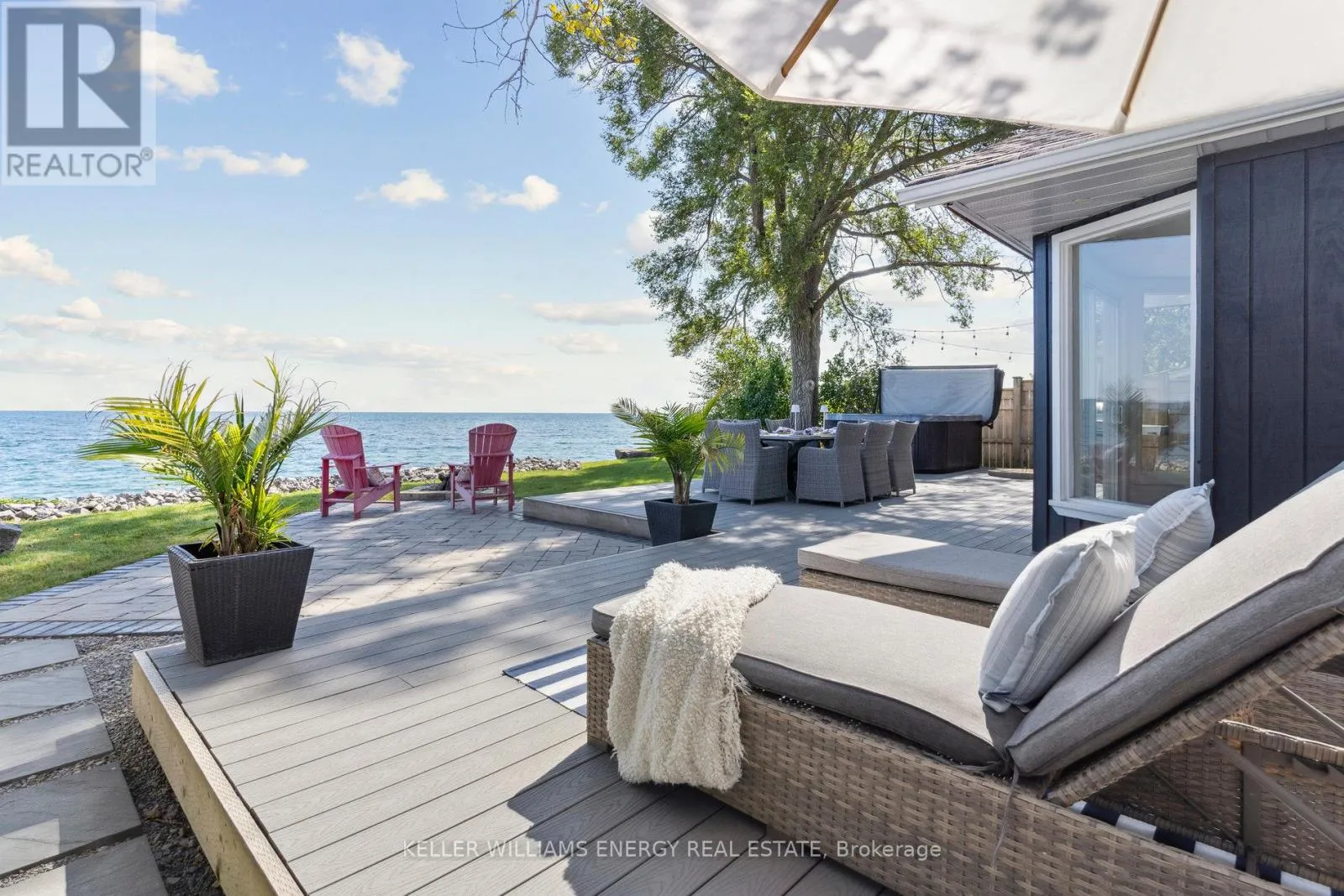 Cross Streets: West Beach road/Cove Rd. ** Directions: Liberty St South Bowmanville;Turn right onto Lake Rd;Turn right onto E Shore Dr; follow to lake turn right onto Cove Rd; turns into Cedar Crest Beach Rd. Go over the bridge, 141 Cedar Crest Beach rd. Is on the left. Awaken to sweeping views of Lake Ontario from this elegant waterfront bungalow, set on a rare 300-ft-deep lot with over 40ft of private lakefront. The vaulted great room features a stunning floor-to-ceiling stone fireplace, cathedral ceilings, and 12-ft sliding glass doors all connecting seamlessly to the expansive lakeside TREX decking. A chefs kitchen complete with Thermador appliances, convenient pot filler, modern counters, elegant skylight windows, and a pass-through window, that truly bring the sound of waves crashing on the shoreline, inside. The primary suite offers a spa-like ensuite with heated marble floors, walk-in closet, and direct walkout to the deck. A separate wing includes a full second kitchen, family flex room with expansive sliding glass doors to the courtyard, a bedroom, and 3-pc bathideal for multi-generational living. The detached 2 car garage features an insulated loft apartment with a kitchen, 3-pc bath, fireplace, and walk-in closet. Landscaped grounds include a hot tub, exquisite French inspired gardens, and multiple outdoor living areas, all just minutes from downtown Bowmanville, Hwy 401, and under an hour to Toronto. (id:27476)