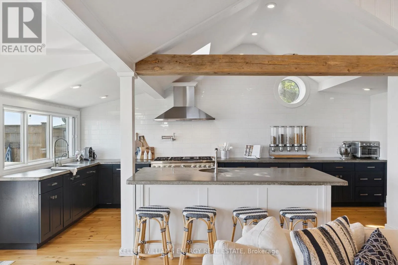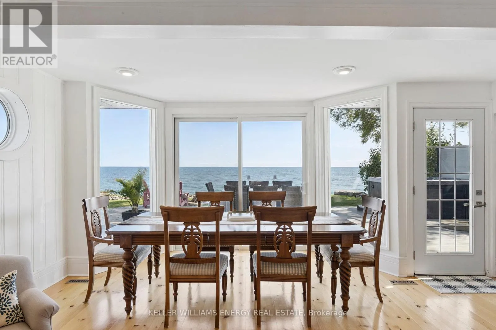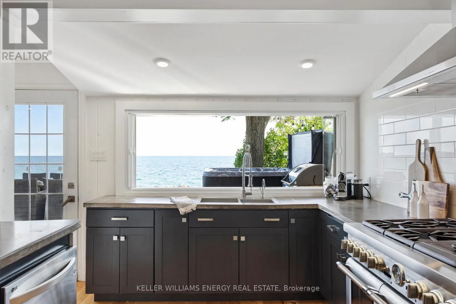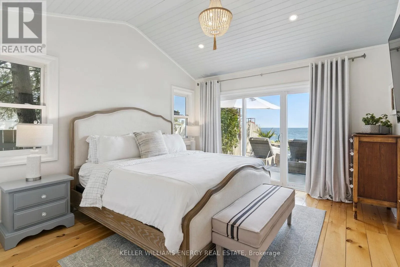 Cross Streets: West Beach road/Cove Rd. ** Directions: Liberty St South Bowmanville;Turn right onto Lake Rd;Turn right onto E Shore Dr; follow to lake turn right onto Cove Rd; turns into Cedar Crest Beach Rd. Go over the bridge, 141 Cedar Crest Beach rd. Is on the left. Awaken to sweeping views of Lake Ontario from this elegant waterfront bungalow, set on a rare 300-ft-deep lot with over 40ft of private lakefront. The vaulted great room features a stunning floor-to-ceiling stone fireplace, cathedral ceilings, and 12-ft sliding glass doors all connecting seamlessly to the expansive lakeside TREX decking. A chefs kitchen complete with Thermador appliances, convenient pot filler, modern counters, elegant skylight windows, and a pass-through window, that truly bring the sound of waves crashing on the shoreline, inside. The primary suite offers a spa-like ensuite with heated marble floors, walk-in closet, and direct walkout to the deck. A separate wing includes a full second kitchen, family flex room with expansive sliding glass doors to the courtyard, a bedroom, and 3-pc bathideal for multi-generational living. The detached 2 car garage features an insulated loft apartment with a kitchen, 3-pc bath, fireplace, and walk-in closet. Landscaped grounds include a hot tub, exquisite French inspired gardens, and multiple outdoor living areas, all just minutes from downtown Bowmanville, Hwy 401, and under an hour to Toronto. (id:27476)