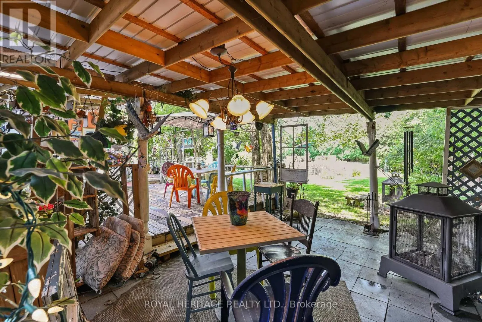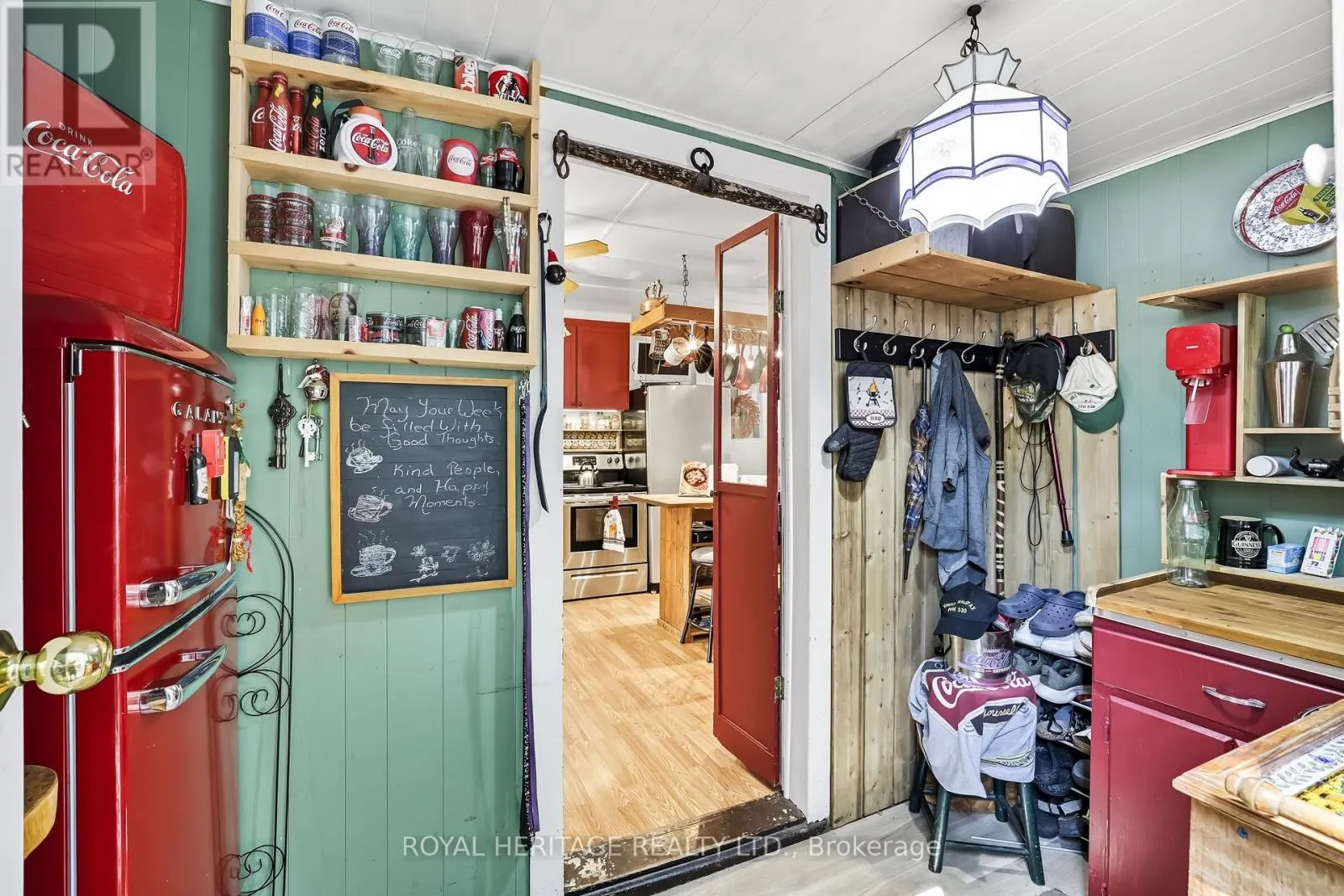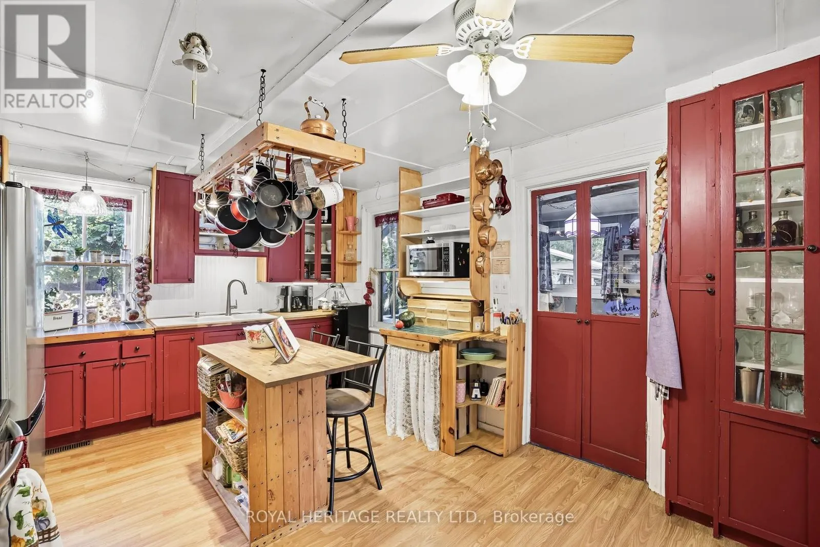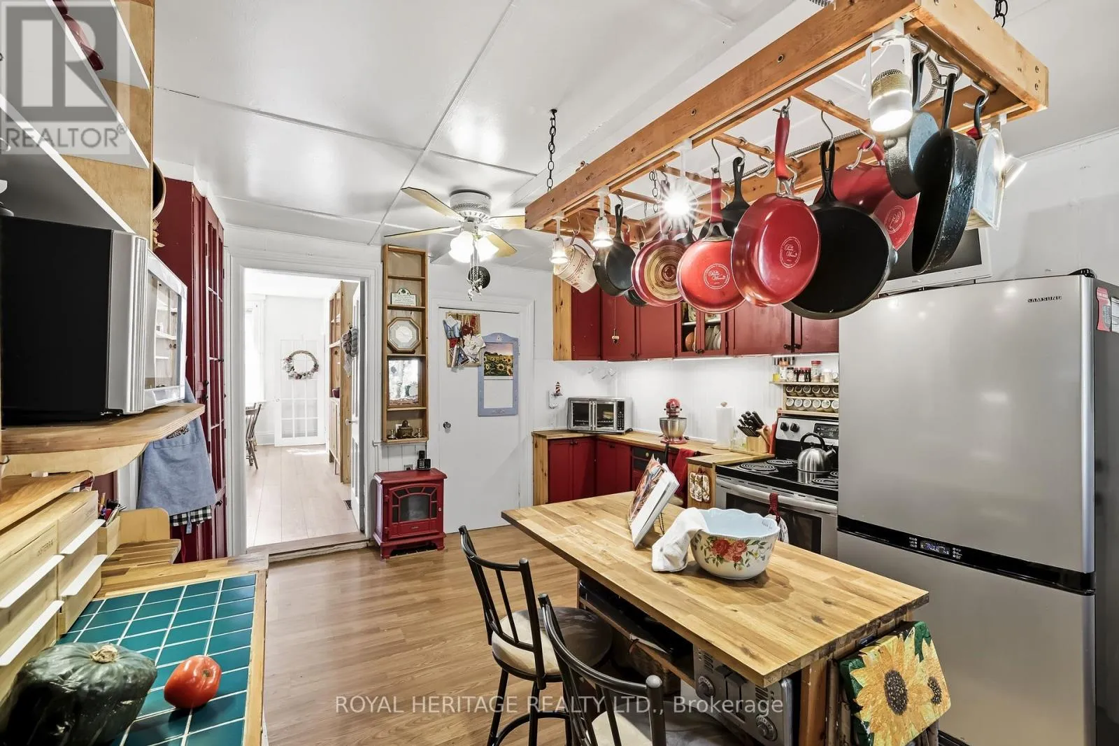 ELGIN & CONCESSION ST W Steps from downtown Bowmanville and a local school, this 2-bedroom, 2-bath century home is full of character and ready for its next chapter. Freshly painted throughout, it features a spacious living room with a built-in electric fireplace and tv nook and large dining room great for large gatherings, and a bright kitchen with plenty of cabinetry, windows overlooking the yard, a hanging pot rack, and classic butler doors. The front 3-season sunroom adds extra charm, while upstairs the primary bedroom offers a walk-in closet converted from the original nursery. Outdoors, the generous lot is made for entertaining and relaxation with a deck, hot tub, and above-ground pool, plus cozy nooks to enjoy year-round. Original windows and trims highlight the homes heritage, while the location offers unbeatable walk ability to shops, restaurants, schools, and amenities. A Bowmanville classic with space, charm, and endless potential to make your own. (id:27476)