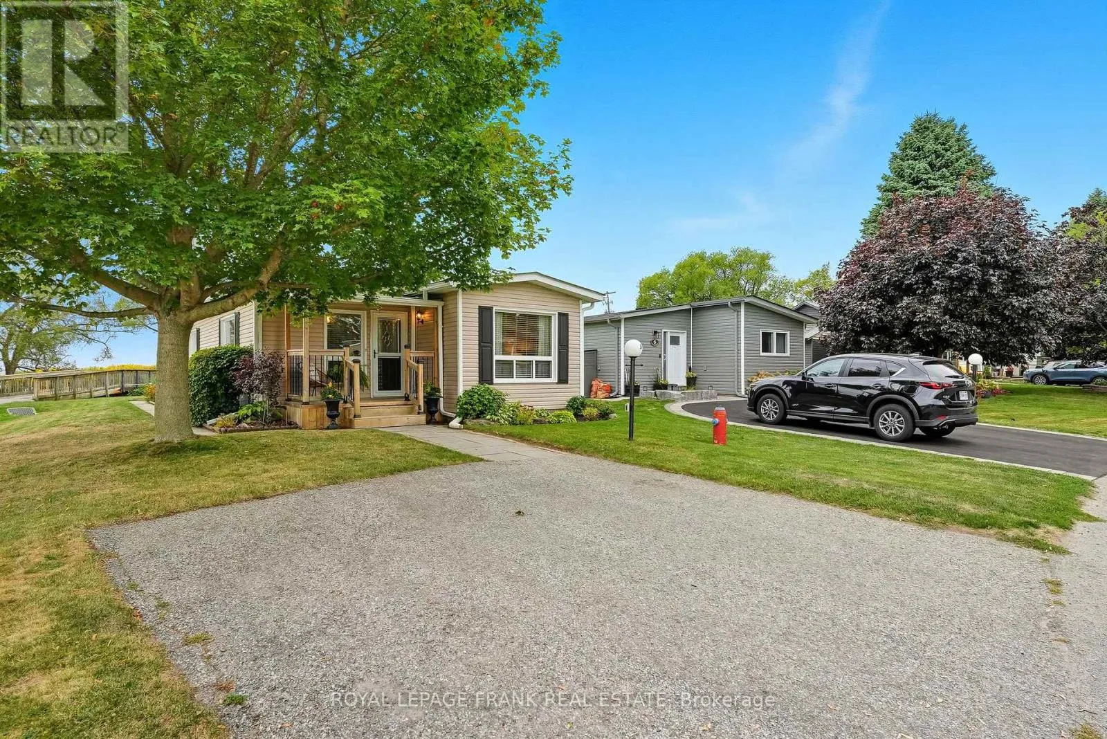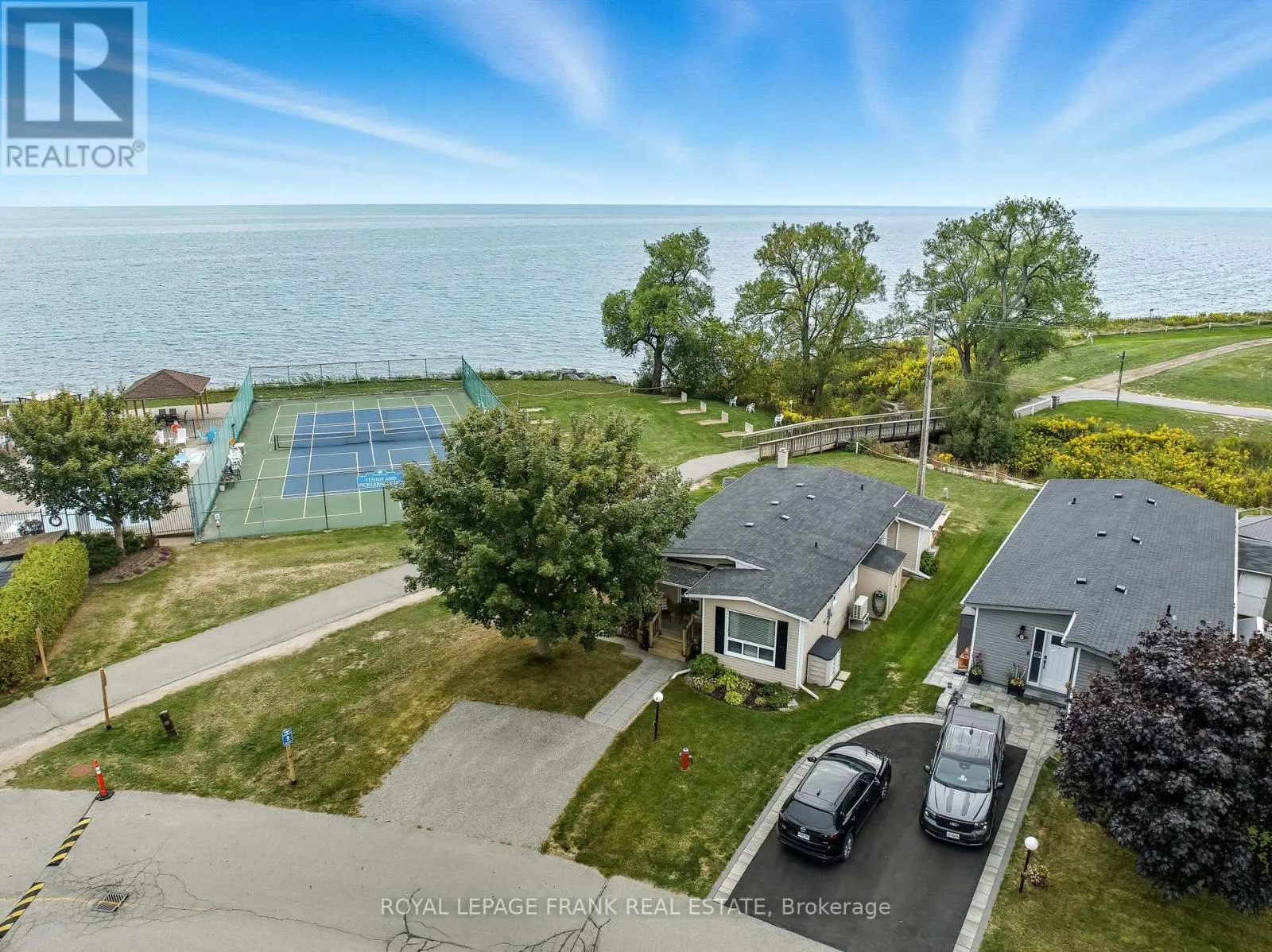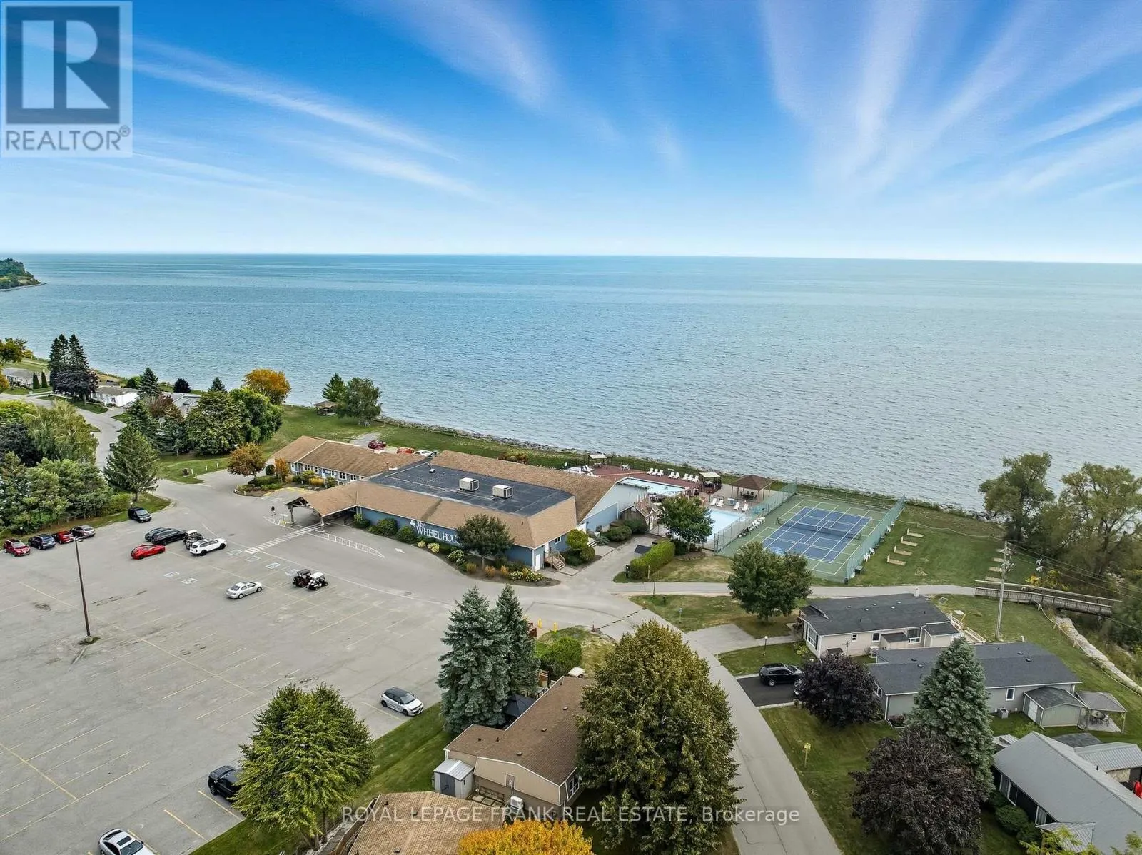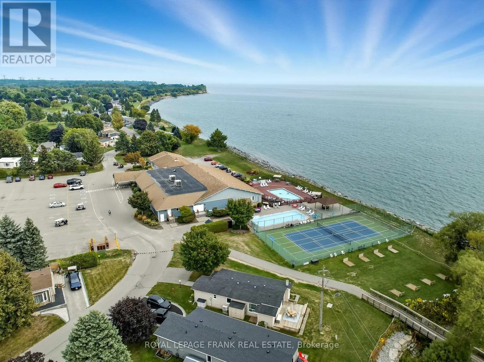 Cross Streets: Wheelhouse & Wilmot Trail. ** Directions: 401 to Bennett Rd, follow to Wilmot Creek. Discover lakeside living at its finest in this beautifully updated, carpet-free 2-bedroom, 2-bathroom bungalow nestled in the heart of Wilmot Creek one of Clarington's most sought-after adult lifestyle communities. Perfectly positioned just steps from the Wheelhouse Community Centre and backing onto serene views of Lake Ontario, this home offers the perfect blend of comfort, convenience, and natural beauty. Step inside to a bright, open-concept design featuring a spacious kitchen with updated cabinetry and a sunlit dining area ideal for casual meals or hosting friends. The generous living room flows seamlessly to a private back deck, where you can unwind with your morning coffee while watching the sunrise over the water, or entertain guests with the lake as your backdrop. The primary bedroom offers a peaceful retreat with a walk-in closet and a private ensuite bath, while the second bedroom and full guest bathroom provide comfort for visiting family and friends. Enjoy year-round activities and amenities including indoor resistance pool, Hot Tub, Sauna and outdoor pools, fitness facilities, 9 Hole Golf Course, Tennis, Pickleball, and an active social calendar all just steps from your door. Monthly land lease: $1,200 + property taxes, with snow removal and water included for a truly low-maintenance lifestyle. Recent updates: Vinyl siding (2017), shingles (2017), kitchen (2017), deck (2017), eavestroughs (2025), Furnace (2021) Replaced Blower (2024), Heat Pump Installed 2024. If you've been searching for a move-in ready home with breathtaking lake views in a vibrant and welcoming community, this is the one. (id:27476)