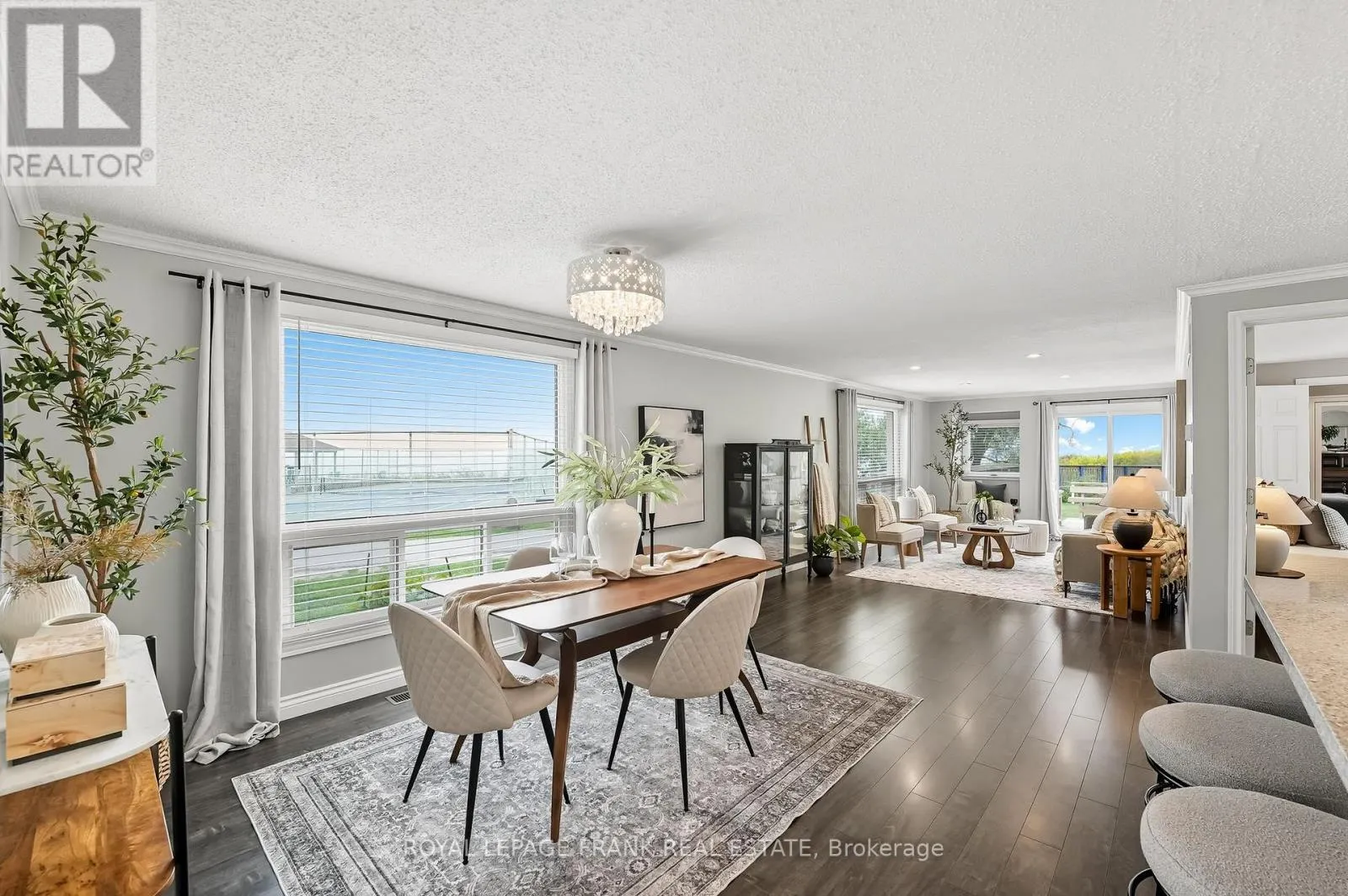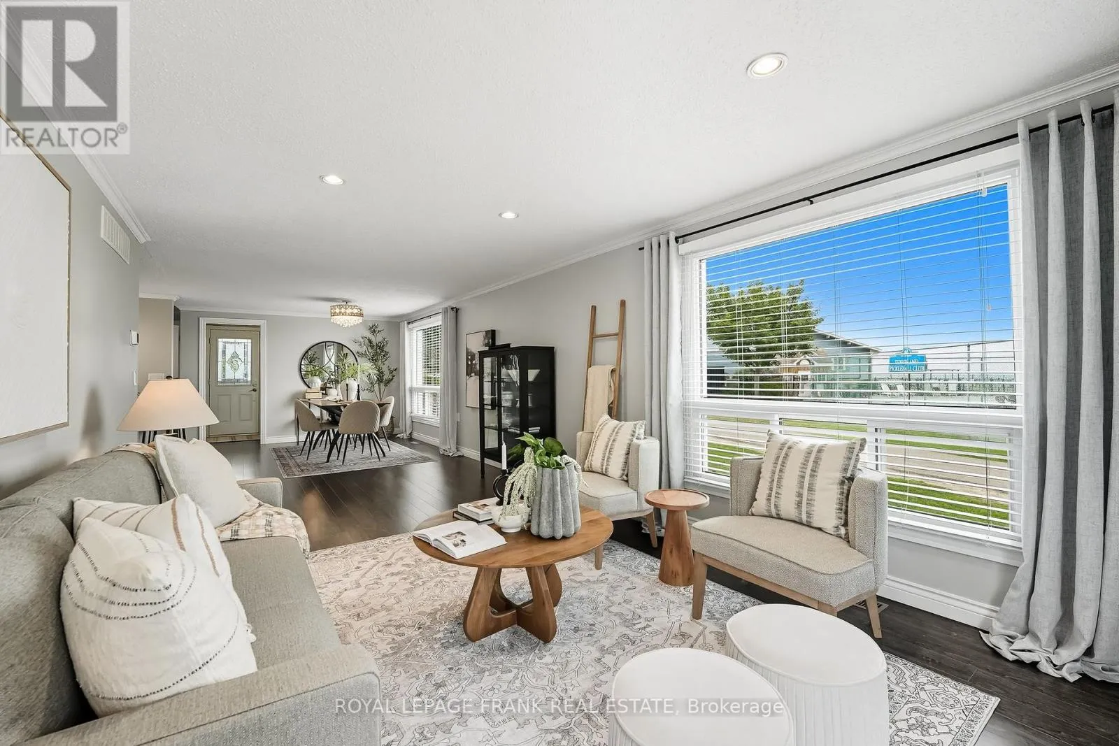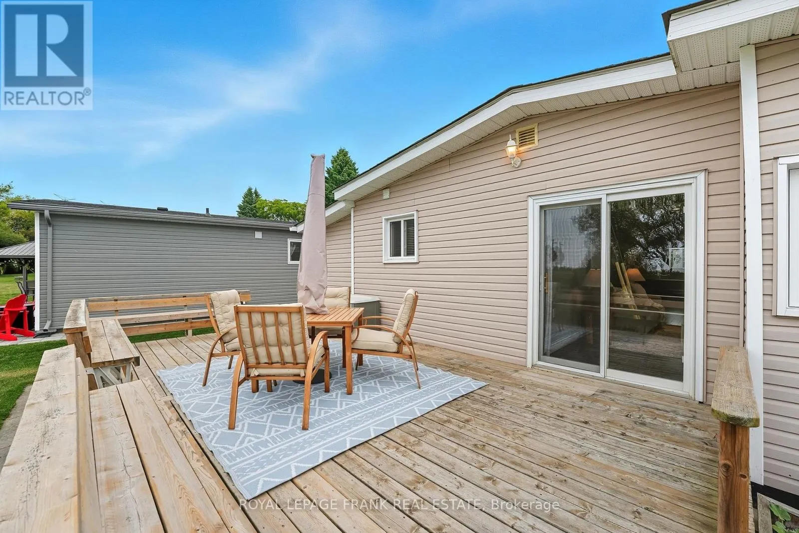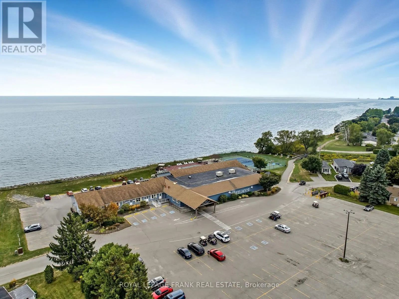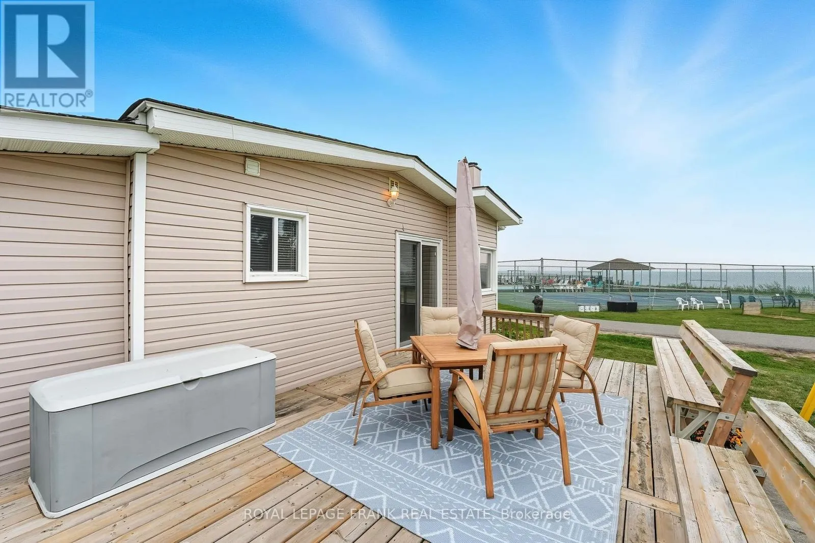 Cross Streets: Wheelhouse & Wilmot Trail. ** Directions: 401 to Bennett Rd, follow to Wilmot Creek. Discover lakeside living at its finest in this beautifully updated, carpet-free 2-bedroom, 2-bathroom bungalow nestled in the heart of Wilmot Creek one of Clarington's most sought-after adult lifestyle communities. Perfectly positioned just steps from the Wheelhouse Community Centre and backing onto serene views of Lake Ontario, this home offers the perfect blend of comfort, convenience, and natural beauty. Step inside to a bright, open-concept design featuring a spacious kitchen with updated cabinetry and a sunlit dining area ideal for casual meals or hosting friends. The generous living room flows seamlessly to a private back deck, where you can unwind with your morning coffee while watching the sunrise over the water, or entertain guests with the lake as your backdrop. The primary bedroom offers a peaceful retreat with a walk-in closet and a private ensuite bath, while the second bedroom and full guest bathroom provide comfort for visiting family and friends. Enjoy year-round activities and amenities including indoor resistance pool, Hot Tub, Sauna and outdoor pools, fitness facilities, 9 Hole Golf Course, Tennis, Pickleball, and an active social calendar all just steps from your door. Monthly land lease: $1,200 + property taxes, with snow removal and water included for a truly low-maintenance lifestyle. Recent updates: Vinyl siding (2017), shingles (2017), kitchen (2017), deck (2017), eavestroughs (2025), Furnace (2021) Replaced Blower (2024), Heat Pump Installed 2024. If you've been searching for a move-in ready home with breathtaking lake views in a vibrant and welcoming community, this is the one. (id:27476)