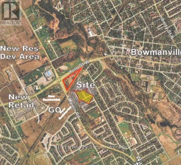 Cross Streets: MARTIN RD / KING W / SCUGOG ST. ** Directions: KING ST W / MARTIN RD. Located in the heart of downtown Bowmanville, 99 King St W presents an incredible opportunity for developers and investors. This fully approved high-density site is designated within the Major Transit Station Area (MTSA), offering the perfect setting for the development of three condo towers, with a total of approximately 425 units. Situated just steps away from the future GO Station, this property benefits from unparalleled access to public transportation, making it an ideal location for residential development. With its prime location in a rapidly growing area, this site offers exceptional potential for both short-term and long-term returns. Priced at $20,000,000, this is a rare and lucrative opportunity to capitalize on Bowmanville's expanding downtown core. Don't miss your chance to be part of the area's exciting transformation. Buyer to complete due diligence. (id:27476)