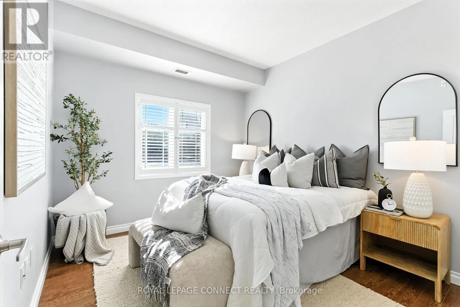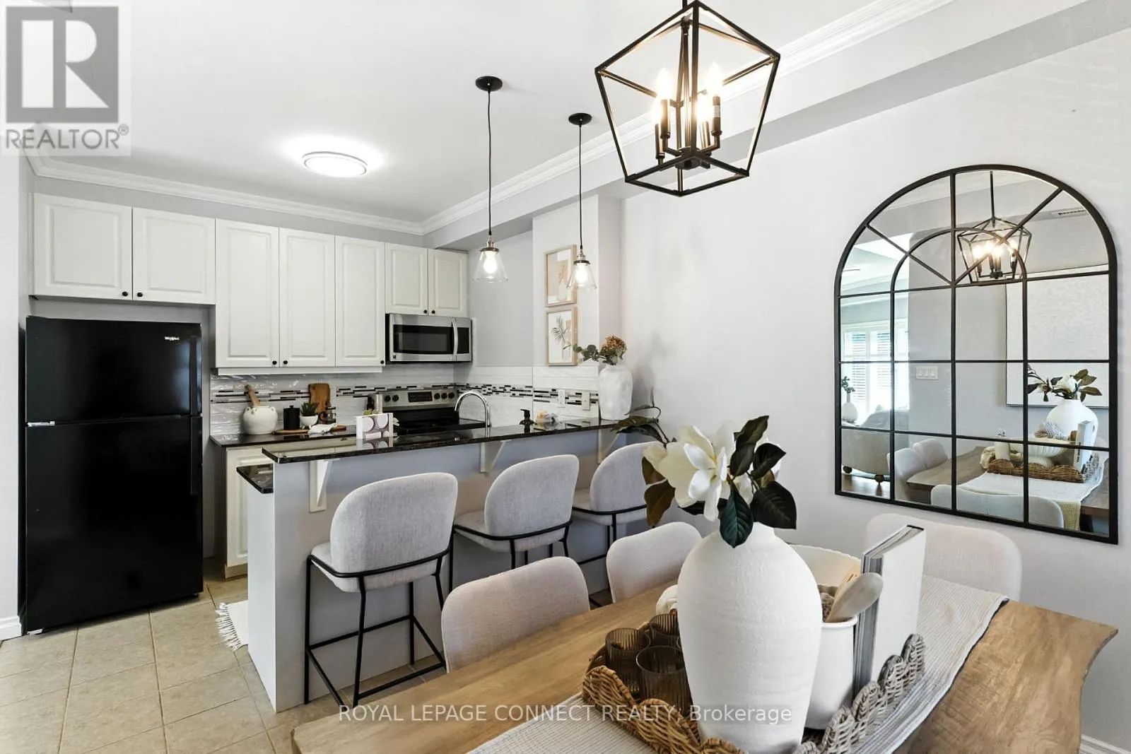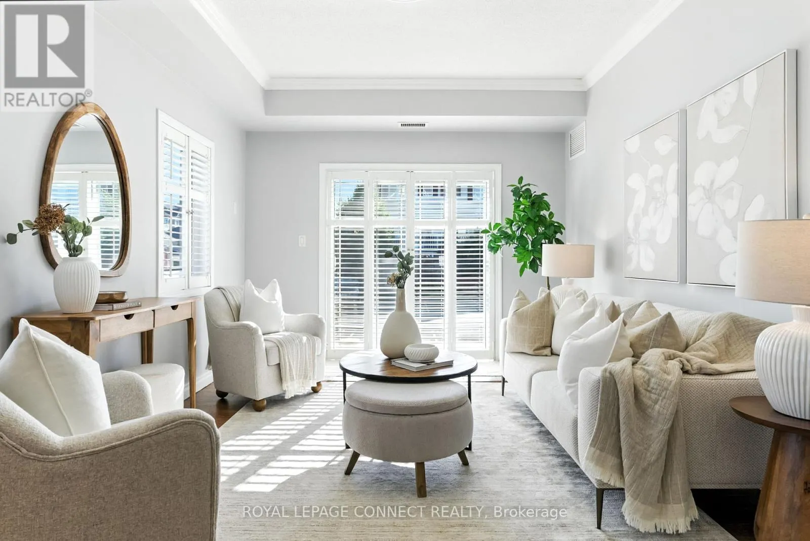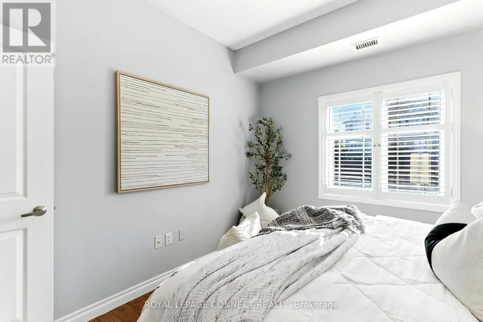 Cross Streets: Green Rd and Aspen Spring Drive. ** Directions: North on Green Rd from Baseline, west on McBride Ave, first right onto Farmstead, first right on Autumn Harvest, drive straight to 1 Sidney Lane. 2 Parking Spaces! Welcome to 107-1 Sidney Lane! This rarely offered main-floor corner unit features a highly sought-after layout with a dedicated dining area, 2 bedrooms and the added convenience of 2 owned parking spaces. Soaring 9-foot ceilings, crown moulding, and California Shutters throughout add charm and character to every room. Enjoy the abundance of natural light from the south and west-facing windows, creating a warm, inviting atmosphere all day long. The open layout features the kitchen complete with granite countertops, tile backsplash, and a convenient breakfast bar overlooking the dining area and a walk out from your living room to your open patio where you can relax and enjoy your morning tea. The primary bedroom and entryway both feature walk-in closets, offering exceptional storage. With in-suite laundry, ample storage throughout, a 3 piece bathroom with large glass shower, and the rare bonus of two parking spots, this home checks all the boxes. This unit is move-in ready and in a highly desirable location, walking distance to shopping, grocery stores, restaurants, public transit, schools and parks, and only minutes to Highway 401. (id:27476)
