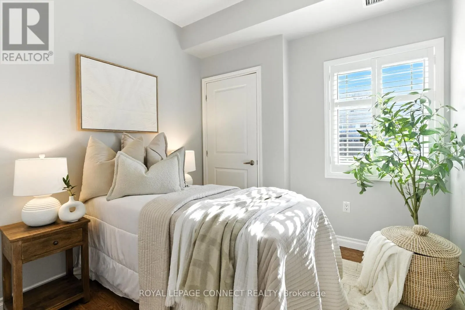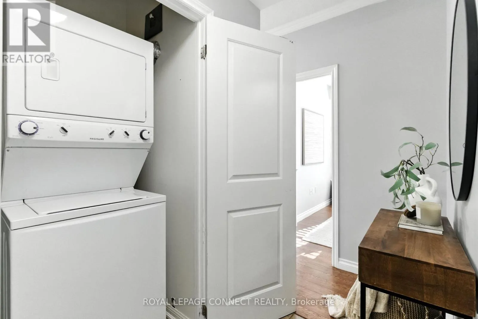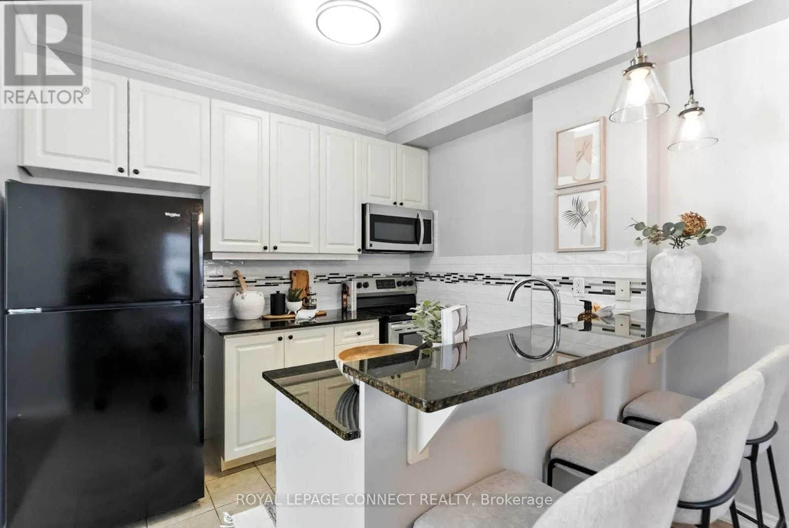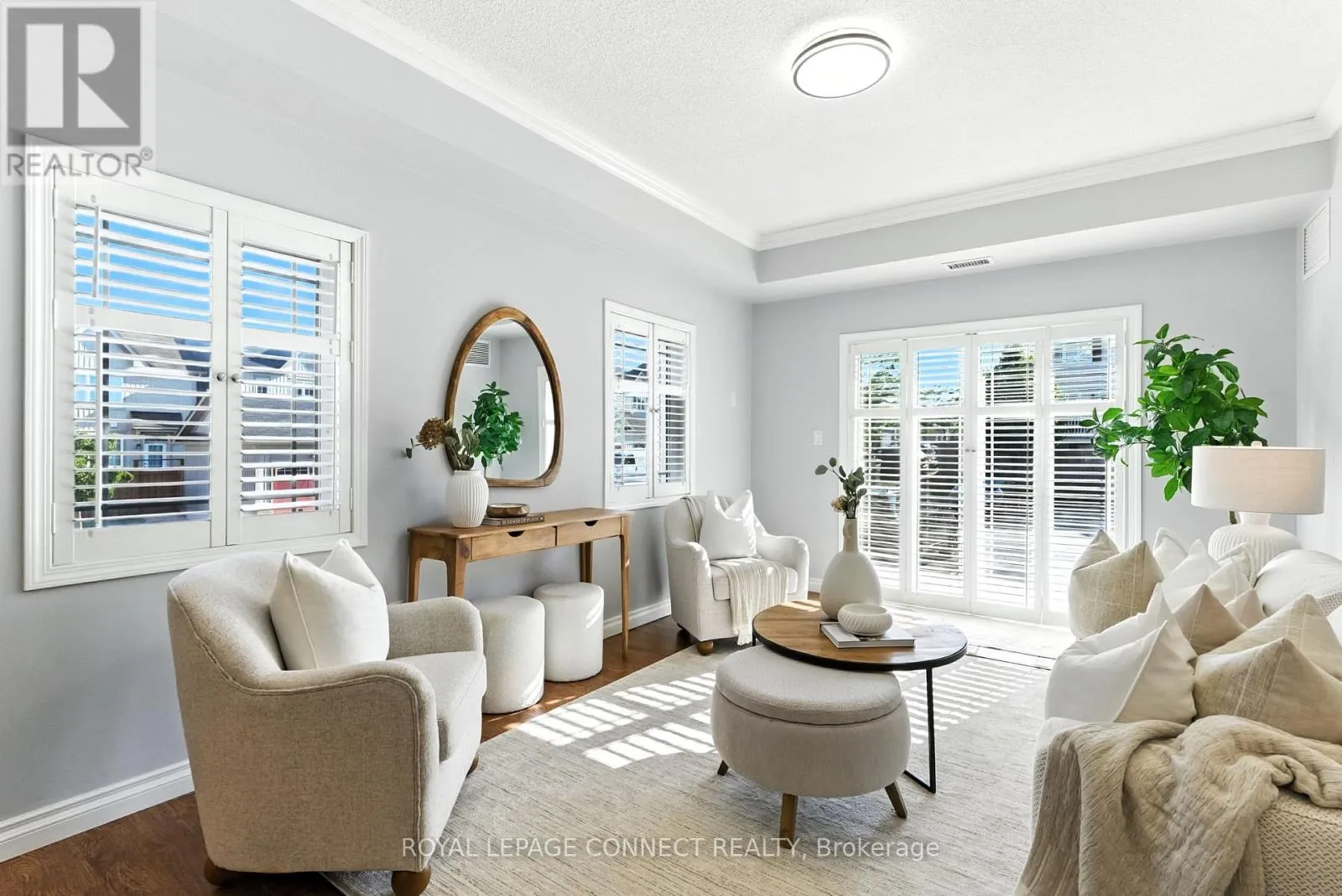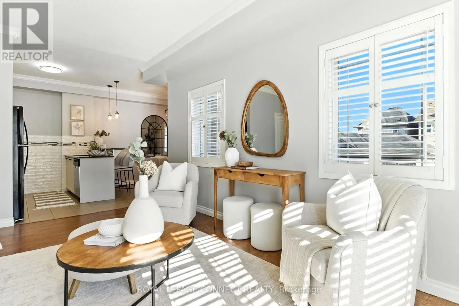 Cross Streets: Green Rd and Aspen Spring Drive. ** Directions: North on Green Rd from Baseline, west on McBride Ave, first right onto Farmstead, first right on Autumn Harvest, drive straight to 1 Sidney Lane. 2 Parking Spaces! Welcome to 107-1 Sidney Lane! This rarely offered main-floor corner unit features a highly sought-after layout with a dedicated dining area, 2 bedrooms and the added convenience of 2 owned parking spaces. Soaring 9-foot ceilings, crown moulding, and California Shutters throughout add charm and character to every room. Enjoy the abundance of natural light from the south and west-facing windows, creating a warm, inviting atmosphere all day long. The open layout features the kitchen complete with granite countertops, tile backsplash, and a convenient breakfast bar overlooking the dining area and a walk out from your living room to your open patio where you can relax and enjoy your morning tea. The primary bedroom and entryway both feature walk-in closets, offering exceptional storage. With in-suite laundry, ample storage throughout, a 3 piece bathroom with large glass shower, and the rare bonus of two parking spots, this home checks all the boxes. This unit is move-in ready and in a highly desirable location, walking distance to shopping, grocery stores, restaurants, public transit, schools and parks, and only minutes to Highway 401. (id:27476)
